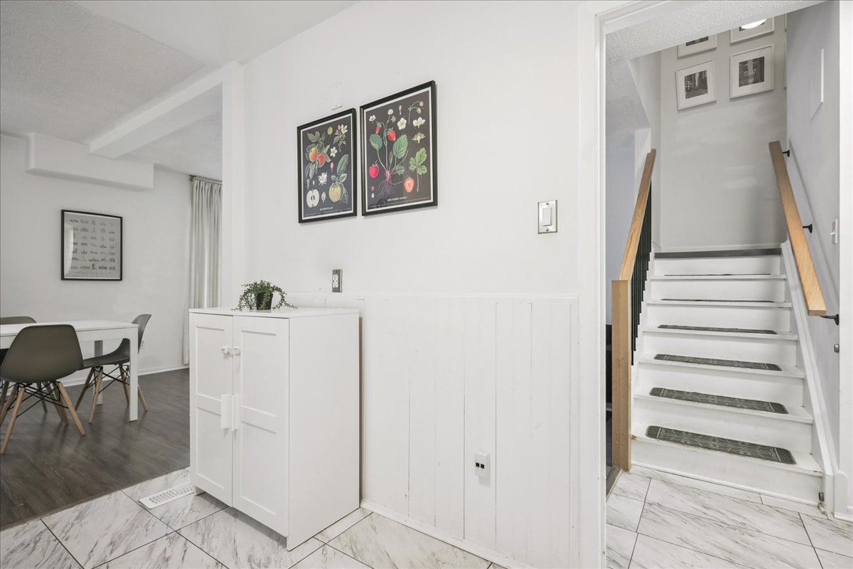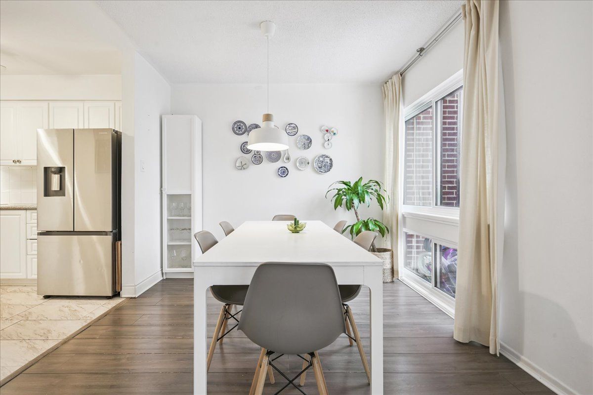 Start strong in applewood. This 2+1 bedroom condo townhouse offers practical living space and flexibility in a well-established community. The bright combined living and dining area has a large window, and a sliding door that fills the space with natural light, while the kitchen is equipped with white cabinetry and stainless steel appliances. The finished basement adds valuable living space with a recreation room, additional bedroom, 2-piece bathroom, and pot lights. Classic brick exterior, fenced outdoor area, and one dedicated parking spot included. Ideally located just steps to applewood trail and within walking distance to groceries and coffee, plus minutes to dixie go, qew, sherway gardens, costco, walmart, schools, and restaurants.