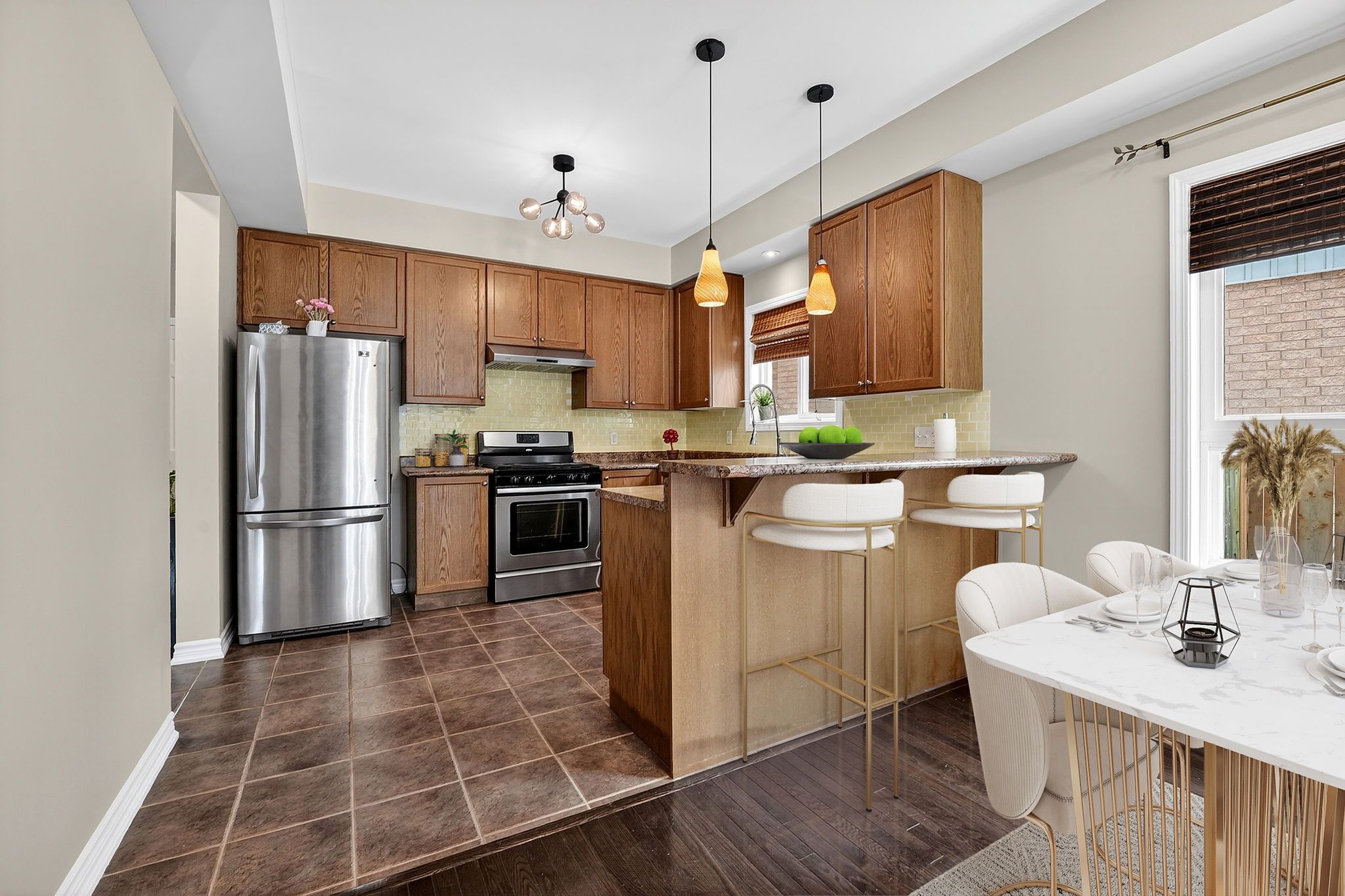 • Spacious kitchen with ample cabinetry and breakfast bar for easy meals.