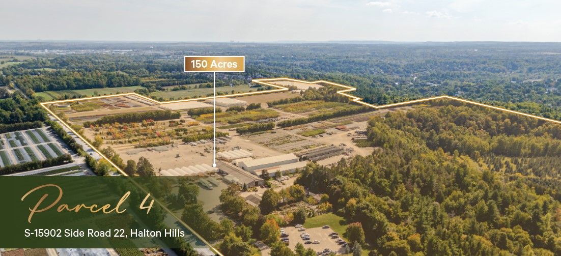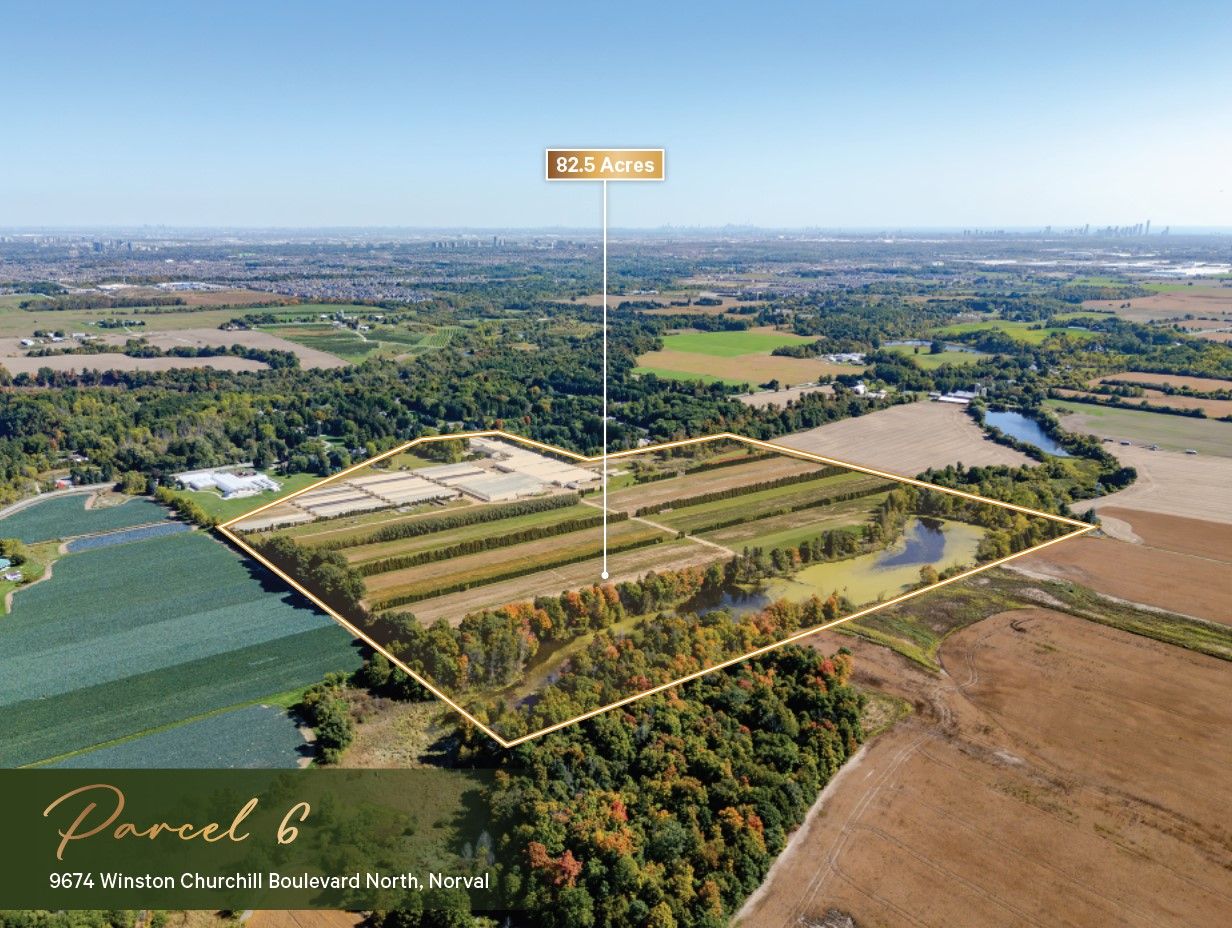 Generational land opportunity available for sale in halton hills. This offering represents a unique opportunity to acquire 931 acres of assembled land in halton hills on the peel/caledon/halton hills border. These lands represent one of the largest privately owned land holdings in the gta and provides a unique investment opportunity for those looking to acquire strategic land for investment or agricultural uses. Currently operating as canada's largest nursery operation, offering fertile soils, a well-organized irrigation system drawing direct from the credit river, and direct access to canada's largest population. Various buildings, greenhouses, shop space, main office, and homes exist across the properties. The georgetown farms consist of 6 parcels with fully operational farm systems in place. The norval piece is designated strategic employment and offers developers and investors a future industrial site located along winston churchill, with close proximity to a future 413 exit as well as 401 highway access. This offering represents an exciting opportunity for large scale farming operators, investors and strategic land buyers to acquire land holdings of scale, on the halton/peel border. Property includes an income producing cell tower.