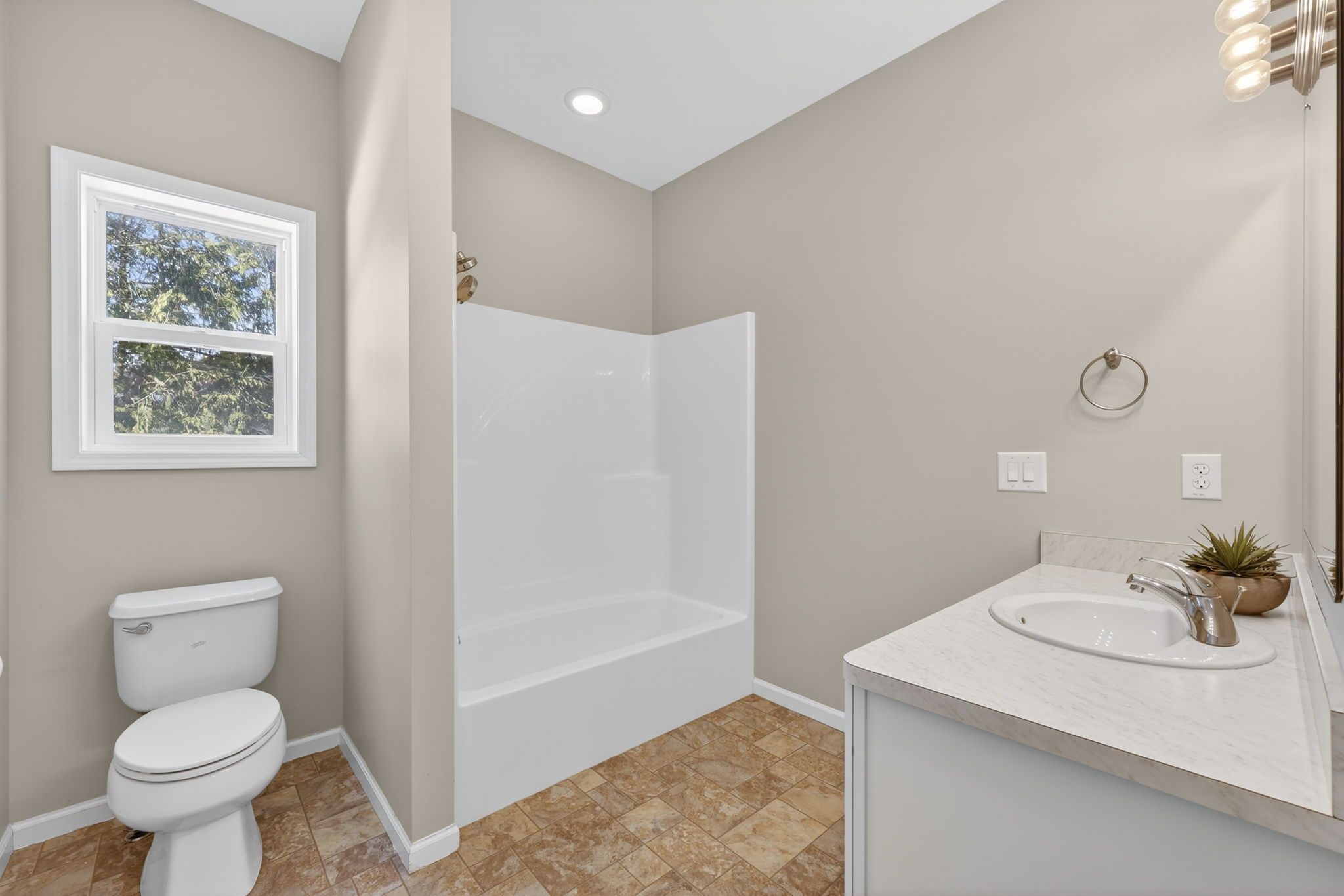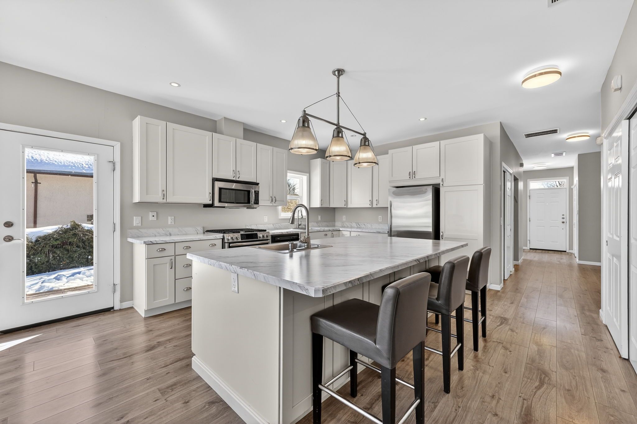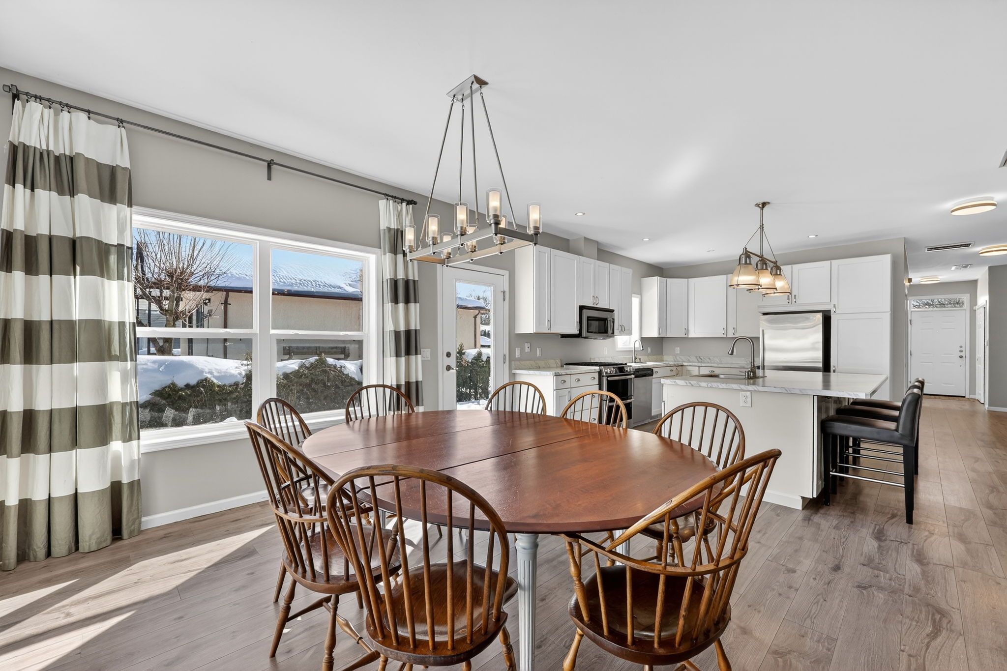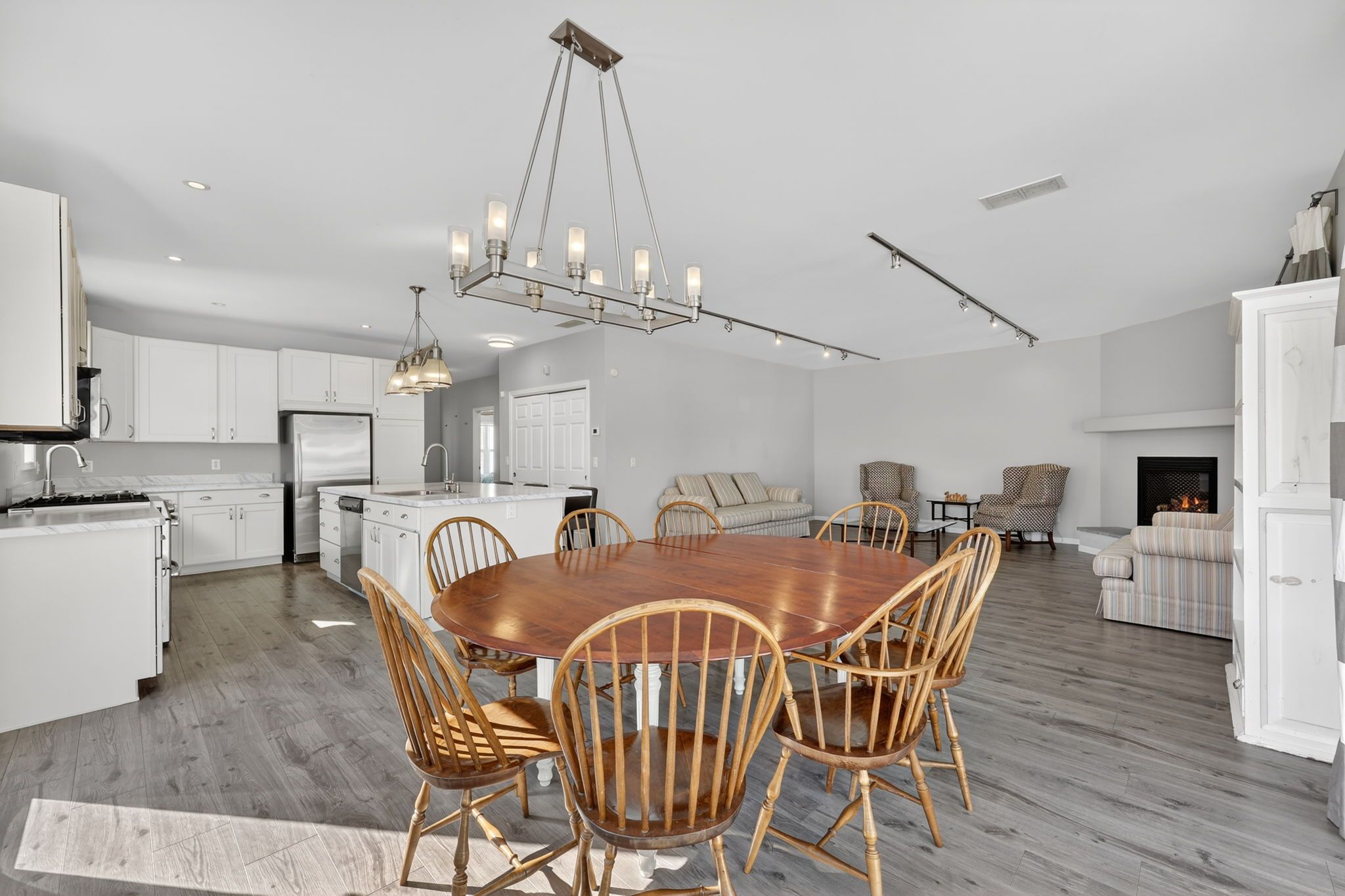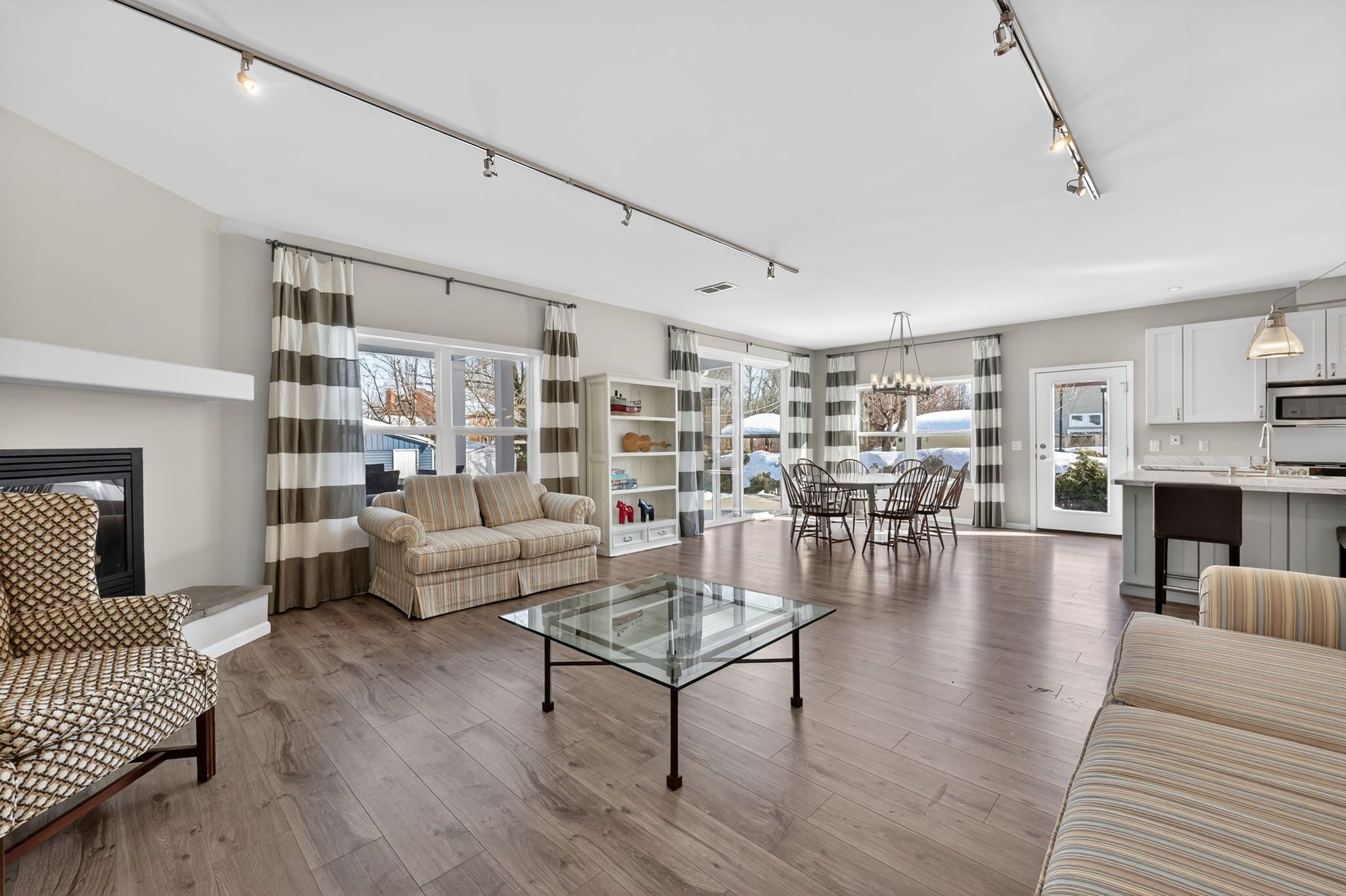 • Open concept layout with a kitchen, dining, and living area for easy flow.