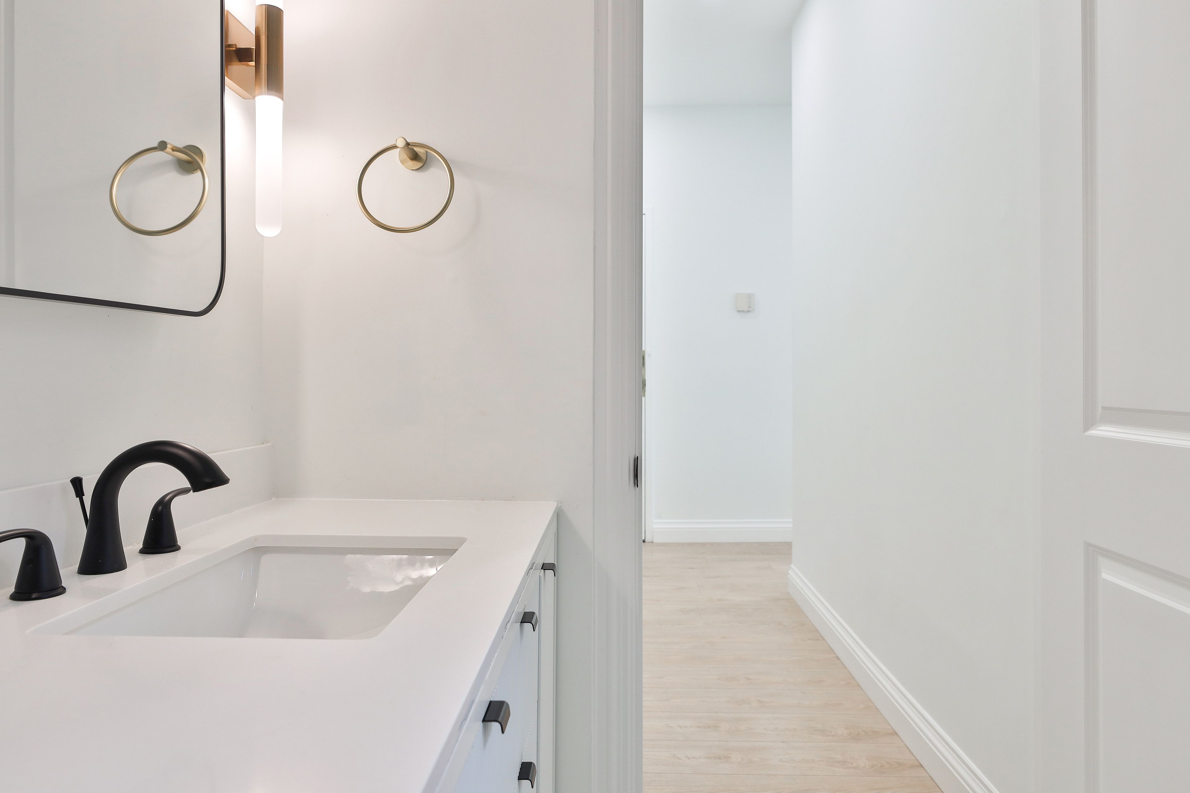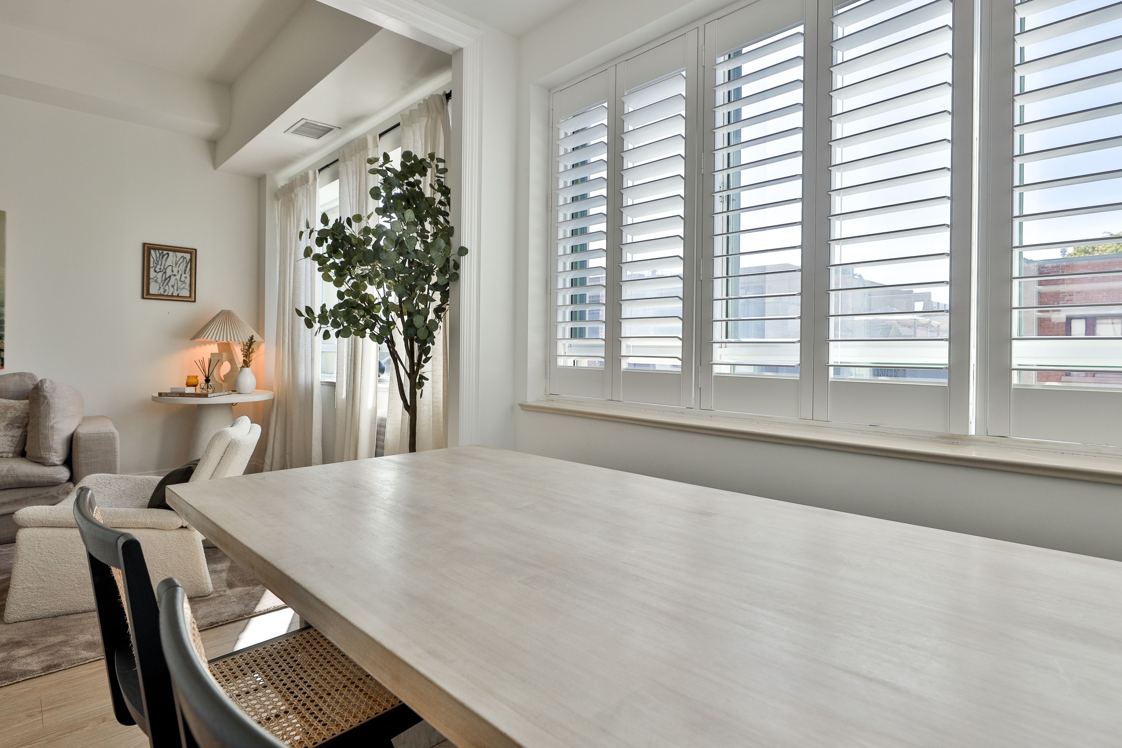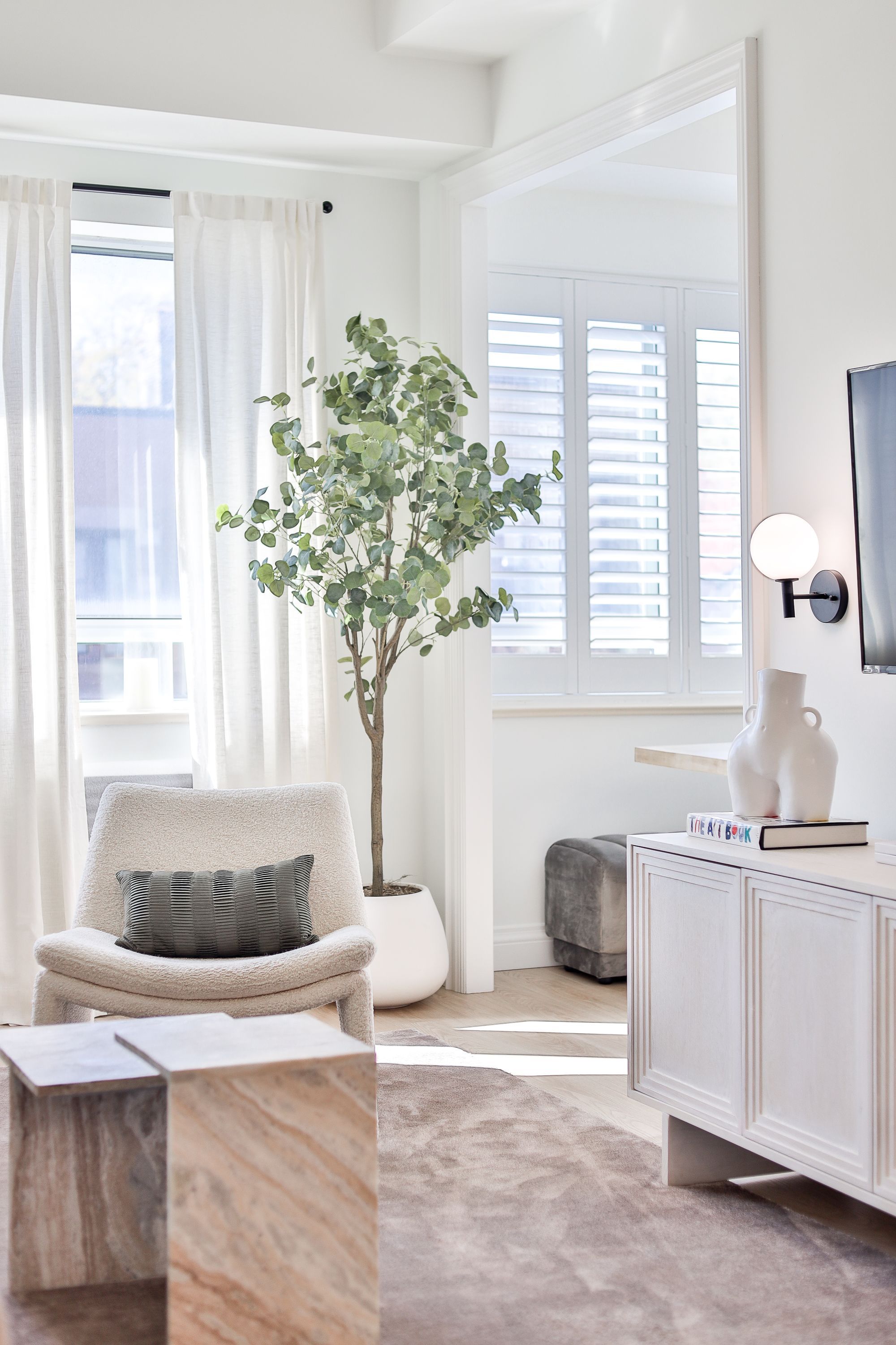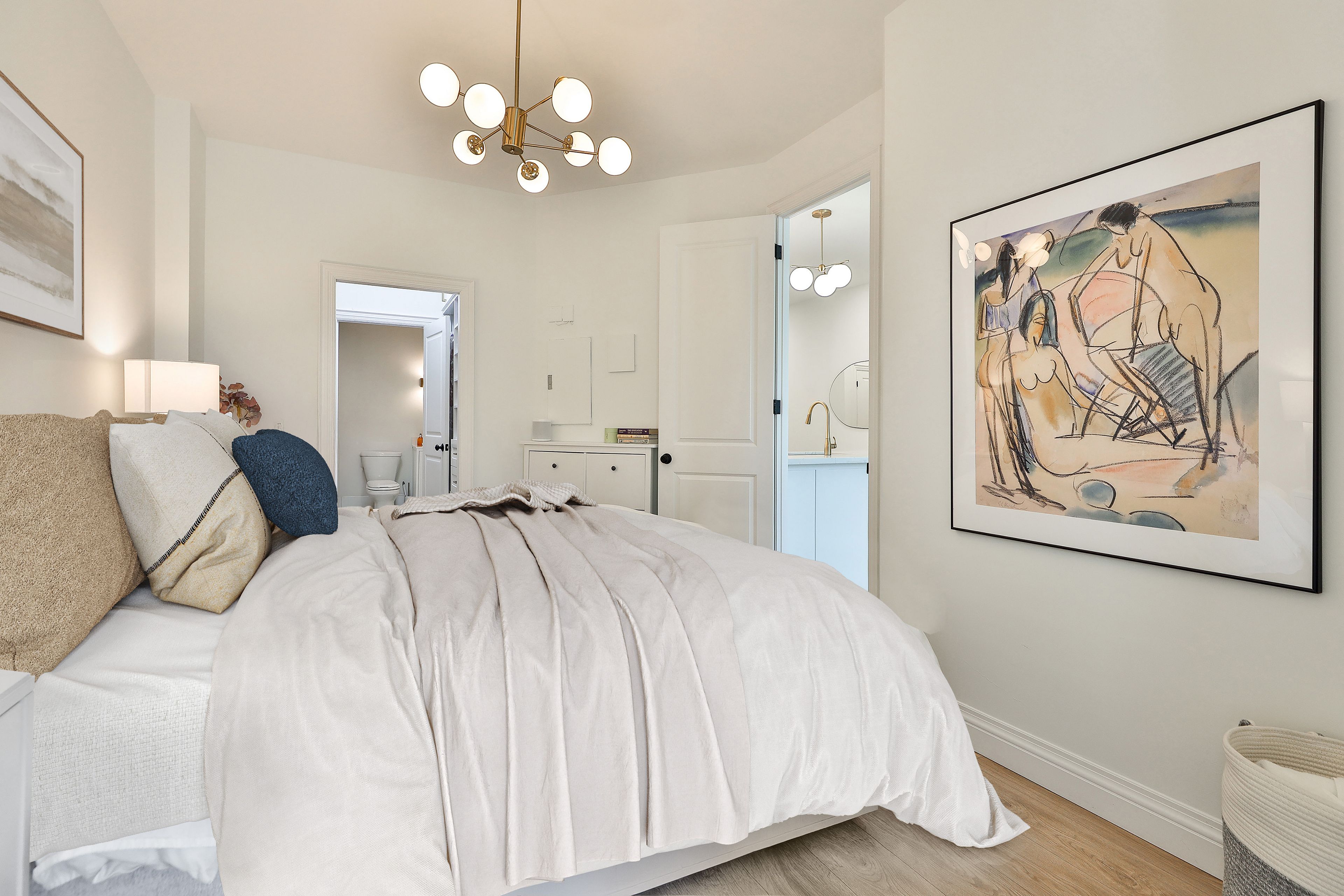 This is a one-plus den that knows exactly what it is. Fully renovated, meticulously maintained, and designed with restraint rather than excess. Every choice feels intentional. Not one moment out of place. At 840+ square feet, with expansive 10+ foot ceilings, the airy, open plan is immediately compelling & beautifully resolved. Sunlight moves freely throughout, amplifying proportions and giving this elegant residence a calm, architectural presence that feels larger than its footprint suggests. The palette is soft & disciplined. Wide plank engineered hardwood in a pale oak finish runs wall to wall, stretching sightlines and reinforcing a clean, gallery-like flow through the living and entertaining spaces. Custom details appear throughout, with flat-panel cabinetry, integrated storage, choice hardware, laundry, and tailored notes that read as elevated as the apartment itself. The kitchen strikes a confident balance between classic and contemporary. Shaker-inspired cabinetry is paired with warm brass hardware, a softly veined stone backsplash, and integrated, built-in appliances that keep everything neat and considered. The primary bedroom understands the assignment. A calm, light-toned envelope allows proportion to take the lead, with ceiling height adding quiet drama while sculptural lighting introduces warmth without visual clutter. Then there is the expansive walk-through closet. Not tucked away. Not an afterthought. Enviable, fully built-in with shelving, drawers, and hanging areas for those who love to spend. And finally, the den adapts without compromise. Dining. Office. Creative studio. It doesn't ask you to choose. It simply works. A summerhill suite with an all-star lineup: a proper entry, a true front hall closet, a well-appointed four-piece bath, all within a building that's safe, secure, and well managed...[cont'd]