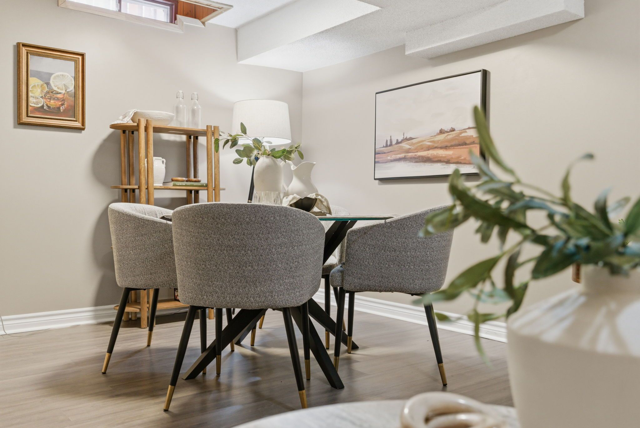 • Finished basement with a wet bar for entertaining and extra storage.