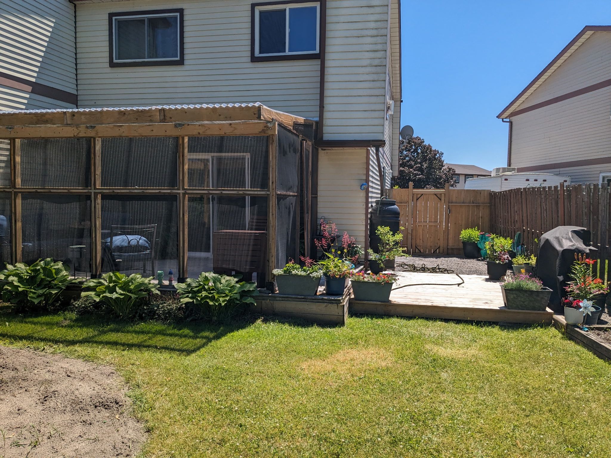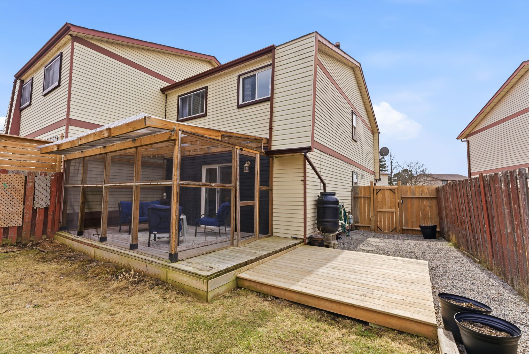 • Screened-in porch for coffee and relaxation overlooking the backyard.