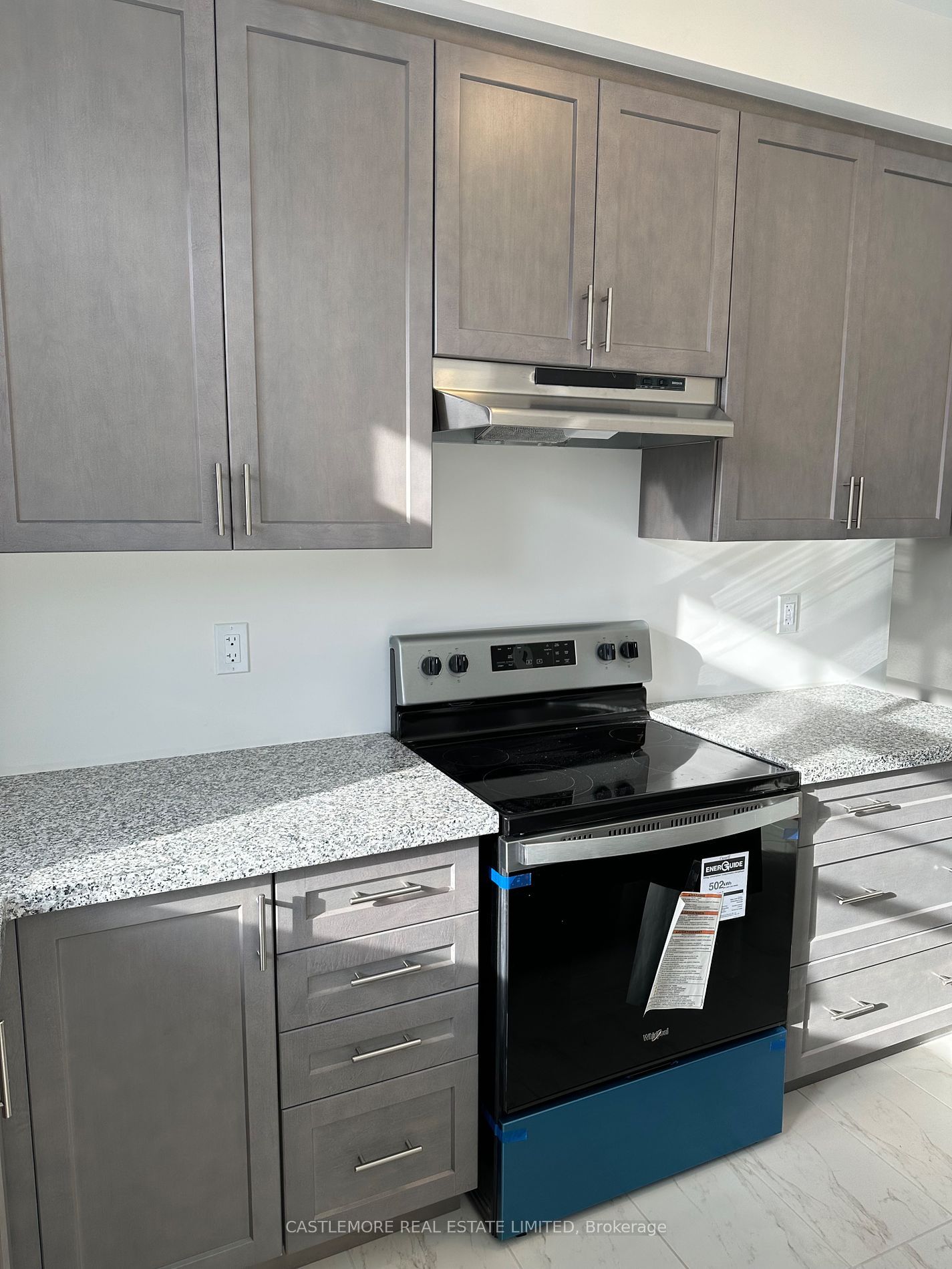 • Modern kitchen featuring granite countertops and stainless steel appliances.