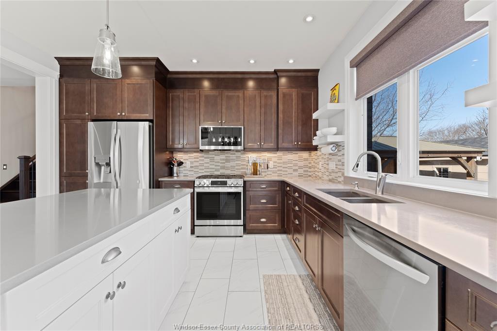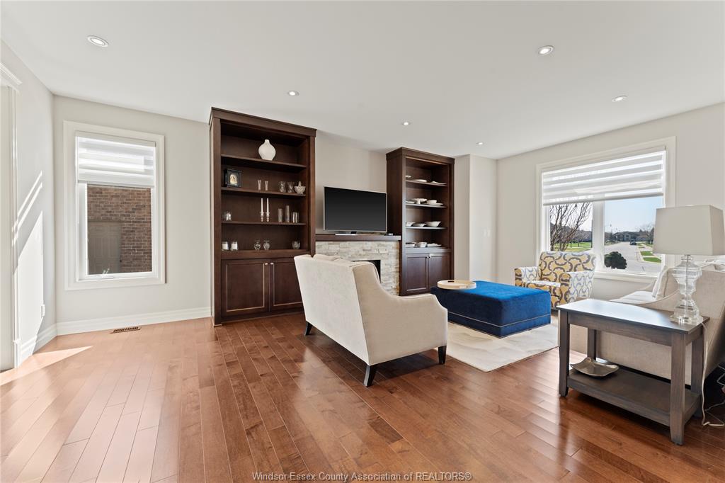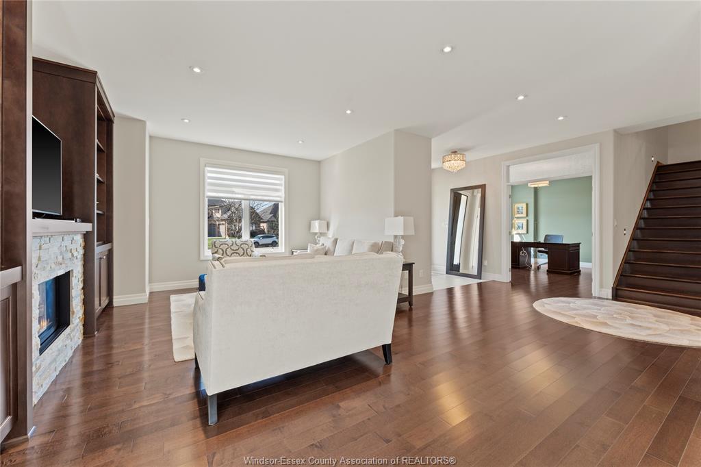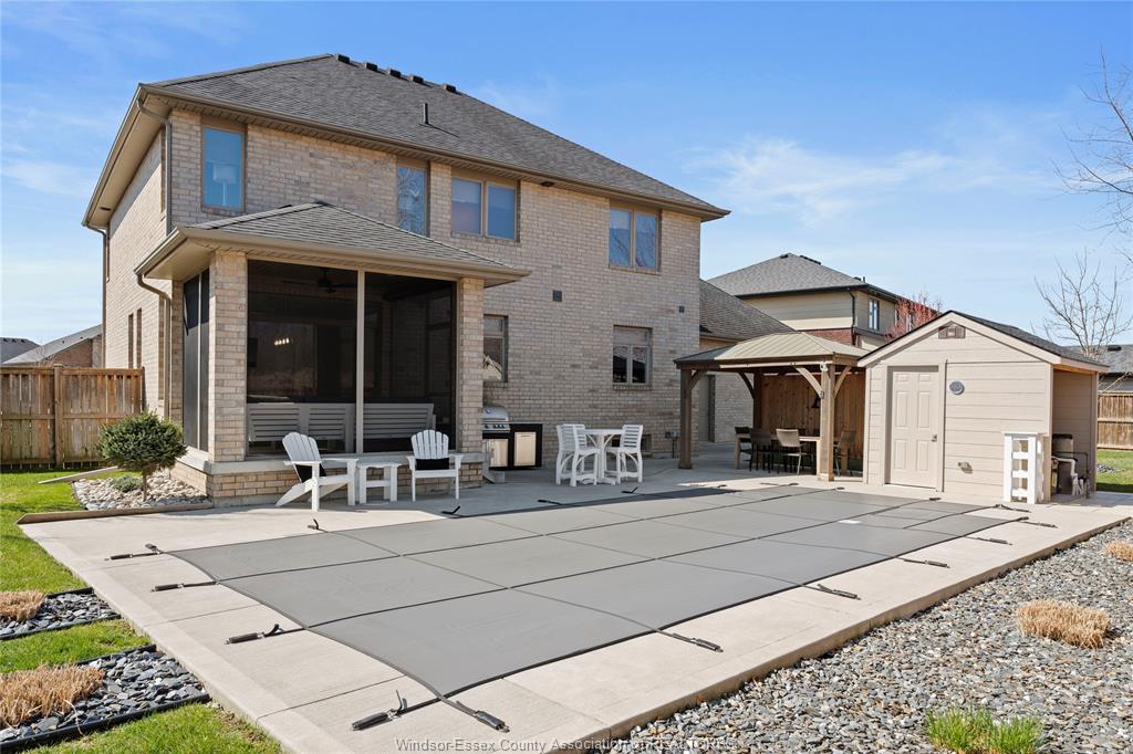 Located in one of tecumseh's most sought after neighbourhoods! This immaculate 2 story is situated on a large & private pie-shaped lot with no rear neighbours. This spacious family home has been meticulously maintained and features a functional floor plan. Offering a large kitchen and dining room combo, a spacious living room with built in cabinetry + a gas fireplace, an office, 2pc bath and laundry. On the 2nd level, there are 4 spacious bedrooms and 2 full baths (1 of which is a large ensuite bath). In the basement you will find additional living space, a large family room with a gas fireplace, a wet bar, full bath, a bedroom/rec room, plus a storage area. The backyard and property itself offer plenty of privacy, a beautiful 12x24 salt water sports pool (2021) + heater (2025), a gazebo and a screened rear covered porch perfect to enjoy in the summer months. The 2. 5 car garage offers ample room for vehicles + storage. This home is situated on a quiet street in the heart of tecumseh near all amenities - including great schools, parks, shopping, medical facilities and so on. This home is absolutely turn key and move in ready!