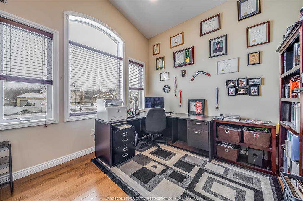 Team goran is bringing the fire to candlewood! We are thrilled to present this incredible 2 storey gem sitting on a corner lot in a quiet cul de sac in the town of tecumseh. Featuring approx. 3000 sq. Feet of finished living space and offering 4 bedrooms and 3 full baths, including a main floor bedroom with access to a 4 pc main floor bath. Step in and explore this 2012 built family home; main floor welcomes you with an open concept living room design with stunning hardwood floors, large bay windows, built in shelving and surround sound hardwired speakers. The heart of the home impresses with a custom built full oak chef's kitchen with a large eating island, a walk in pantry and a corner eating nook. A timeless polished oak staircase will lead you to the second floor where you will find a spacious primary suite, equipped with 2 walk in closets and a cozy gas fireplace. Additional 2 bedrooms w/ walk in closets and a convenient double sink, jack & jill bathroom. Wait theres more! The lower level of this home offers a world of opportunities with an unfinished canvas ready for you to make your own. Tons of light offers for suitable living, working or play. Grade entrance for easy access. Tons of curb appeal, landscaping and outside work makes outdoor living enjoyable. Bonus- a covered back porch on a large cement slab. Amazing location, close to schools, amenities and just a couple of minutes away from the new battery plant. Call listing agent today to make this place yours!