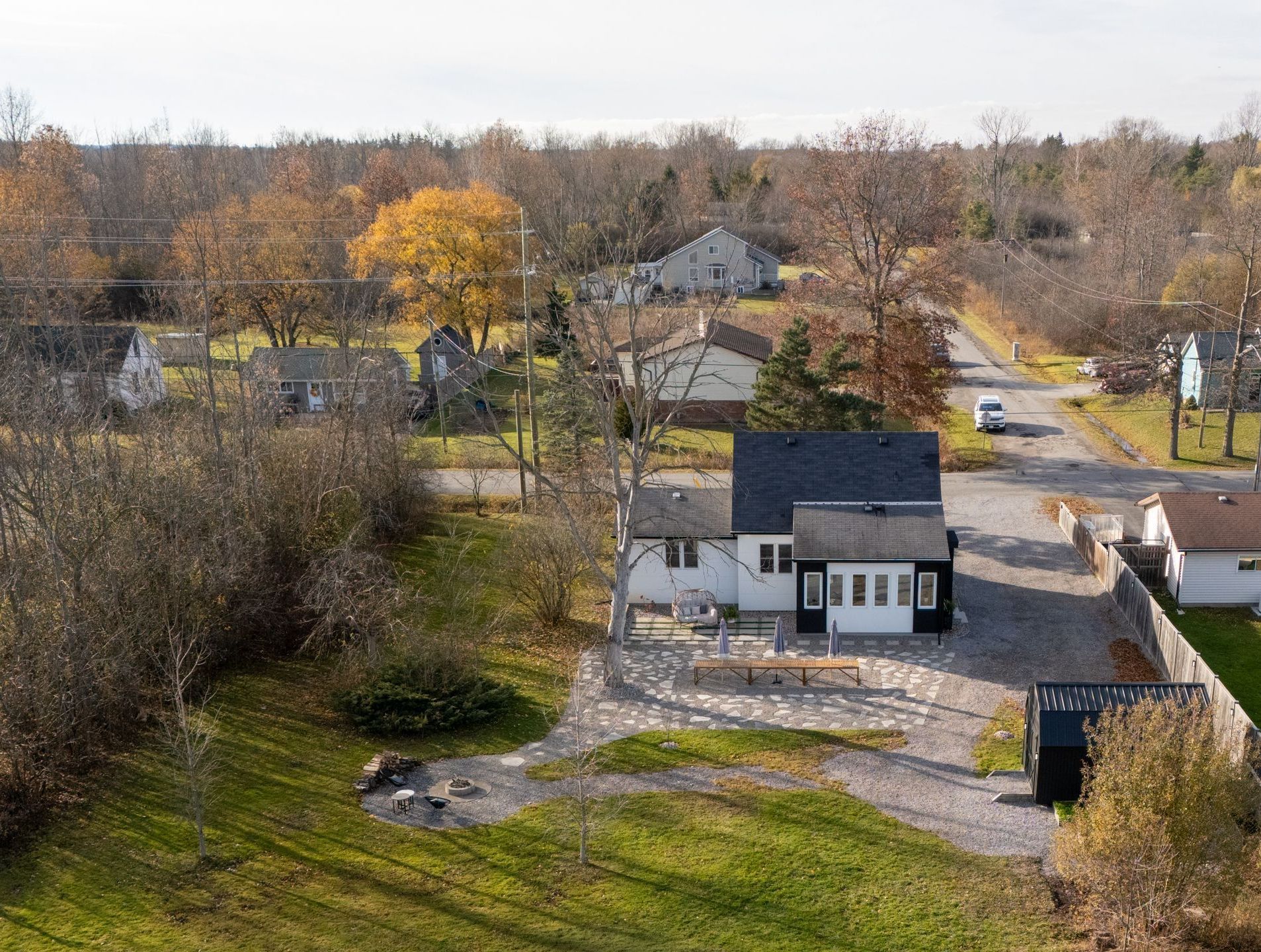 • Private backyard with a flagstone patio and fire pit for gatherings.