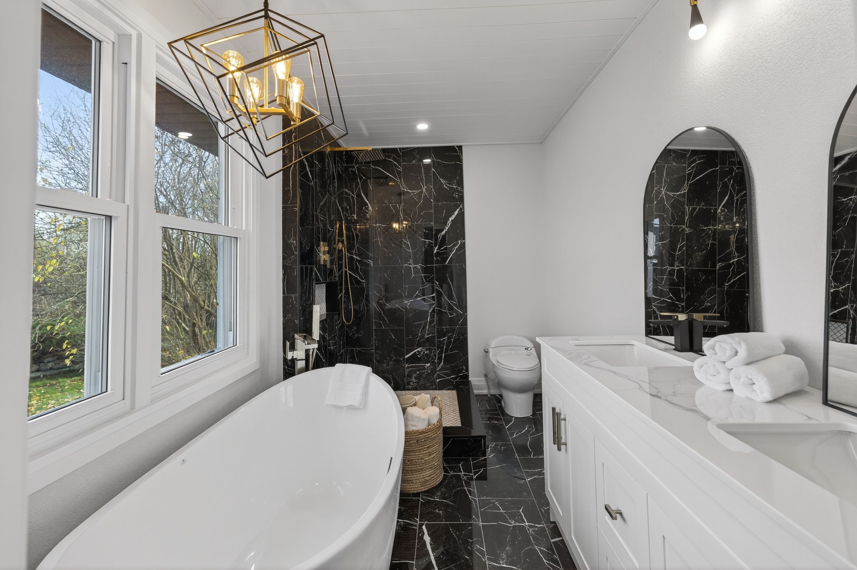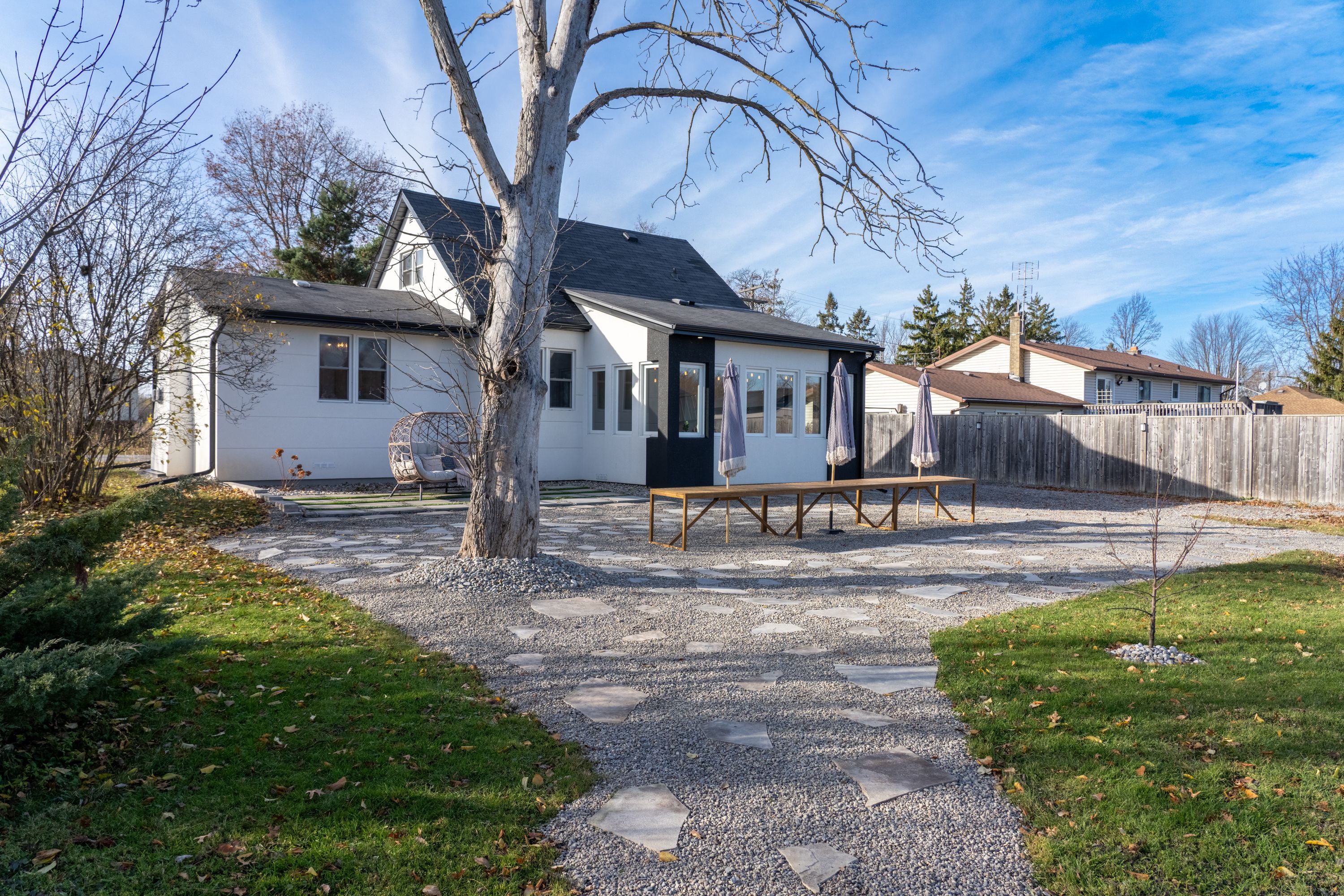 Enjoy the serenity of country living in the heart of the city. This fully renovated, move-in ready home sits on a rare 90x120 ft lot with a flagstone patio, fire pit, and a private backyard perfect for entertaining or relaxing. The main floor boasts a modern kitchen with quartz countertops and black stainless steel appliances, a bright dining area with a custom coffee bar, and a stylish living room with a granite stucco gas fireplace. A sun-filled sunroom offers peaceful views of the backyard. The primary suite features a walk-through closet and luxurious 5-piece ensuite, while two additional bedrooms and bathrooms provide space for family and guests. The substantially finished lower level includes a recreational room, spacious bedroom, and a laundry with a 2-piece bath. Chic, turnkey, and priced to sell.