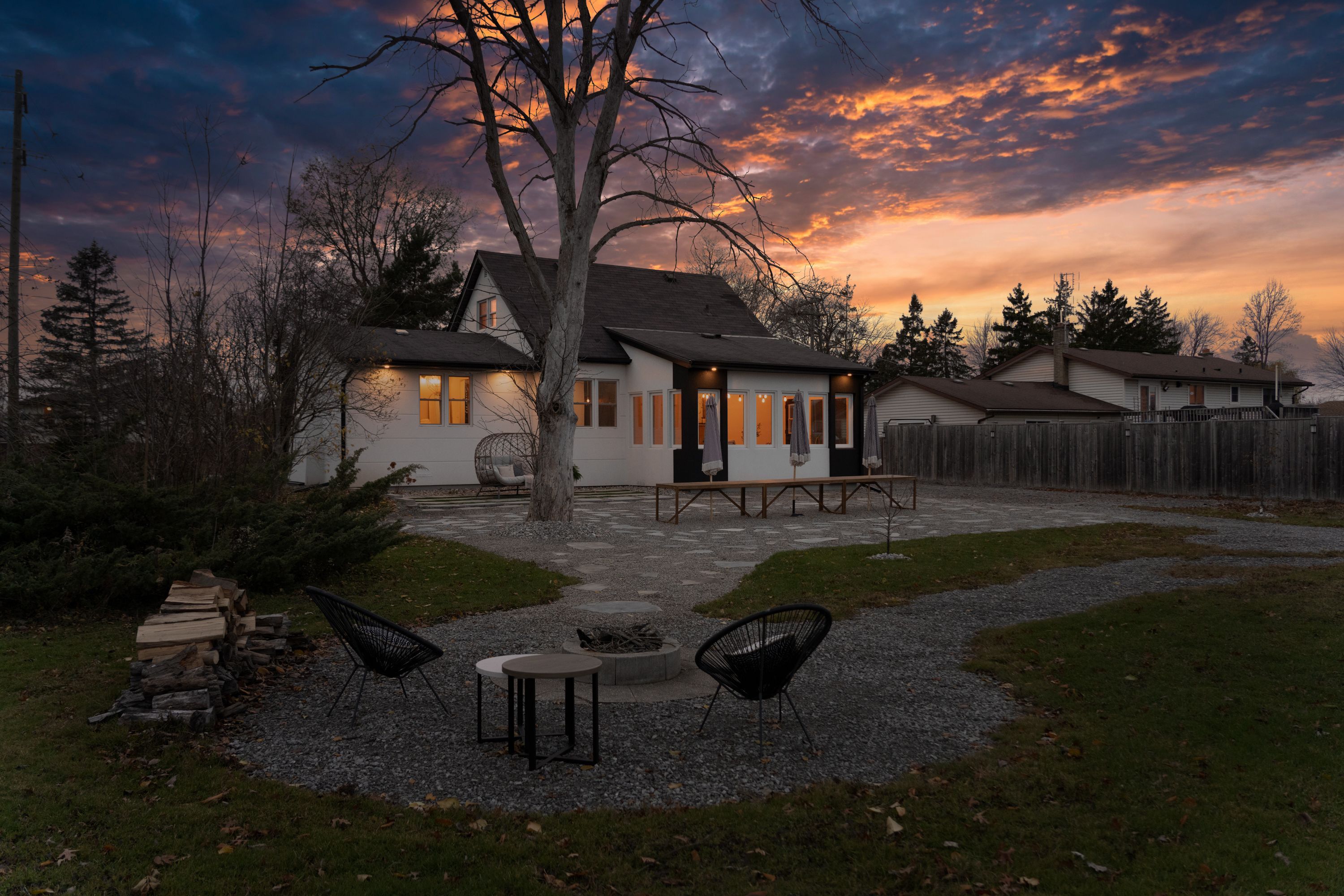 Enjoy the serenity of country living in the heart of the city. This fully renovated, move-in ready home sits on a rare 90x120 ft lot with a flagstone patio, fire pit, and a private backyard perfect for entertaining or relaxing. The main floor boasts a modern kitchen with quartz countertops and black stainless steel appliances, a bright dining area with a custom coffee bar, and a stylish living room with a granite stucco gas fireplace. A sun-filled sunroom offers peaceful views of the backyard. The primary suite features a walk-through closet and luxurious 5-piece ensuite, while two additional bedrooms and bathrooms provide space for family and guests. The substantially finished lower level includes a recreational room, spacious bedroom, and a laundry room with a 2-piece bath. Chic, turnkey, and priced to sell.