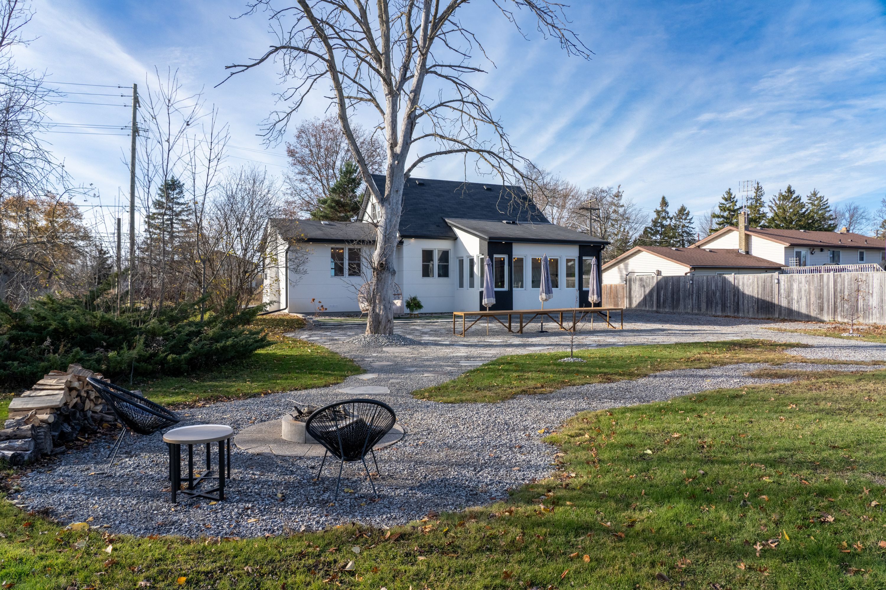 • Large 90x120 ft lot with private backyard, fire pit, and patio.
