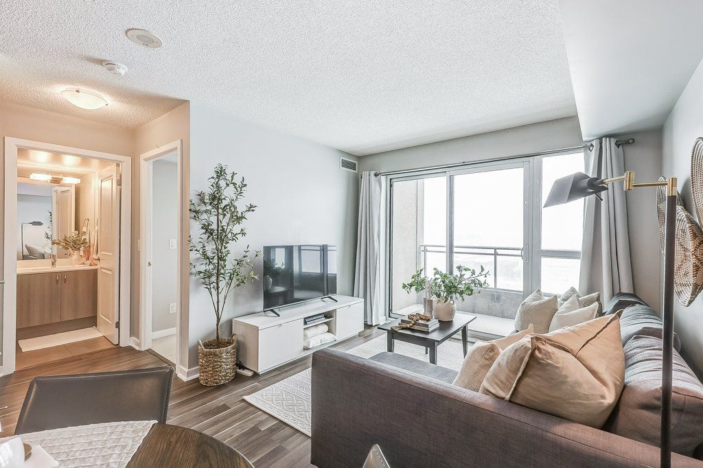 Welcome to your beautifully designed one bedroom plus den condo, featuring an owned parking space and storage locker, perfectly situated in one of pickering's most desirable communities. With quick access to go transit and hwy 401, your seamless commute to downtown toronto and around the gta couldn't be easier. Step inside to discover bright, airy living infused with modern elegance and excellent use of space. This open-concept layout features a gourmet kitchen with quartz countertops, stainless steel appliances, an over-the-range microwave, and a chic glass tile backsplash. Enjoy leisurely breakfasts or coffee at the inviting peninsula, ideal for casual dining. This condo offers more than just a home, it's a strategic investment in urban living. Experience resort-style amenities, including 24-hour security, gym, yoga studio, indoor pool, steam room, hot tub, sun deck with bbqs, guest suites, bike storage, visitor parking, and a stylish party room. Convenience is at your doorstep with retail shops within the complex, including a pharmacy, dental clinic, and diverse dining options. A short stroll leads you to pickering go station, the city centre, library, chestnut park recreation centre, grocery stores, and a vibrant selection of local shops and restaurants. For those who embrace an active lifestyle, this condo is ideally situated within walking distance to scenic parks, waterfront beach, pickering marina as well as kilometers of walking and biking trails. Your dream urban living experience awaits!