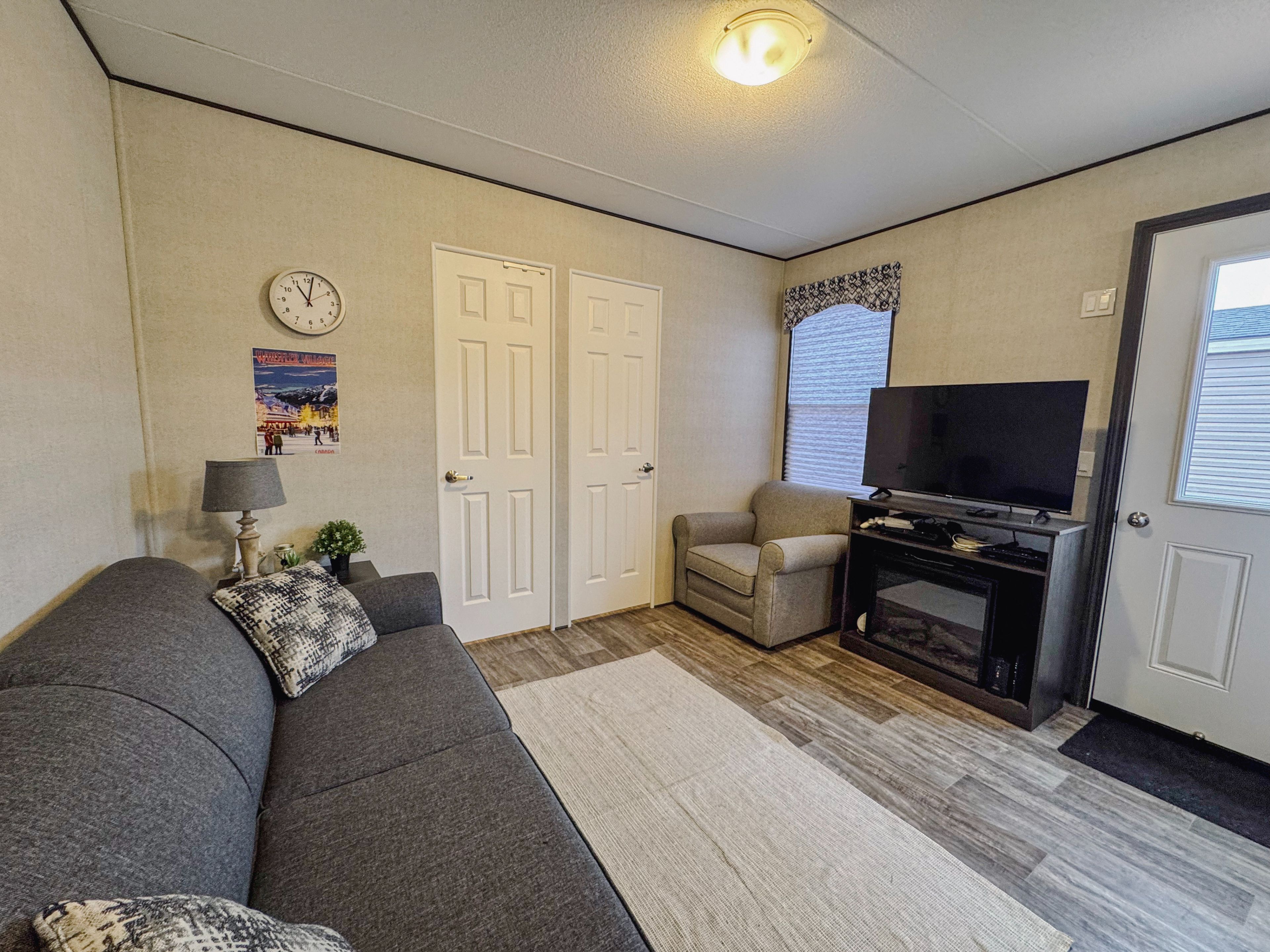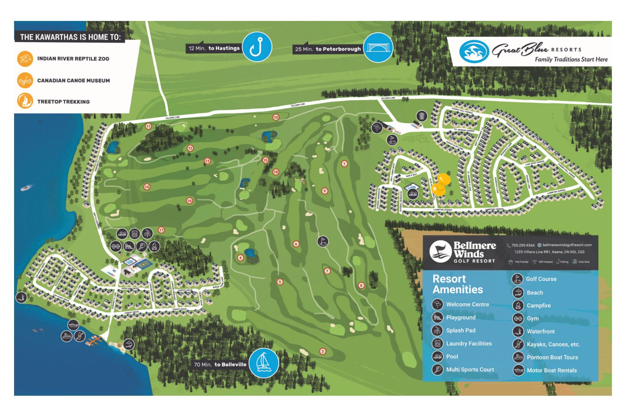 Welcome to 10 lambton at bellmere winds golf resort, part of the highly sought-after great blue resorts community! This charming 3-bedroom trailer offers the perfect blend of comfort, convenience, and resort-style living. Whether you're looking for a seasonal retreat, a family getaway, or a place to relax and play, this property checks all the boxes. This ideal lot is located just steps from a pool and has incredible views of the golf course and rice lake. Inside you'll find a bright and welcoming living space complete with a propane stove, full kitchen, and plenty of cabinetry for storage. The open-concept layout makes it easy to cook, dine, and entertain, while the 4-piece bathroom provides all the comforts of home. With two bunked rooms, and a private primary bedroom, there's room for family and friends to enjoy peaceful stays together. Step outside your door and enjoy the new oversized deck with plenty of room for relaxing or entertaining. Yearly resort fees includes six golf memberships, giving you and your family unlimited access to the beautiful 18-hole course overlooking rice lake. Spend your days swimming in one of the two outdoor pools, challenging friends on the tennis courts, or keeping active at the resort gym. A convenient laundry facility is also available on site. For those who love the water, rice lake access is just moments away-perfect for boating, fishing, or simply enjoying a quiet sunset on the shoreline. This community truly embraces outdoor living with everything you need right at your fingertips. Bellmere winds offers a unique blend of relaxation and recreation in a well-maintained, family-friendly setting. Located just over an hour from the gta, it's the ideal escape from city life without the long drive. Weather you're a golfer, a lake lover, or someone seeking a vibrant seasonal community, this 3-bedroom trailer provides an affordable opportunity to own in one of ontario's premier resort destinations.