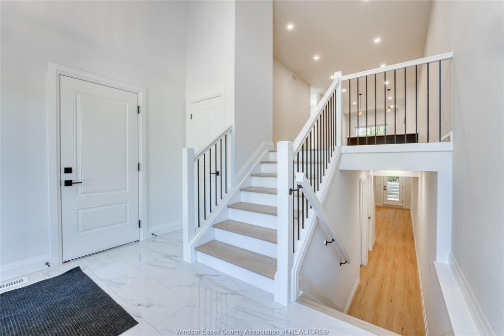 Under construction ready soon: royal oak luxury builders. 4 brs, 3 baths 2 laundry. Attention first time buyers, or need a mother in-law suite or/and investors - located near windsor crossings and 401 bridge access. Great for u. S commuters. Deep 180 ft lot w/ no rear neighbours. Great curb appeal and high-end finishes. 9 foot ceilings, hardwood throughout main floor, a primary bedroom suite w/a 3 piece ensuite bath & walk in closet, main floor laundry, 2nd bedroom, kitchen finished with quartz tops, large patio door, covered deck- deck included, loads of pot lights. Walkout grade entrance. Finished basement with 2nd kitchen w/quartz, 2 brs, bath, laundry and utility room. 7 year tarion warranty. Please call the listing agent to book a private showing.