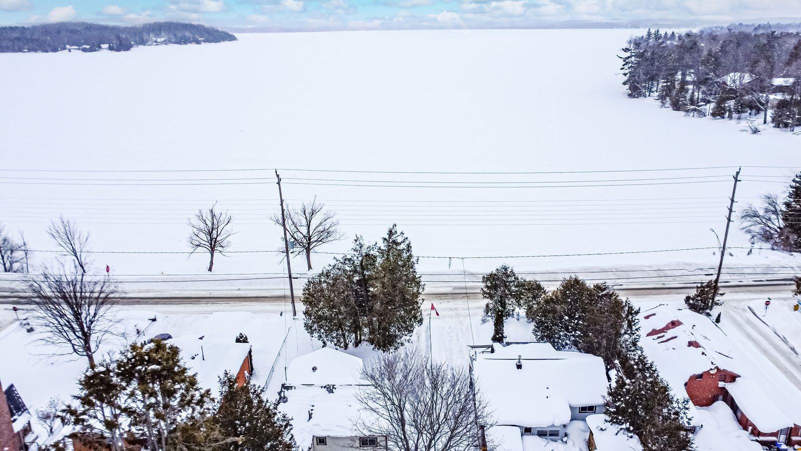 Cozy bungalow on a 50 x 150 ft lot across from bass lake with picturesque lake views! Wake up on a saturday morning, coffee in hand, with the gas fireplace softly flickering as natural light pours through the large front windows and bass lake stretches out just across the road. Days here move at an easy pace, with refreshing dips and sunset walks thanks to lake access directly across the street, all while being minutes from town when you need it. Perfectly placed on a generous 50 x 150 ft lot framed by mature trees, privacy and space to unwind come naturally, along with a welcoming front porch, parking for three vehicles, and a low-maintenance metal roof, plus an owned hot water heater already in place. The interior offers a well-laid-out, functional flow with clear sightlines from the galley-style kitchen through the dining and living areas, making everyday living and casual hosting feel easy, while two comfortable bedrooms each offer double closets and a main 4-piece bathroom keeps things practical. A 5-minute drive brings you to the local public school and into orillia for groceries, shopping, dining, parks, and everyday essentials, with recreation centres, downtown orillia, couchiching beach park, and orillia soldiers' memorial hospital approximately 10 minutes away. Perfect for first-time buyers, downsizers, or investors, this is a smart entry point where the lake views set the mood and your pinterest boards finally get their moment.