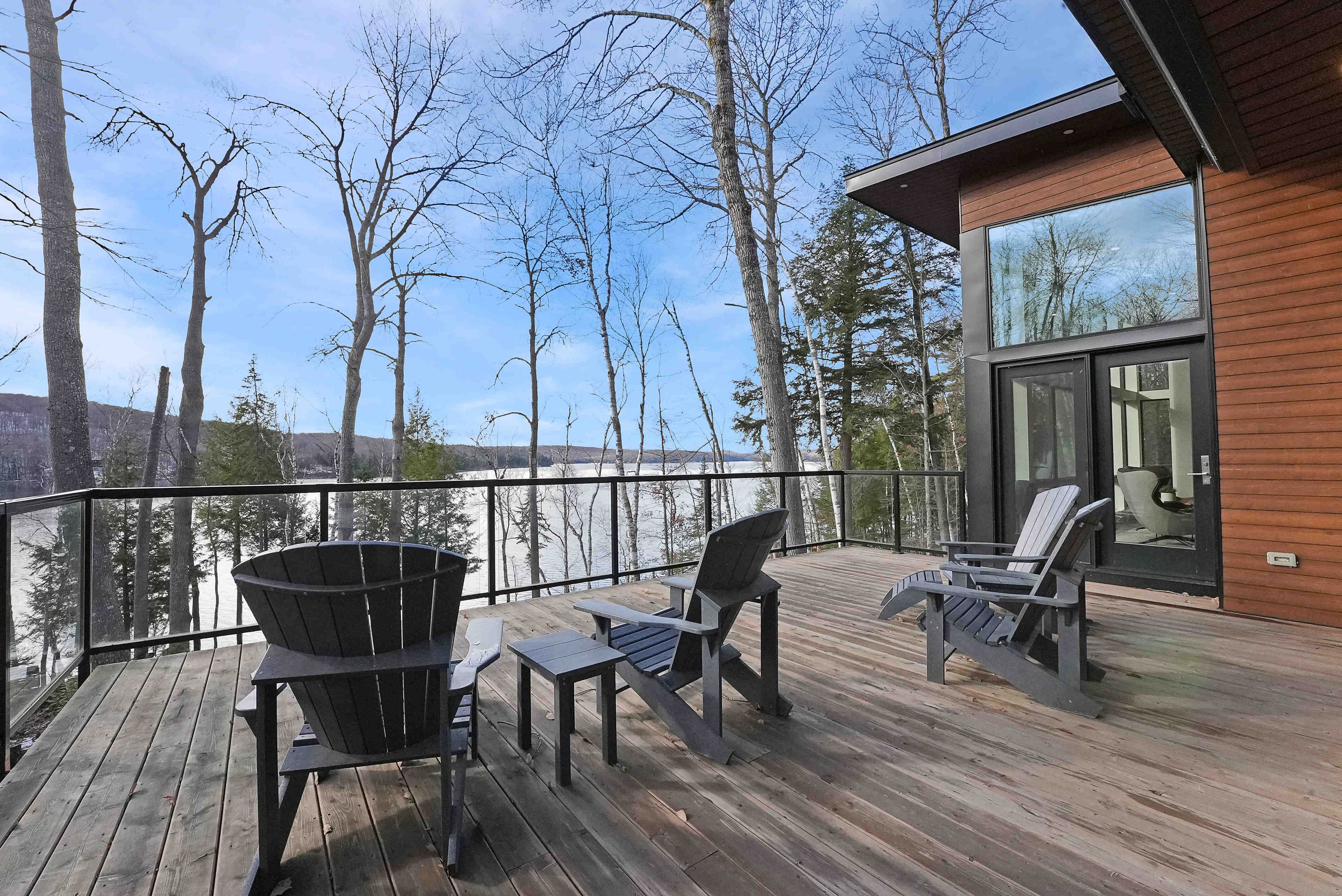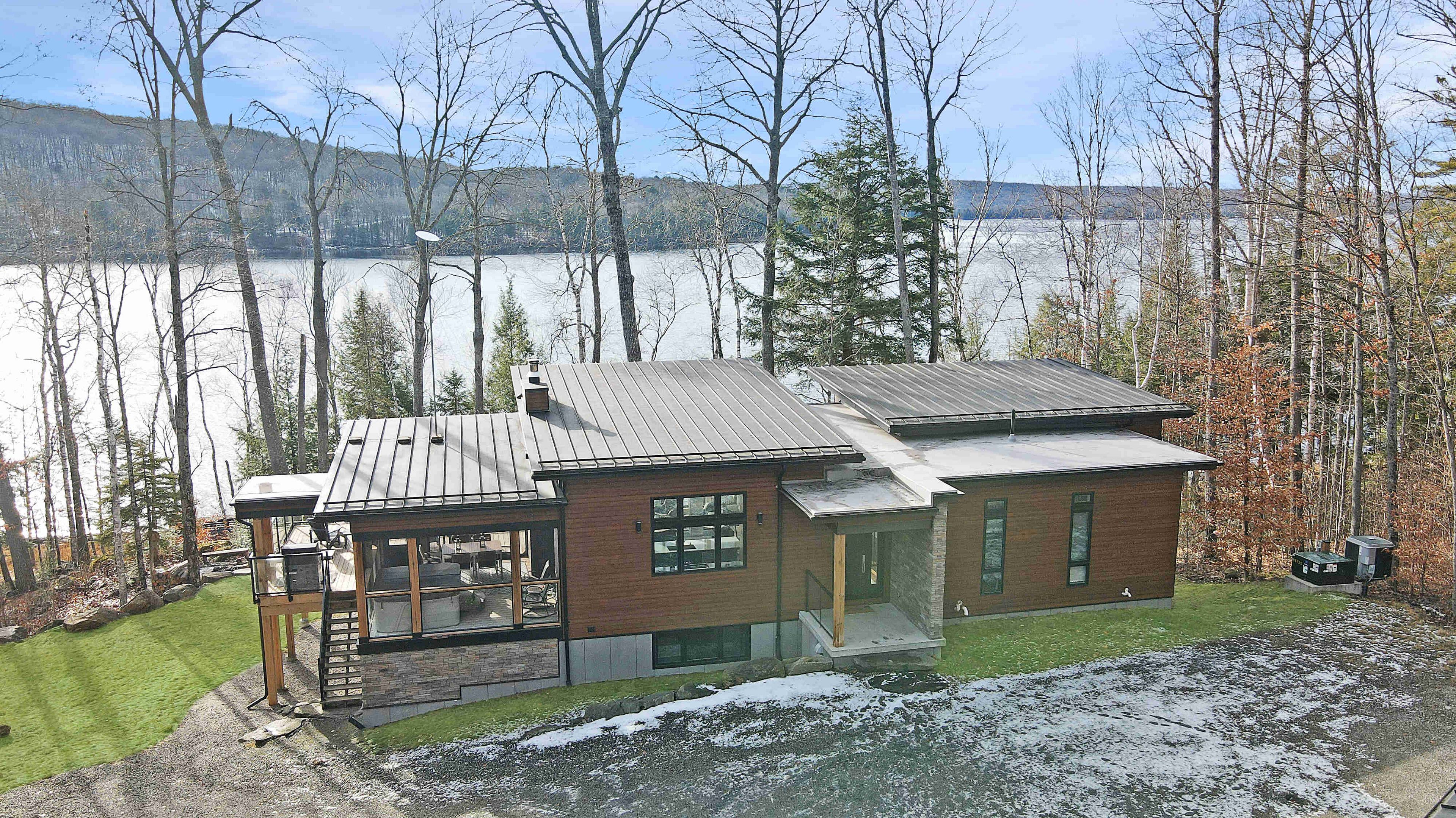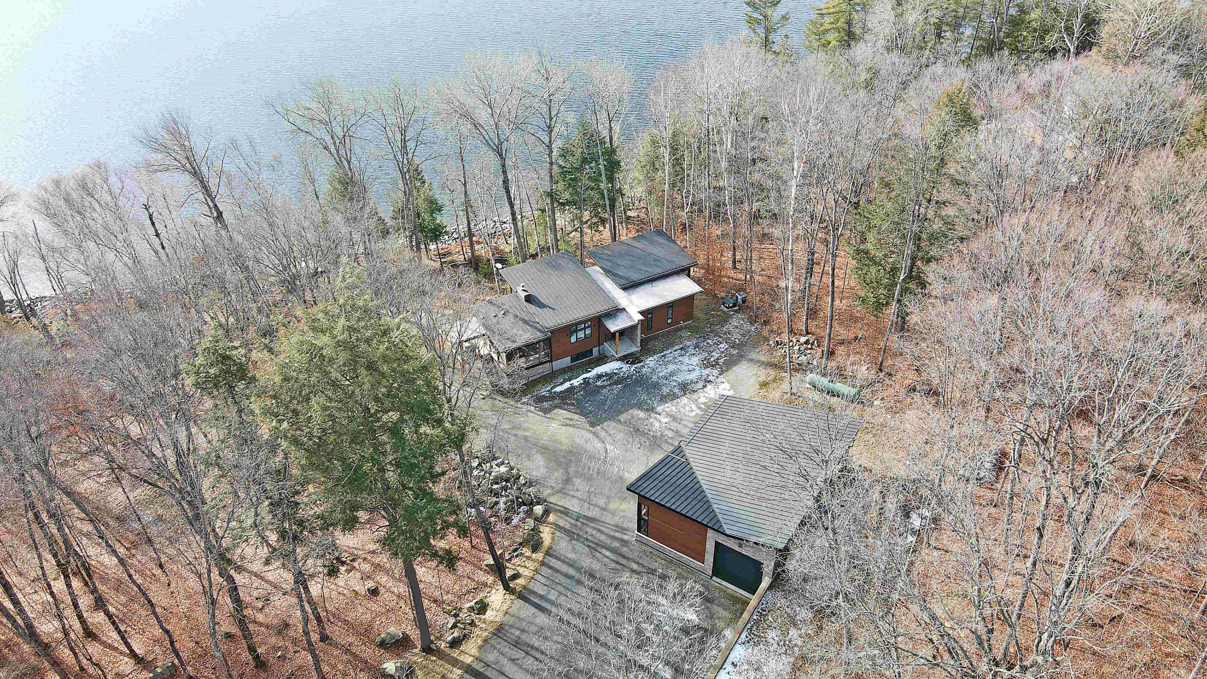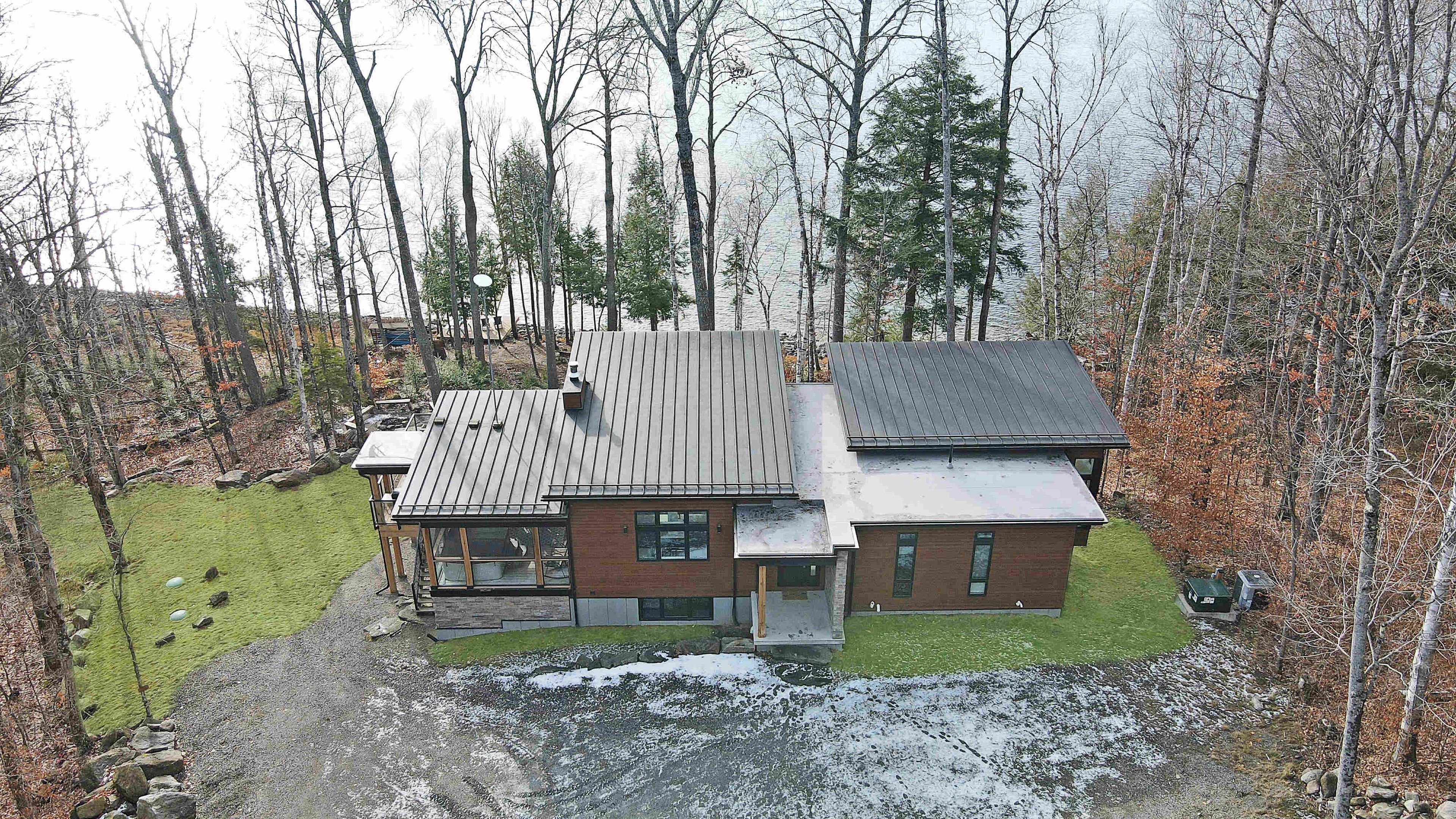 Discover luxury and meticulous craftsmanship in this spacious turn-key 5 bedroom, 3 bathroom home located on nearly 10 acres of haliburton lake waterfront. The heart of the main living area features a stunning wood-burning fireplace that creates an inviting focal point, perfect for cozy evenings after a day on the lake. The expansive windows flood the space with natural light and frames those spectacular western sunset views, while the open concept layout flows seamlessly for both intimate family gatherings and larger entertaining. A generous screened-in room extends your living space outdoors, offering a bug-free retreat where you can enjoy morning coffee, al fresco dining, or simply relax with a book while listening to the gentle sounds of the lake. Premium vinyl plank flooring flows throughout the bedrooms and main living areas, while all 3 bathrooms feature heated floors that add a touch of everyday luxury. The exterior of this property is equally as impressive, featuring landscaped steps that gently guide you to the waterfront where an oversized dock sits on a pristine rocky shoreline. The clear, weed-free water provides ideals swimming with big lake views. A fire pit creates the perfect gathering spot for family evenings. Engineered for superior comfort and year-round efficiency, this residence showcases comprehensive spray foam insulation, an advanced membrane wrap system around the foundation for absolute waterproofing, and thoughtfully designed roof overhangs that maximize passive solar gains-welcoming winter warmth while providing summer shade. The fully insulated 1500 sq. Ft garage features over r15 under-slab insulation with r30 above grade walls and radiant electric floor heating, creating a comfortable workspace or storage area in any season. Access 1200 acres of shared land, complete with trails for endless opportunites to explore untouched nature. Experience 1237 burlywood trail on one of haliburton's most sought after lakes.