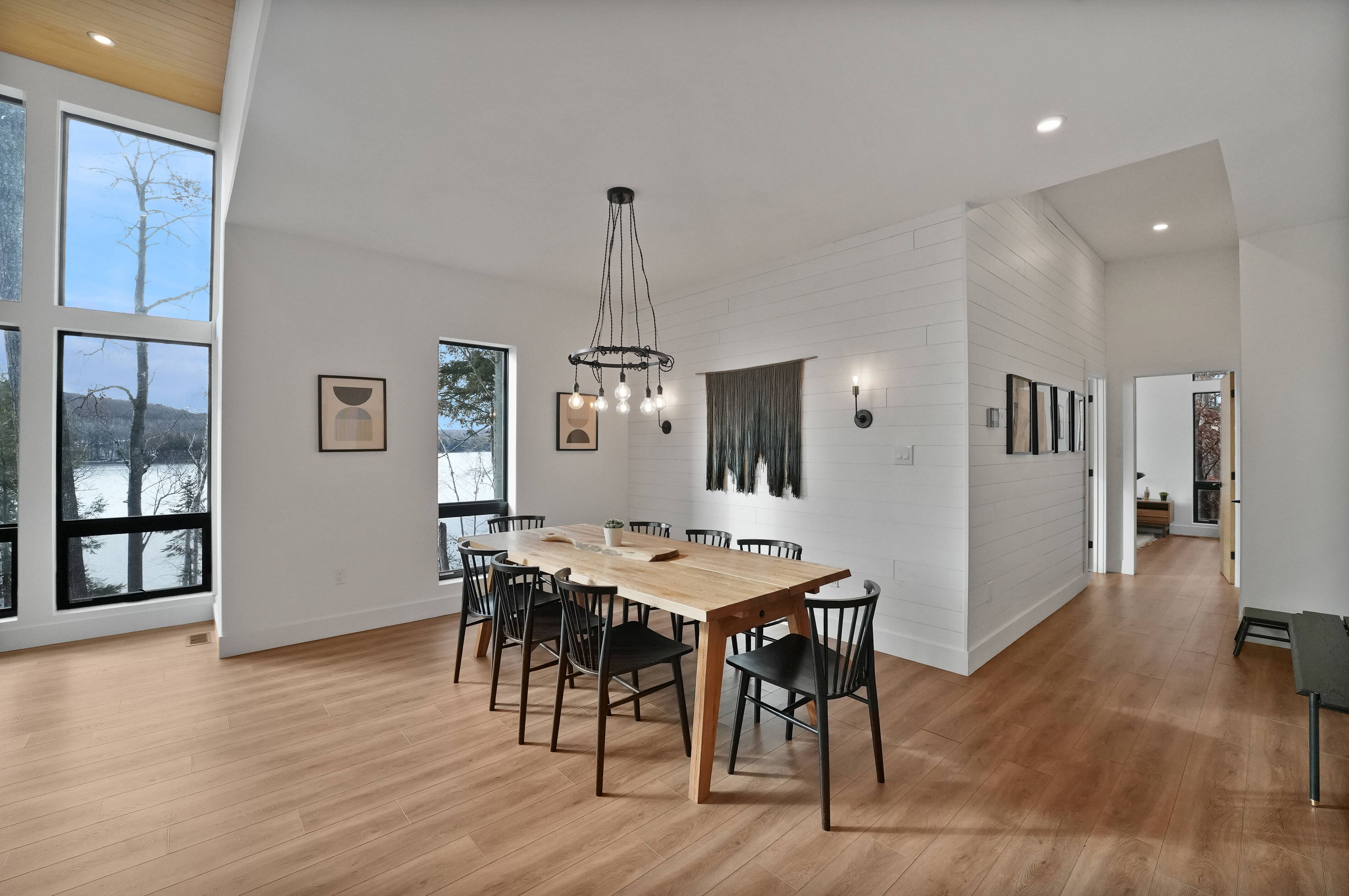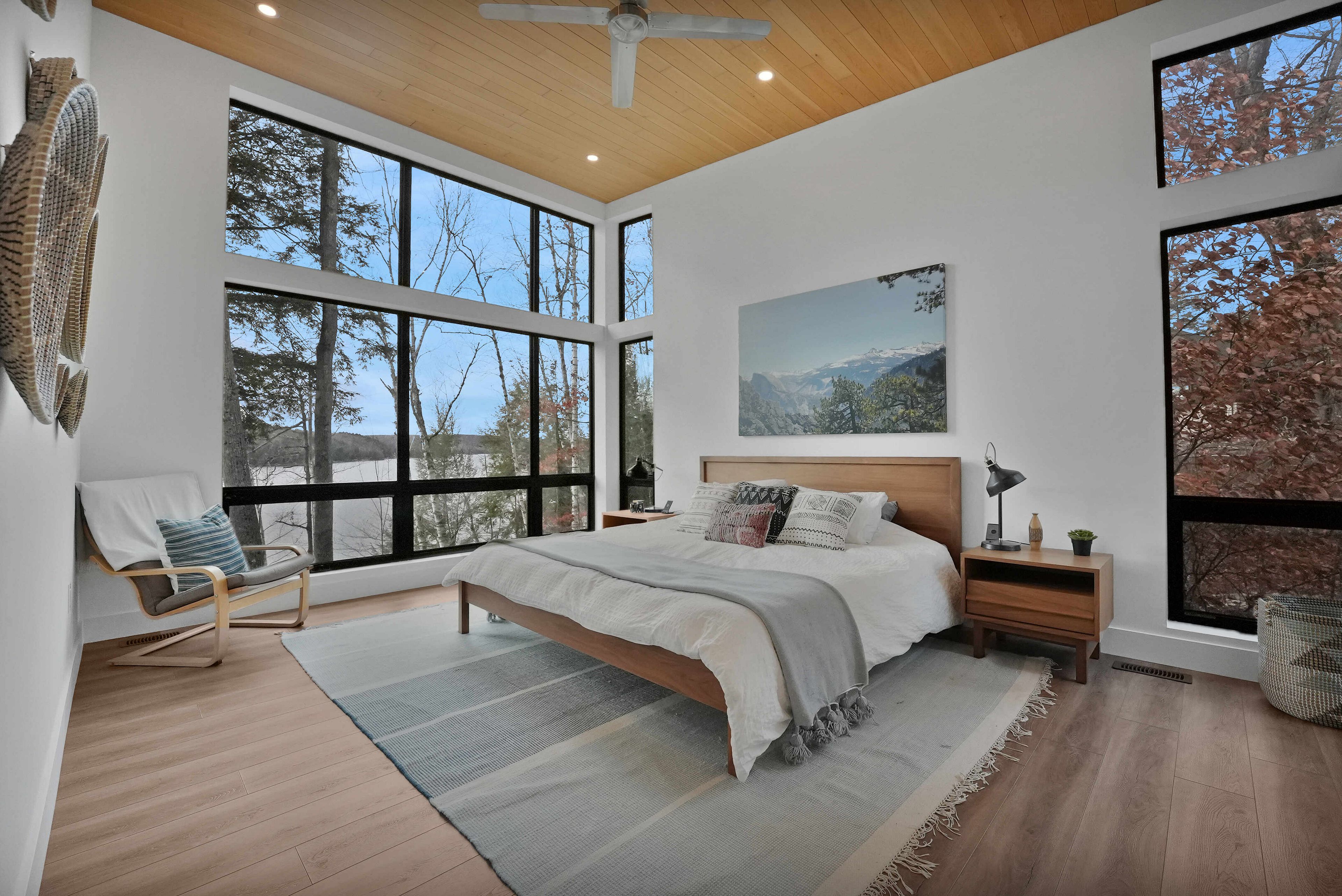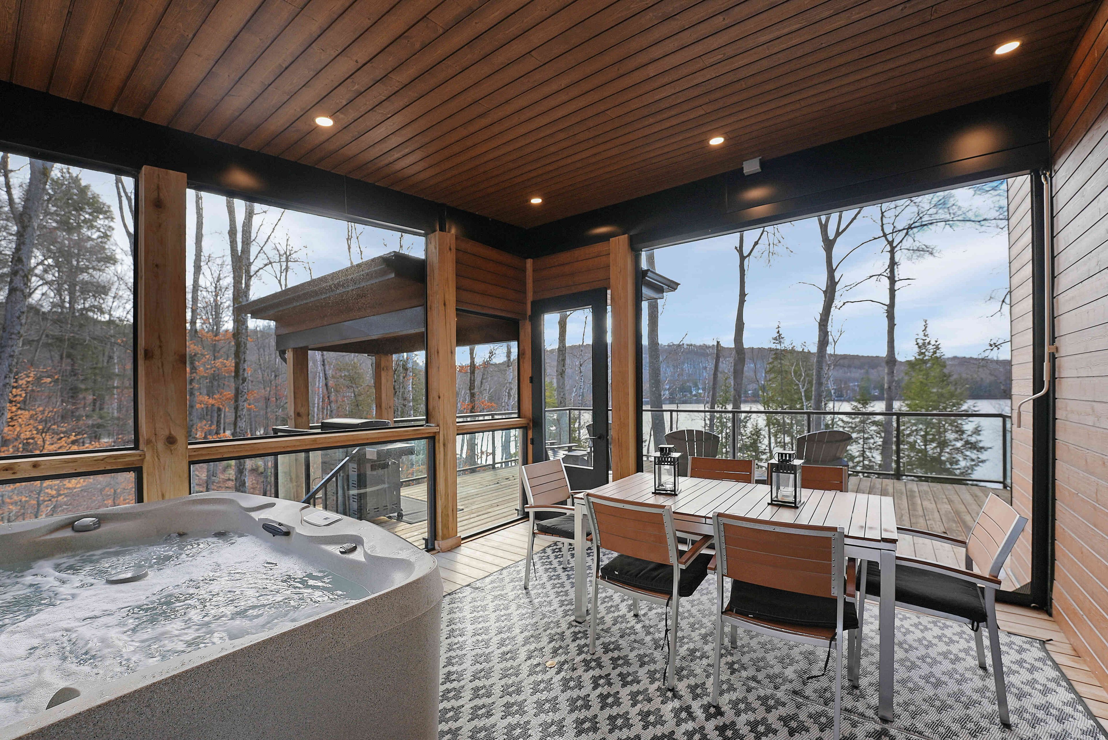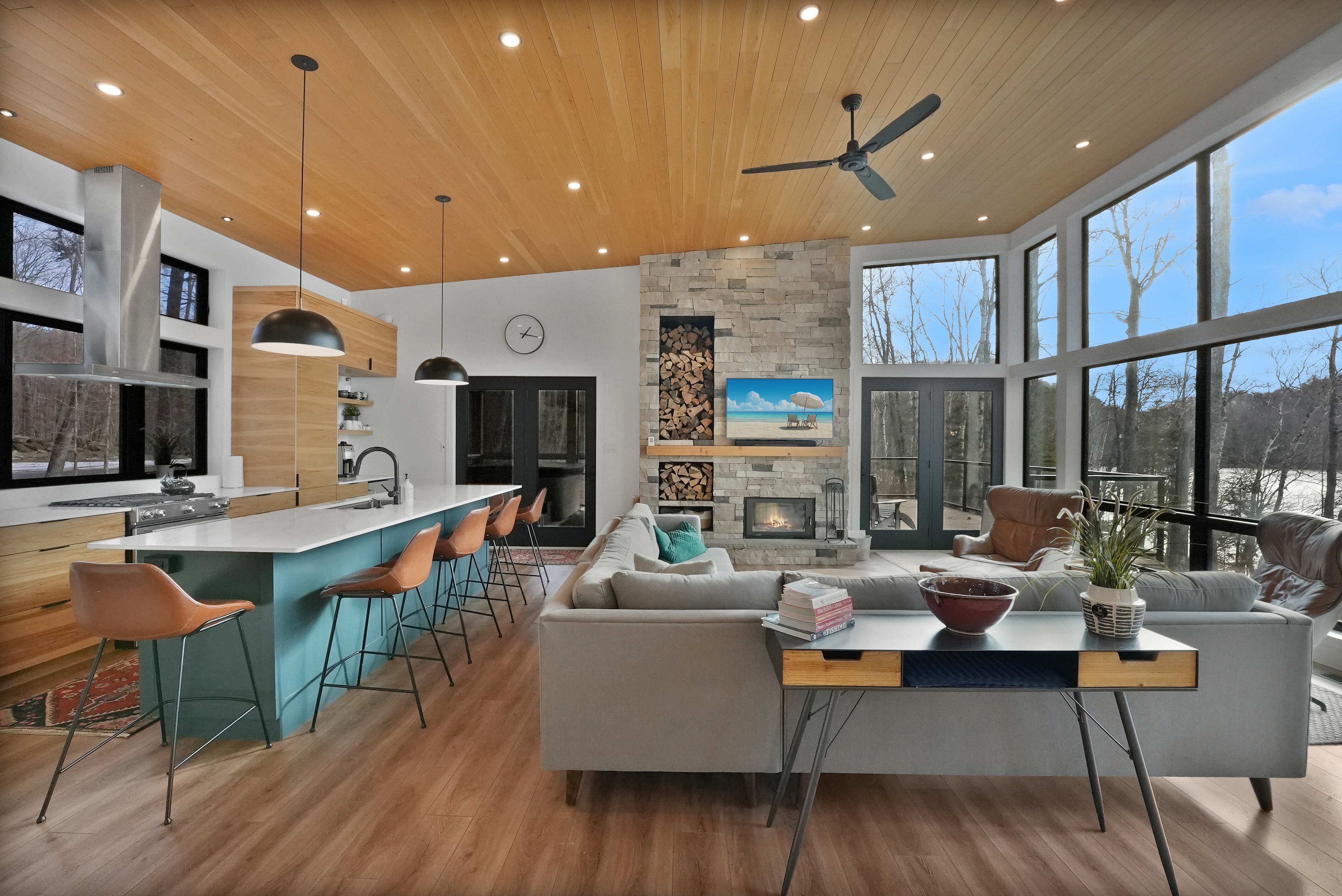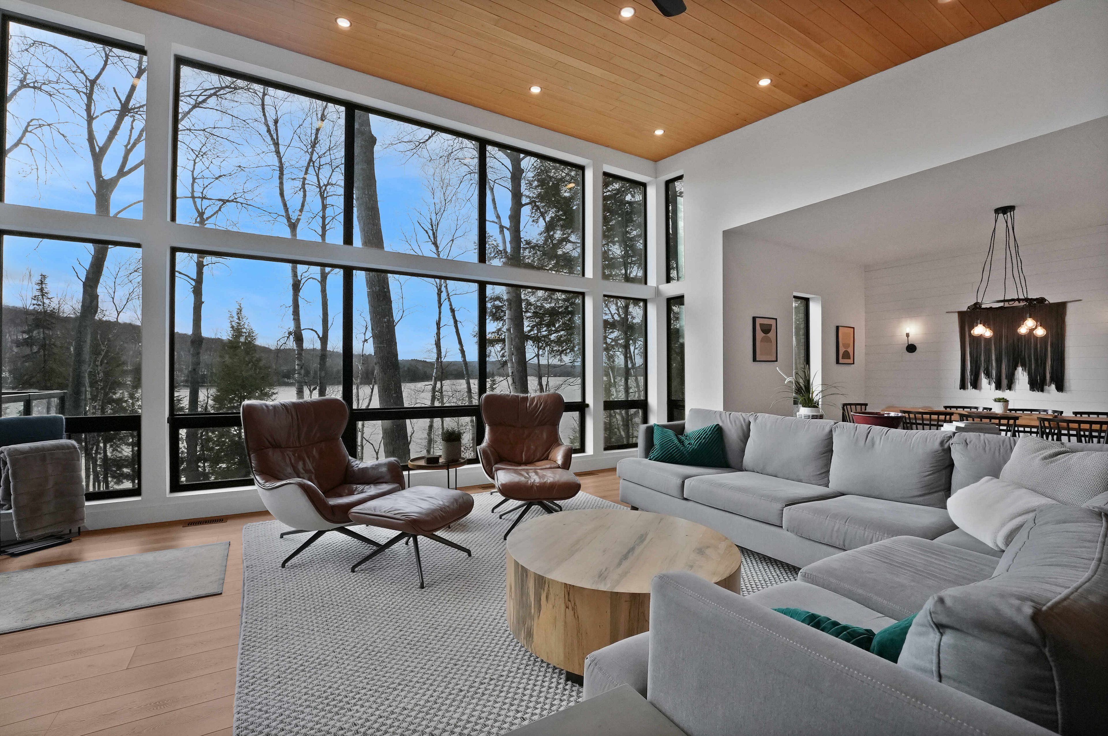 Discover luxury and meticulous craftsmanship in this spacious turn-key 5 bedroom, 3 bathroom home located on nearly 10 acres of haliburton lake waterfront. The heart of the main living area features a stunning wood-burning fireplace that creates an inviting focal point, perfect for cozy evenings after a day on the lake. The expansive windows flood the space with natural light and frames those spectacular western sunset views, while the open concept layout flows seamlessly for both intimate family gatherings and larger entertaining. A generous screened-in room extends your living space outdoors, offering a bug-free retreat where you can enjoy morning coffee, al fresco dining, or simply relax with a book while listening to the gentle sounds of the lake. Premium vinyl plank flooring flows throughout the bedrooms and main living areas, while all 3 bathrooms feature heated floors that add a touch of everyday luxury. The exterior of this property is equally as impressive, featuring landscaped steps that gently guide you to the waterfront where an oversized dock sits on a pristine rocky shoreline. The clear, weed-free water provides ideals swimming with big lake views. A fire pit creates the perfect gathering spot for family evenings. Engineered for superior comfort and year-round efficiency, this residence showcases comprehensive spray foam insulation, an advanced membrane wrap system around the foundation for absolute waterproofing, and thoughtfully designed roof overhangs that maximize passive solar gains-welcoming winter warmth while providing summer shade. The fully insulated 1500 sq. Ft garage features over r15 under-slab insulation with r30 above grade walls and radiant electric floor heating, creating a comfortable workspace or storage area in any season. Access 1200 acres of shared land, complete with trails for endless opportunites to explore untouched nature. Experience 1237 burlywood trail on one of haliburton's most sought after lakes.
