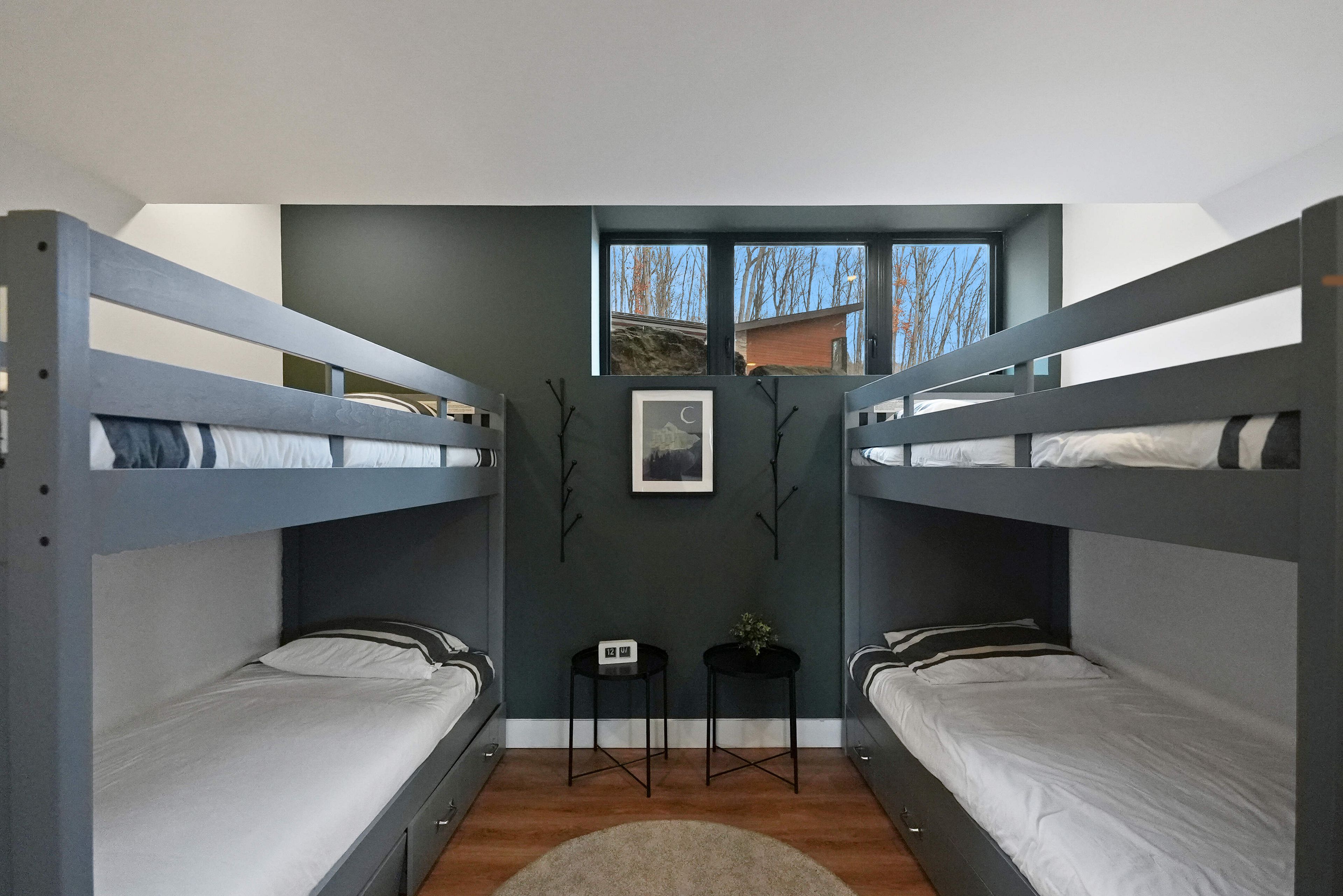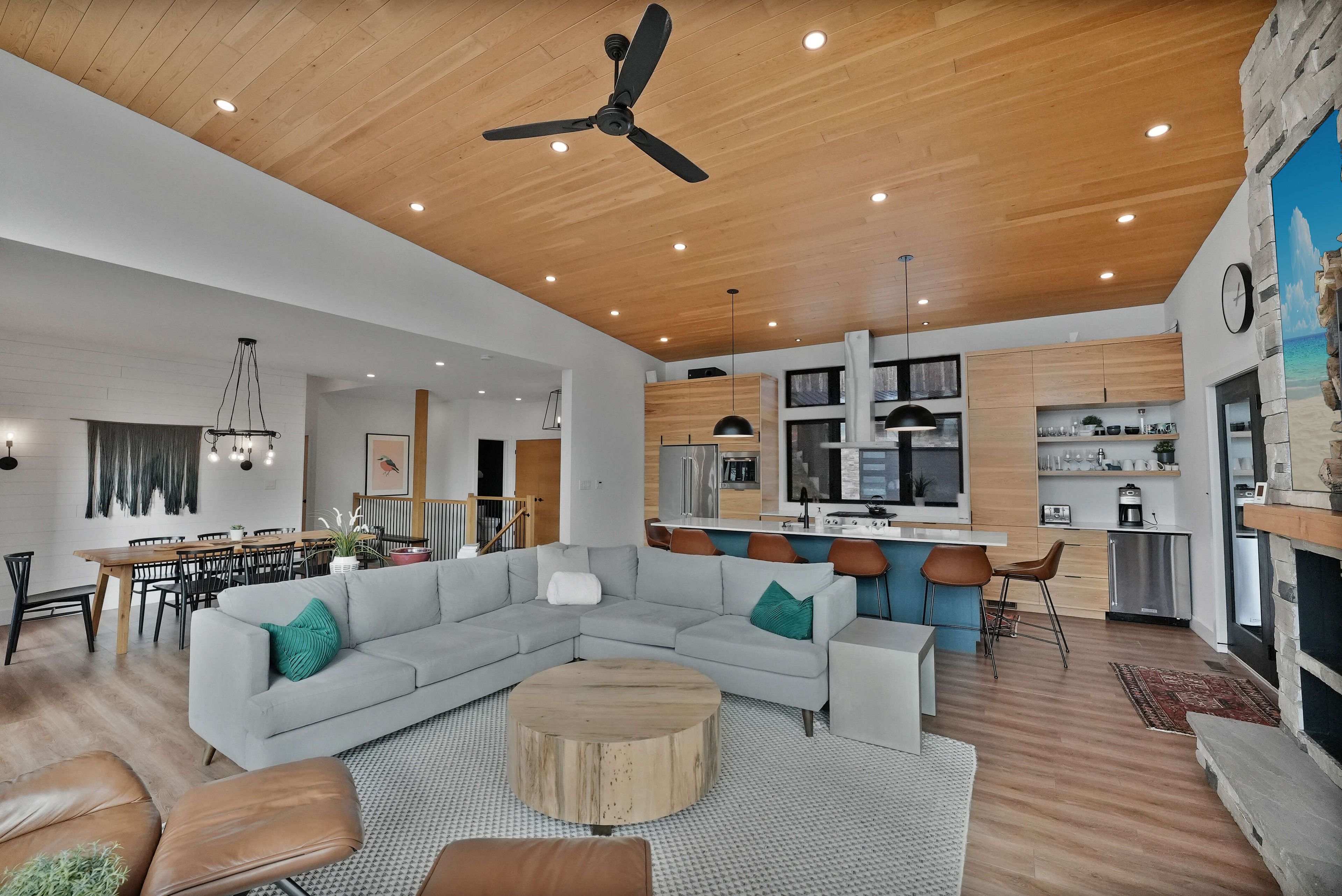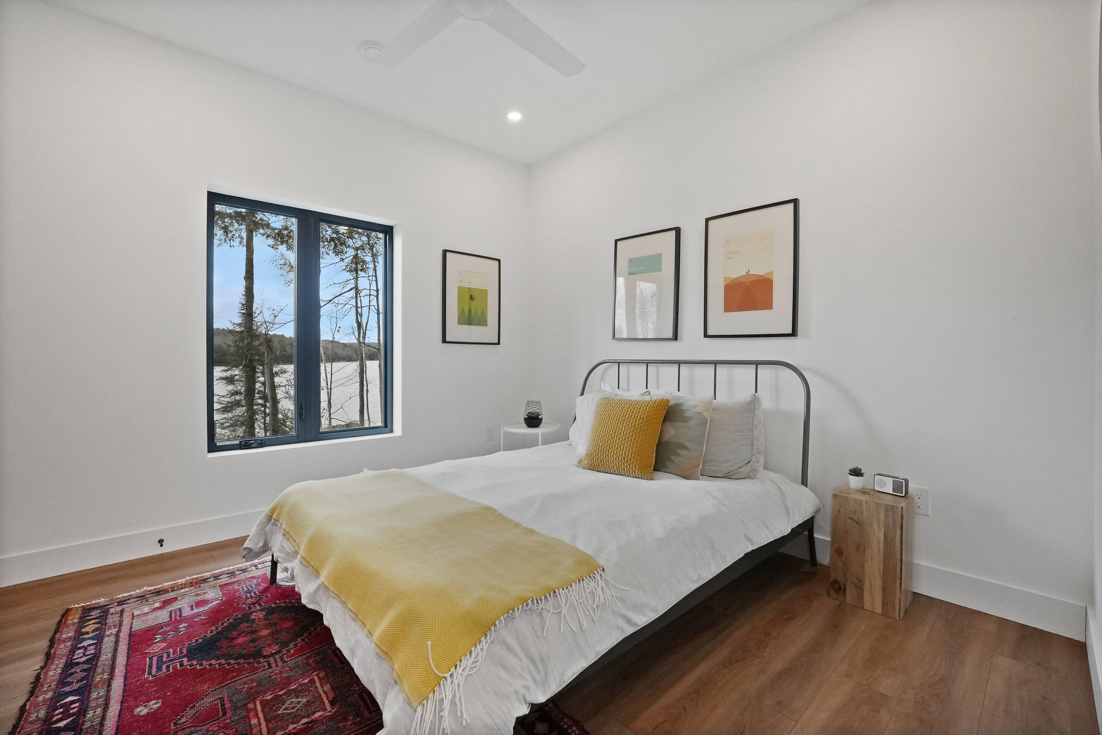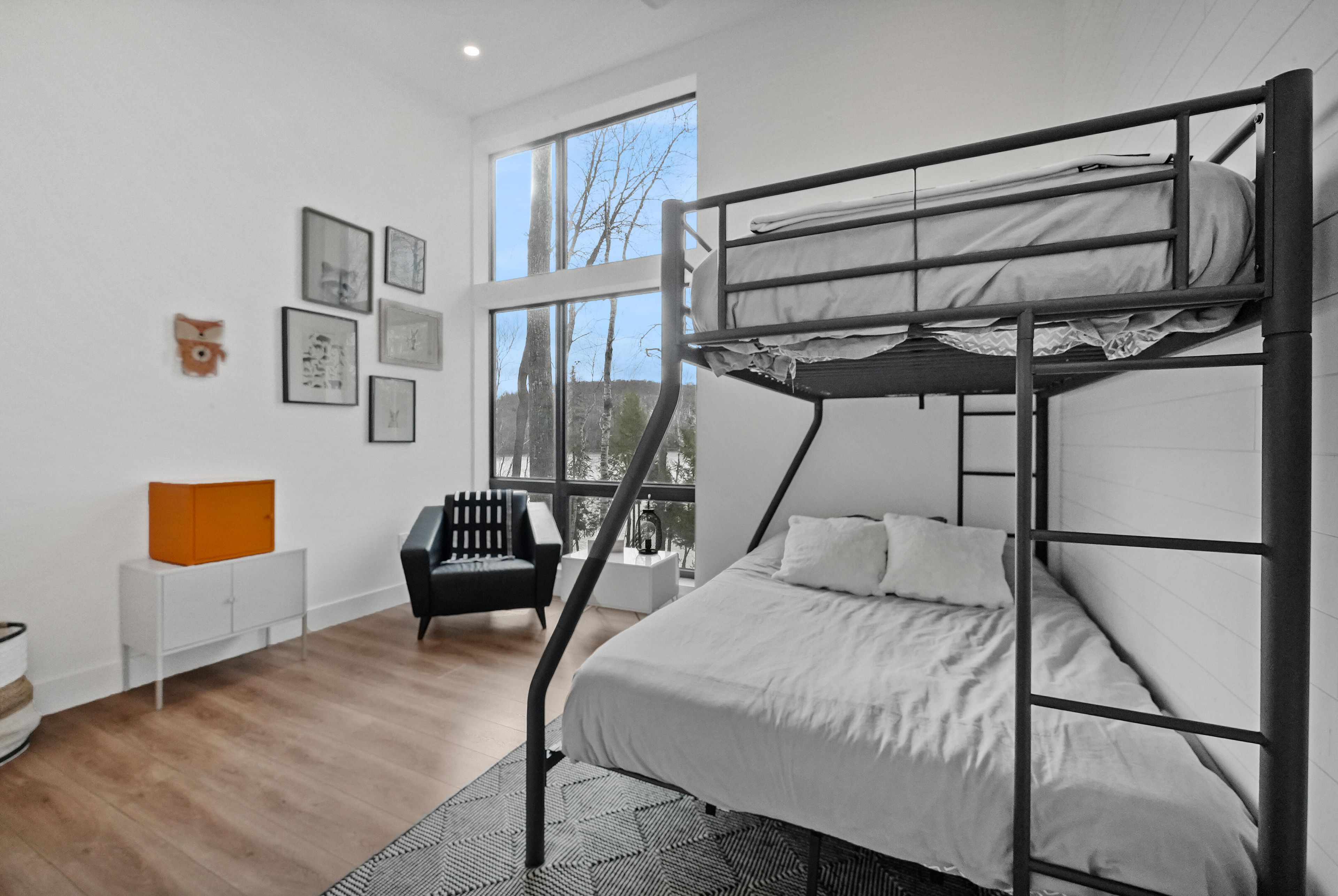 Discover luxury and meticulous craftsmanship in this spacious turn-key 5 bedroom, 3 bathroom home located on nearly 10 acres of haliburton lake waterfront. The heart of the main living area features a stunning wood-burning fireplace that creates an inviting focal point, perfect for cozy evenings after a day on the lake. The expansive windows flood the space with natural light and frames those spectacular western sunset views, while the open concept layout flows seamlessly for both intimate family gatherings and larger entertaining. A generous screened-in room extends your living space outdoors, offering a bug-free retreat where you can enjoy morning coffee, al fresco dining, or simply relax with a book while listening to the gentle sounds of the lake. Premium vinyl plank flooring flows throughout the bedrooms and main living areas, while all 3 bathrooms feature heated floors that add a touch of everyday luxury. The exterior of this property is equally as impressive, featuring landscaped steps that gently guide you to the waterfront where an oversized dock sits on a pristine rocky shoreline. The clear, weed-free water provides ideals swimming with big lake views. A fire pit creates the perfect gathering spot for family evenings. Engineered for superior comfort and year-round efficiency, this residence showcases comprehensive spray foam insulation, an advanced membrane wrap system around the foundation for absolute waterproofing, and thoughtfully designed roof overhangs that maximize passive solar gains-welcoming winter warmth while providing summer shade. The fully insulated 1500 sq. Ft garage features over r15 under-slab insulation with r30 above grade walls and radiant electric floor heating, creating a comfortable workspace or storage area in any season. Access 1200 acres of shared land, complete with trails for endless opportunites to explore untouched nature. Experience 1237 burlywood trail on one of haliburton's most sought after lakes.