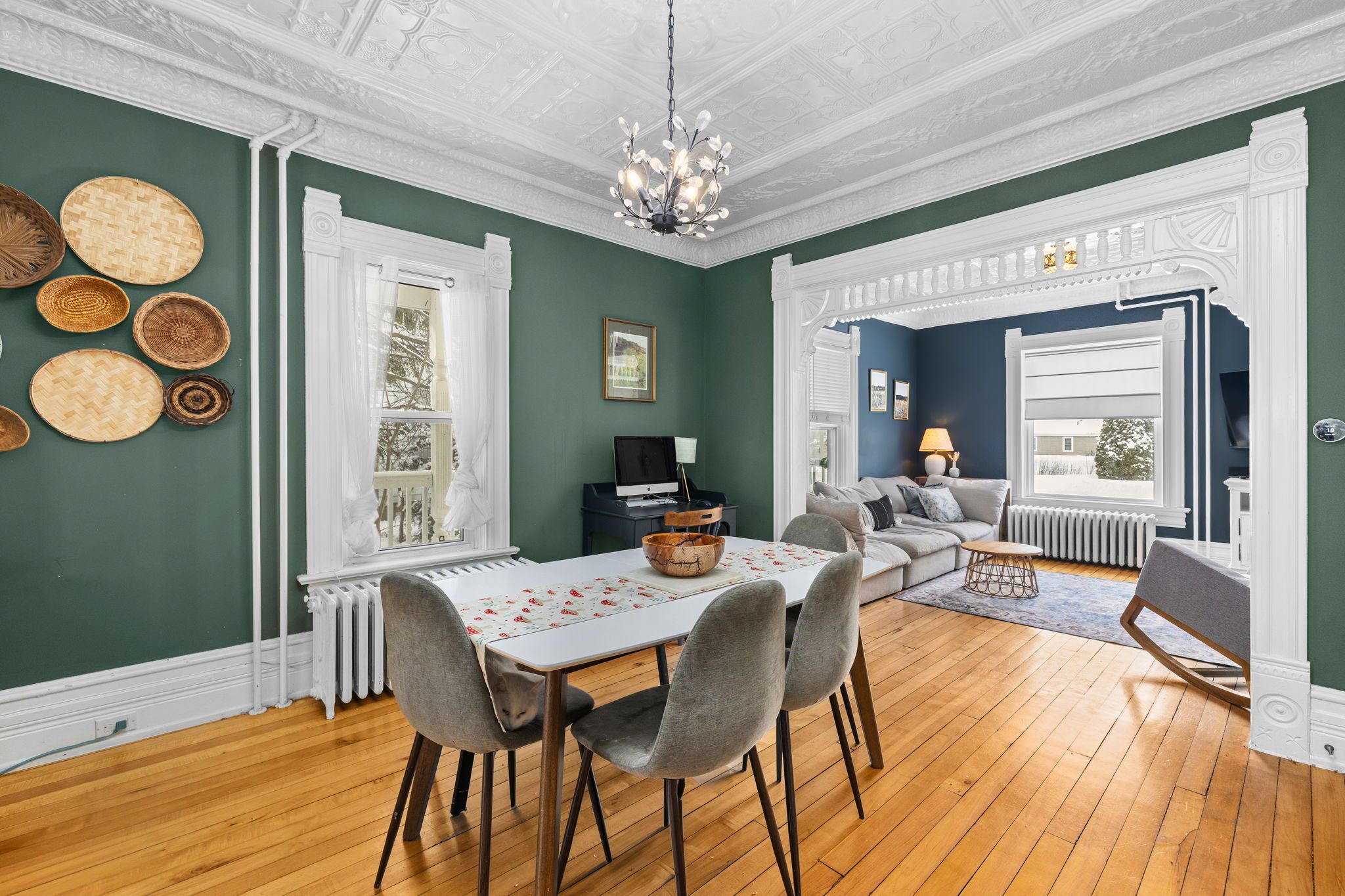 Beautifully maintained character home that hits the sweet spot between heritage charm and modern practical updates. Set on a perfect lot, with a fully fenced backyard, with a huge deck and a detached garage/shop and amongst an amazing family friendly community close to everyday amenities. Step inside to hardwood floors, solid wood doors, gorgeous trim and wainscotting that looks new, but that you can only get with a home from this era. The front foyer leads to a lovely living room with great natural light, and extends to a spacious formal dining room. The kitchen has been fully updated and features a custom pantry, a farmhouse sink & window overlooking the backyard, and a cozy eat-in area with access to the side porch and back deck. The main level is rounded out by a full bathroom and laundry. The second level is surprisingly spacious with an amazing central flex space. Perfect for a play room, hobby room or an additional family room! There are 4 good size bedrooms and a second full bathroom. Come and see for yourself what this beautiful and charming home has to offer!