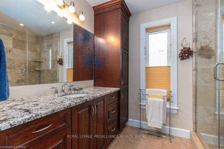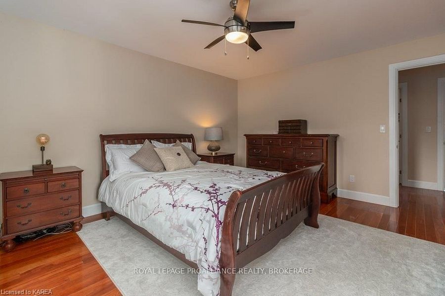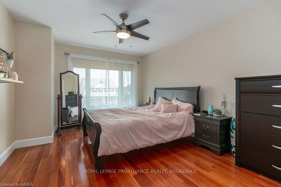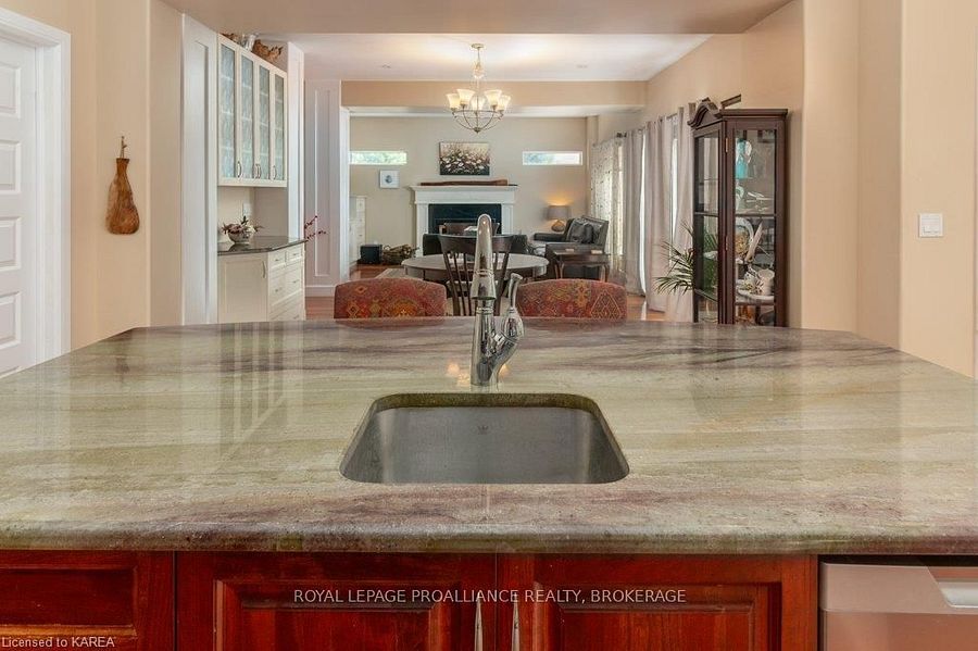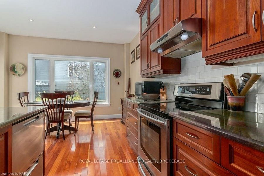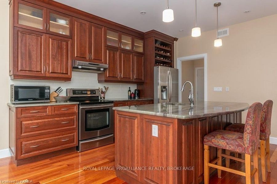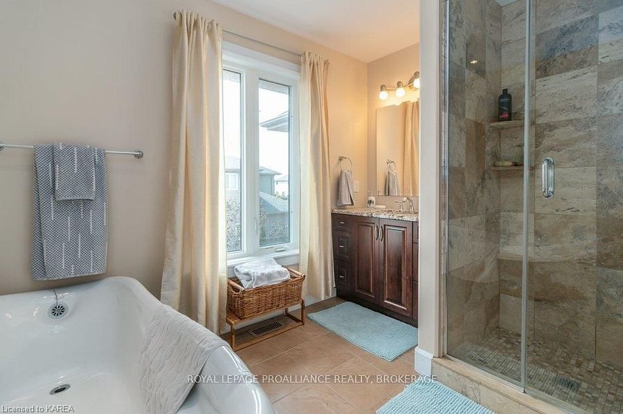 Modern luxury on a corner lot in cataraqui north. Bright, spacious, and beautifully finished, this 4+2 bedroom home offers refined living on a generous corner lot with a sunny south-facing backyard. The grand two-storey foyer features shaker-style columns and a striking cantilevered staircase leading to an open balcony landing. The main floors open-concept layout showcases cherry-wood floors, granite counters, transom windows, and custom built-ins. A large prep island anchors the cherry kitchen, complete with slow-close cabinetry and a walk-in pantry. Oversized windows flood the space with natural light, continuing upstairs into four spacious bedrooms. The primary suite includes patio doors to a juliet balcony and a stylish ensuite with a tiled walk-in shower and stone-topped vanity. The luxurious family bath features a roll-top clawfoot tub and separate shower. A second-floor laundry adds everyday convenience. The finished basement with 9-foot ceilings offers two additional bedrooms, a second kitchen, second laundry, and a large rec room, ideal for in-laws or teens. Outside, enjoy a covered gazebo patio, landscaped flower beds, and a deck with hot tub connections under a lean-to shelter. The property is equipped with hot tub and generator hookups, offering added comfort and peace of mind year-round. This home blends elegance and functionality perfect for families, entertainers, or multi-generational living.