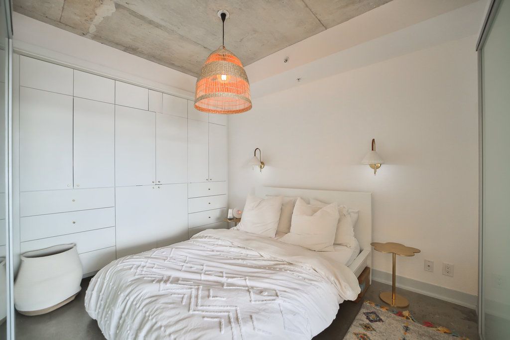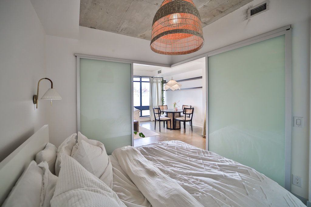 The abacus lofts - a unique and stylish condo in trinity-bellwoods/ossington. Spacious, high and bright one bedroom with high ceilings and floor to ceiling windows. Steps from grocers, the park, cafes, the ossington strip, restaurants. This unit has been updated with a concrete floor, floating shelves in the living room, custom cabinets in the bedroom, and an extra countertop and cabinets in the kitchen. A rare find!