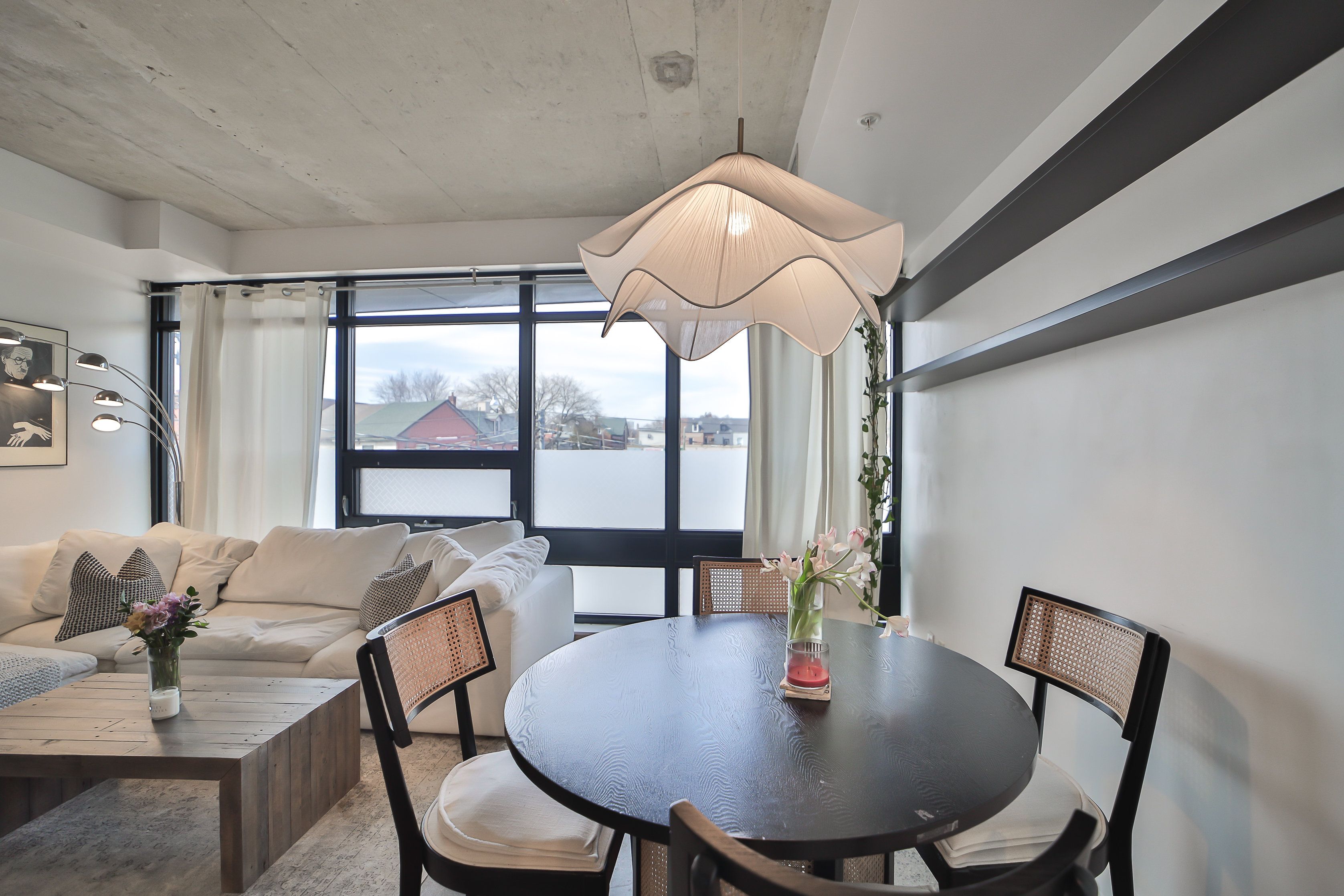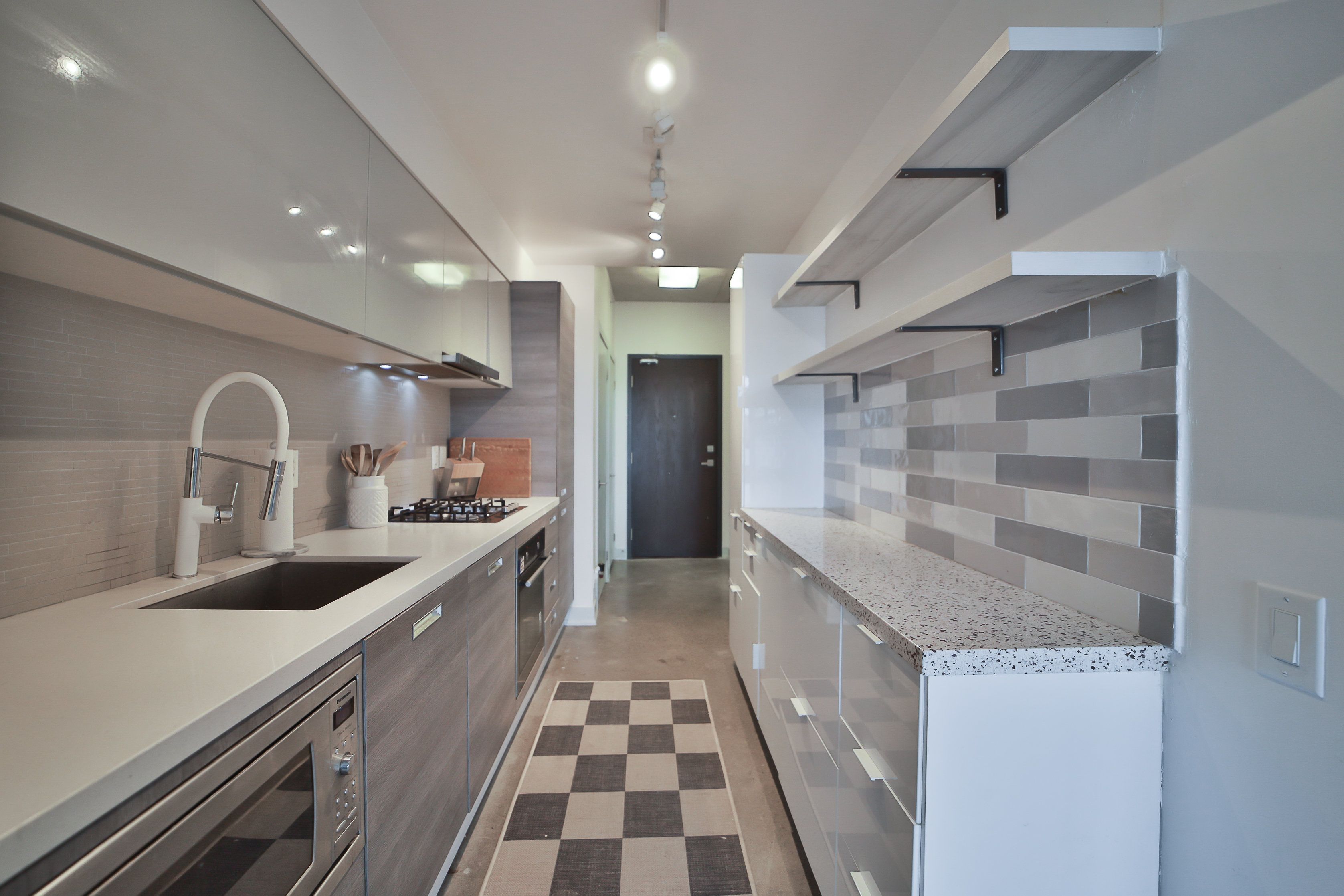 The abacus lofts - a low-rise 1 bedroom loft in trinity-bellwoods with a spacious and bright floor plan with high ceilings, floor to ceilingwindow. Close to the ossington strip, restaurants, cafes, lcbo, streetcar, subway, go-station, parks. This unit has been updated with aconcrete floor, floating shelves in the living room, custom cabinets in the bedroom, and an extra countertop and cabinets in the kitchen. Landlord will consider 1 year lease but would prefer a 2 year lease.