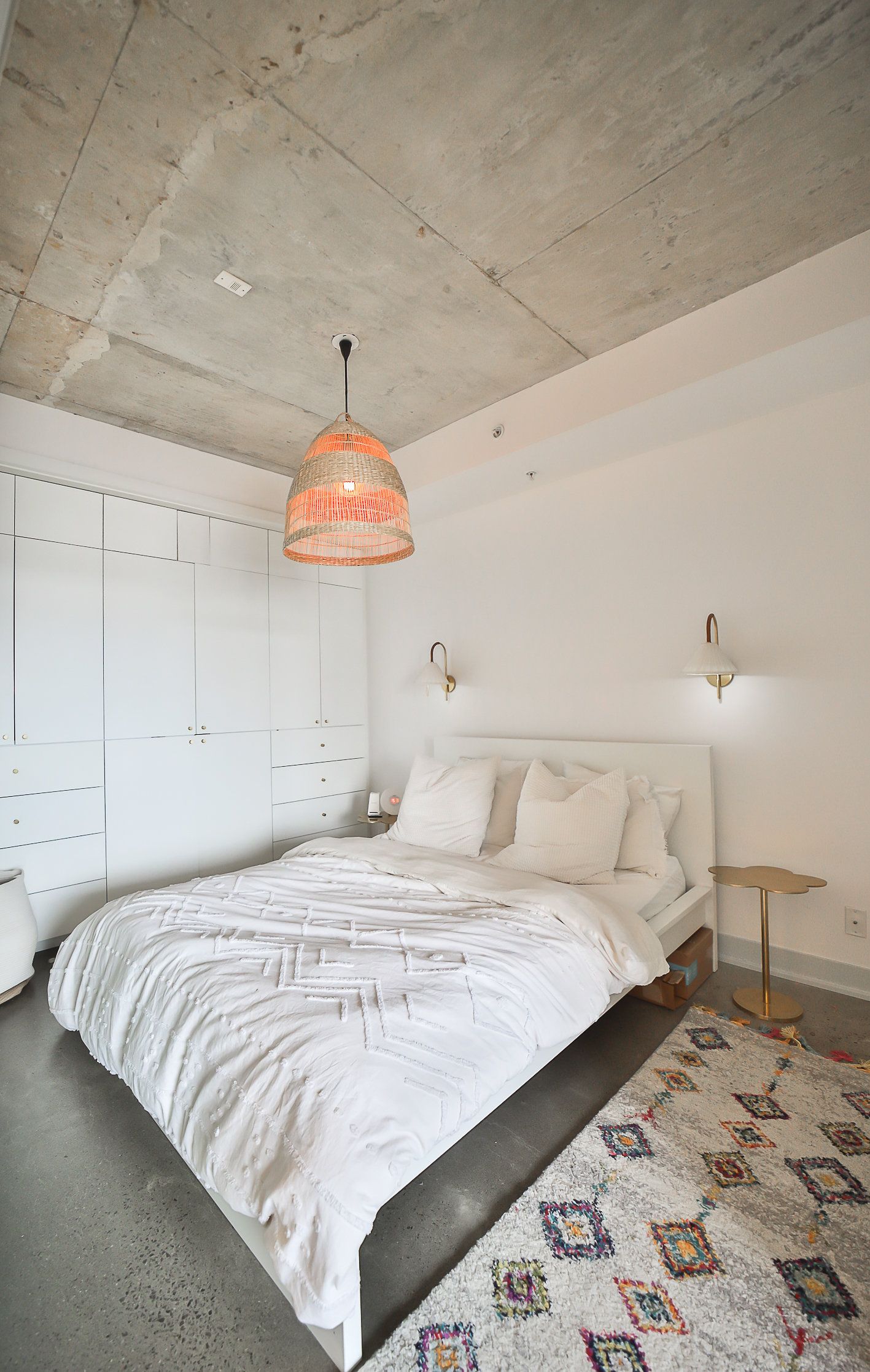 • Updated with modern concrete floors and custom cabinetry features.