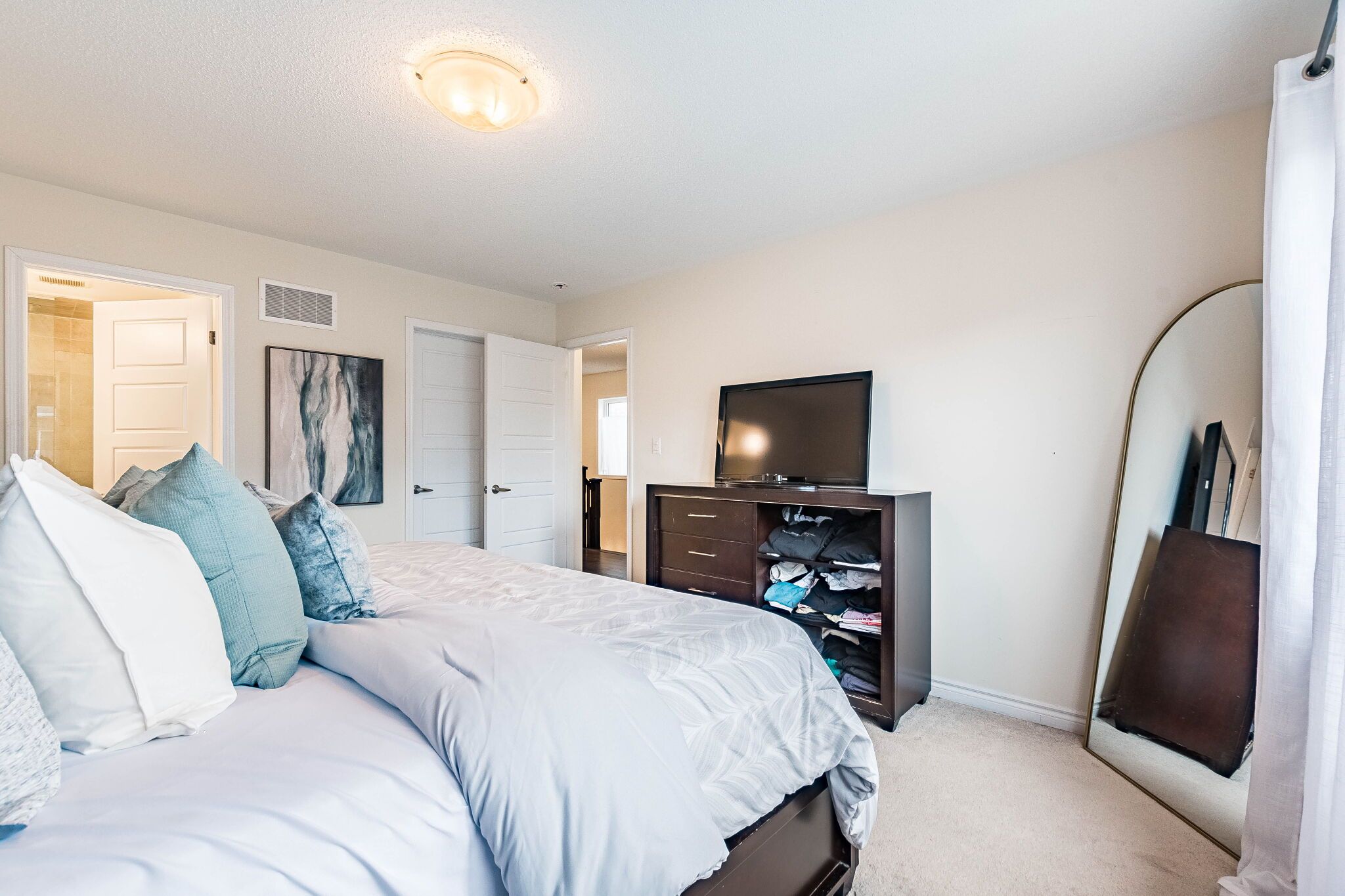 • Master bedroom features walk-in closet and private ensuite bathroom.