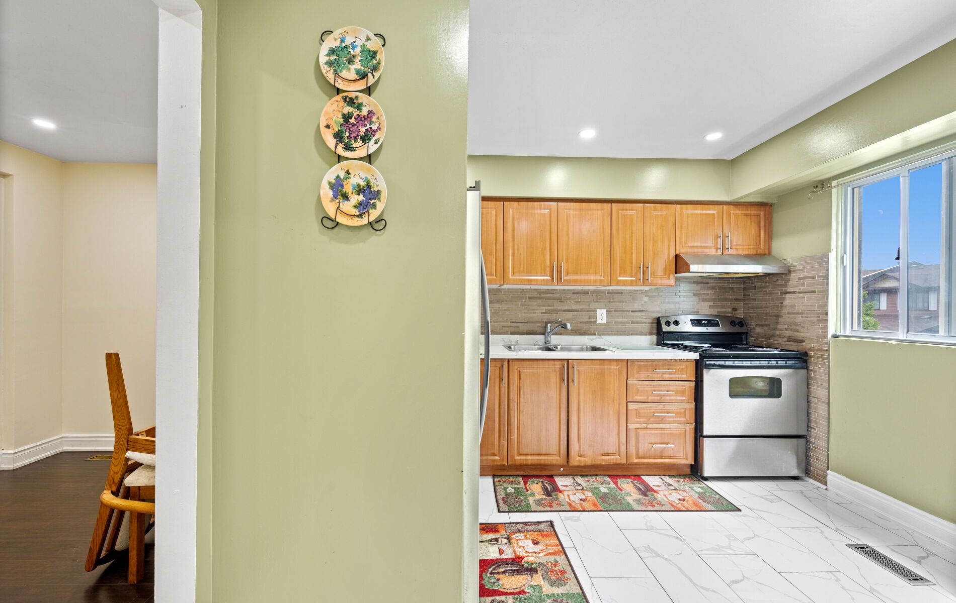 • Updated kitchen with quartz countertops and stainless steel appliances.