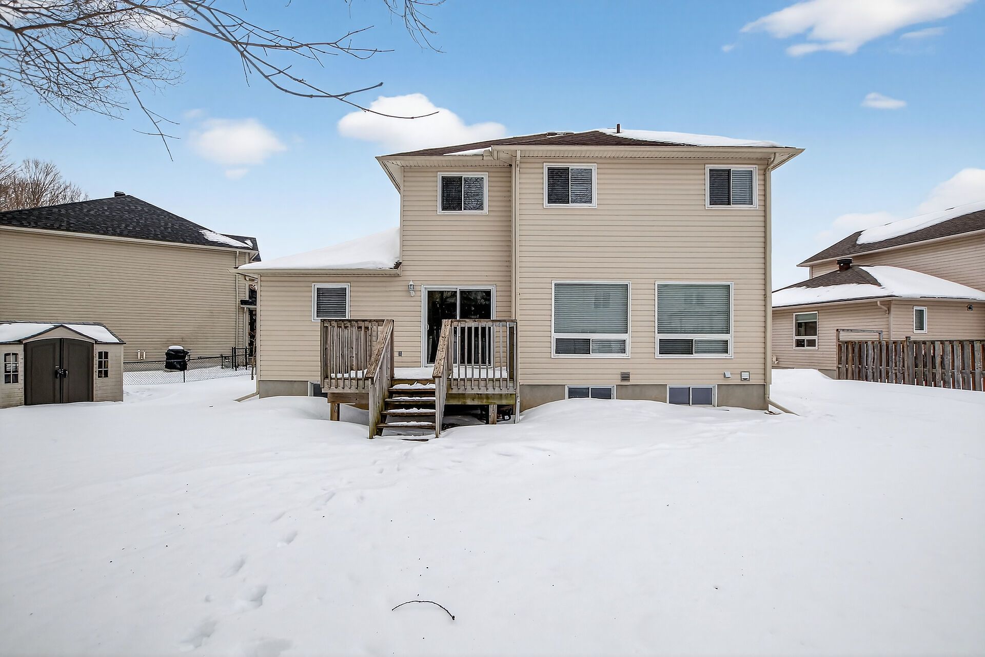 Welcome to this beautiful 2 storey single-family home with large front porch, perfectly situated on a quiet cul-de-sac. Large 9063 sq ft pie-shaped lot with mature trees, located in a family-oriented neighborhood. This home features a double car garage with 2 auto garage door openers, convenient inside entry to mud room with main floor laundry. Main floor offers spacious living room with hardwood flooring throughout and central natural gas fireplace. Formal dining room, great for entertaining conveniently located next to well-equipped eat-in kitchen with ample cabinetry, breakfast bar, stainless steel appliances, under cabinet lighting, ceramic backsplash and flooring. Separate eating area with patio door access to spacious deck. Upstairs, you'll find three comfortable bedrooms, primary retreat with a walk-in closet and a 4-piece ensuite featuring a separate shower and relaxing soaker tub. A 4-piece family bathroom, also with ceramic tile flooring, serves the additional bedrooms. The lower level is unspoiled with a rough-in for a future bathroom, providing endless possibilities for additional living space or storage. Step outside to enjoy the large mature treed lot with a spacious deck perfect for entertaining or simply relaxing in the outdoors. This home is the ideal blend of comfort, style, and potential in one of carleton places most sought-after neighborhoods. 24 hour irrevocable on all offers