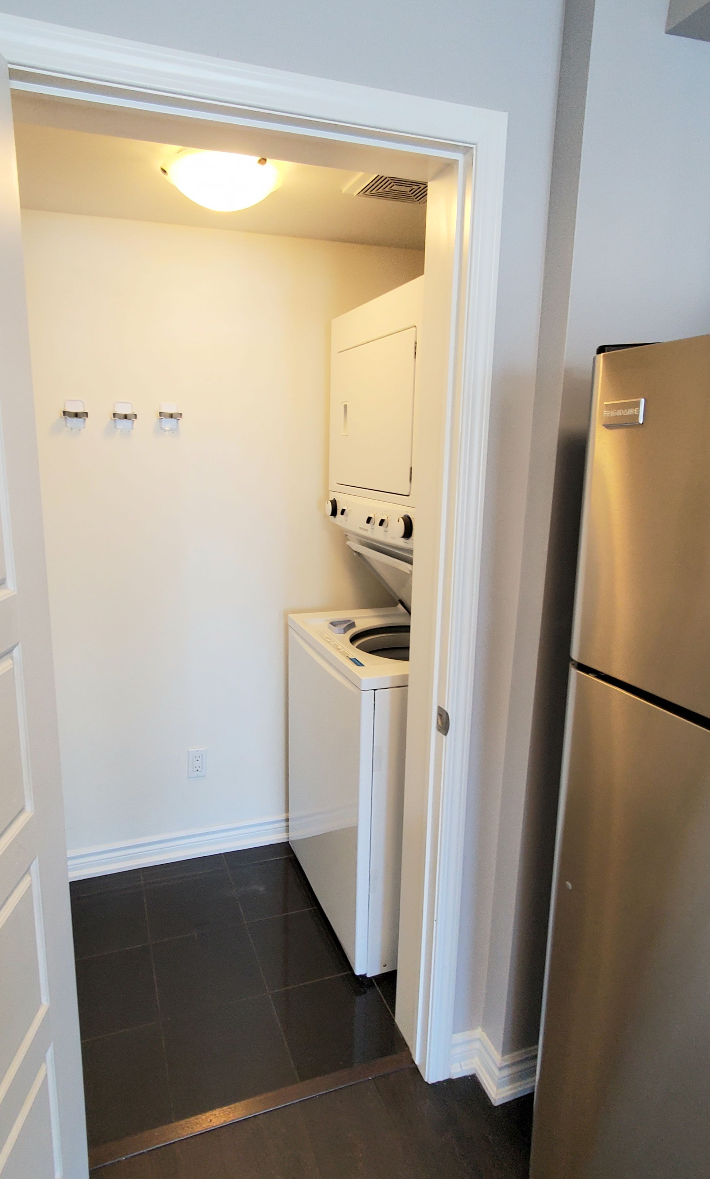 Beautiful upgraded stacked townhouse! This spacious home has 9' ceilings, 2 beds both with ensuite 4-pc baths, w walk-in closets and two parking spots with an additional 2-piece bathroom and laundry on the main. The modern open concept kitchen with granite counters and stainless steel appliances also has a large pantry and walk out to a generous patio!