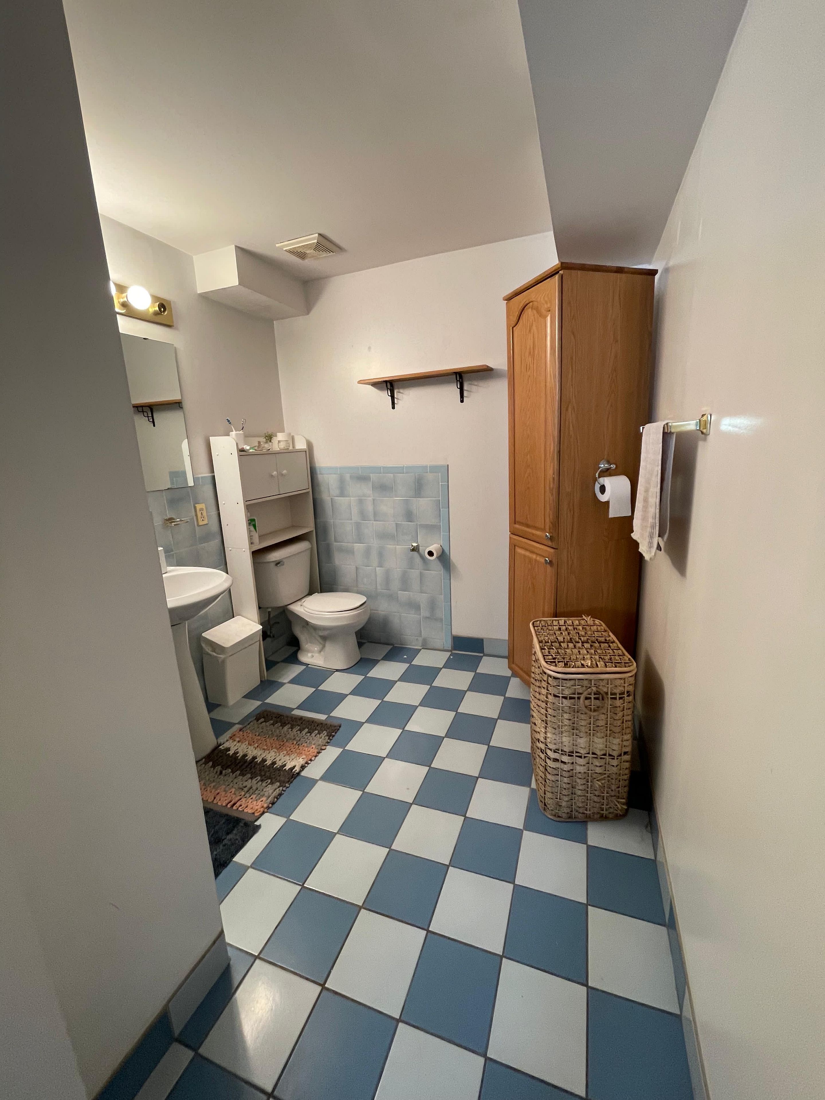 • Main level features three bedrooms; lower level has two rooms and a full washroom.