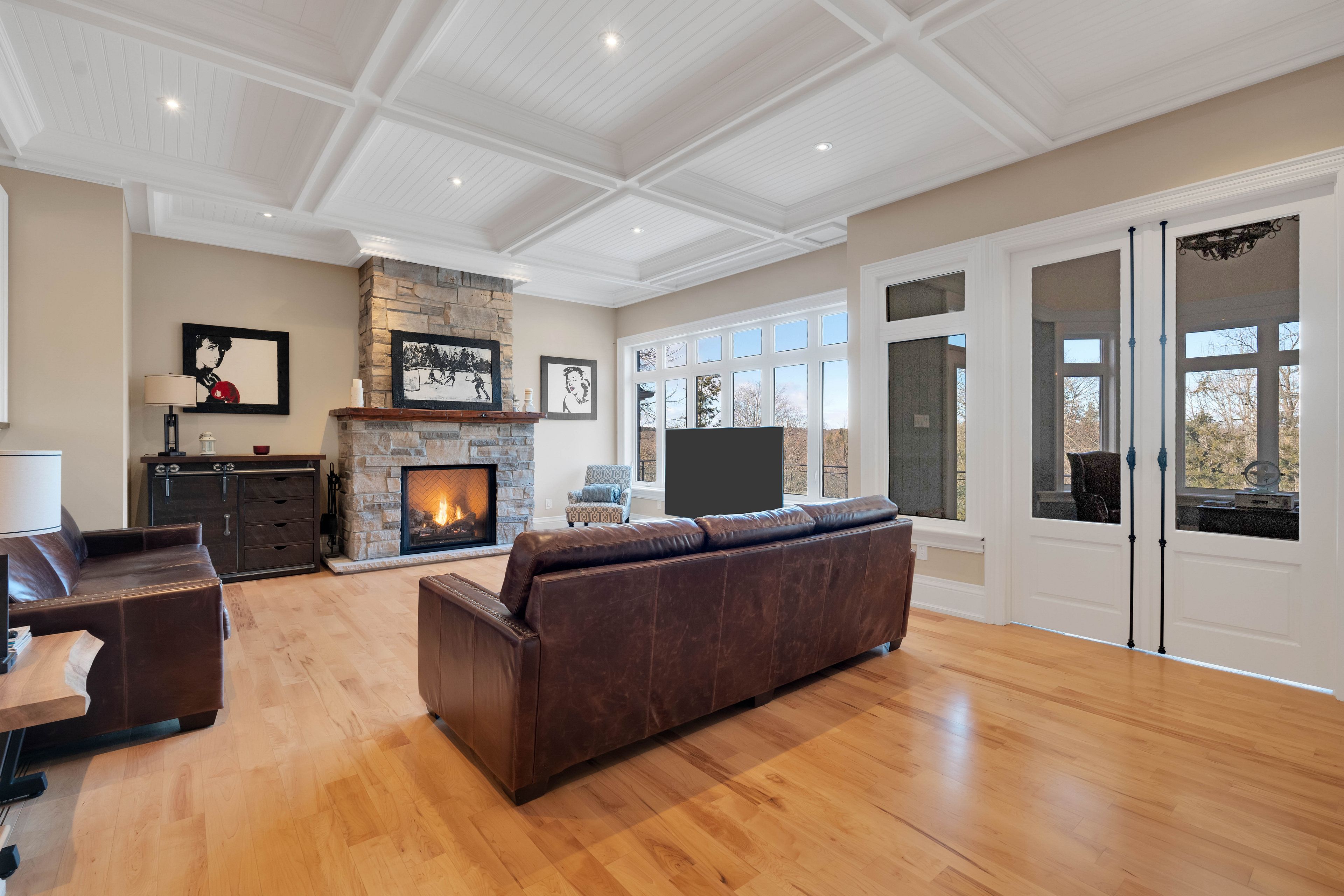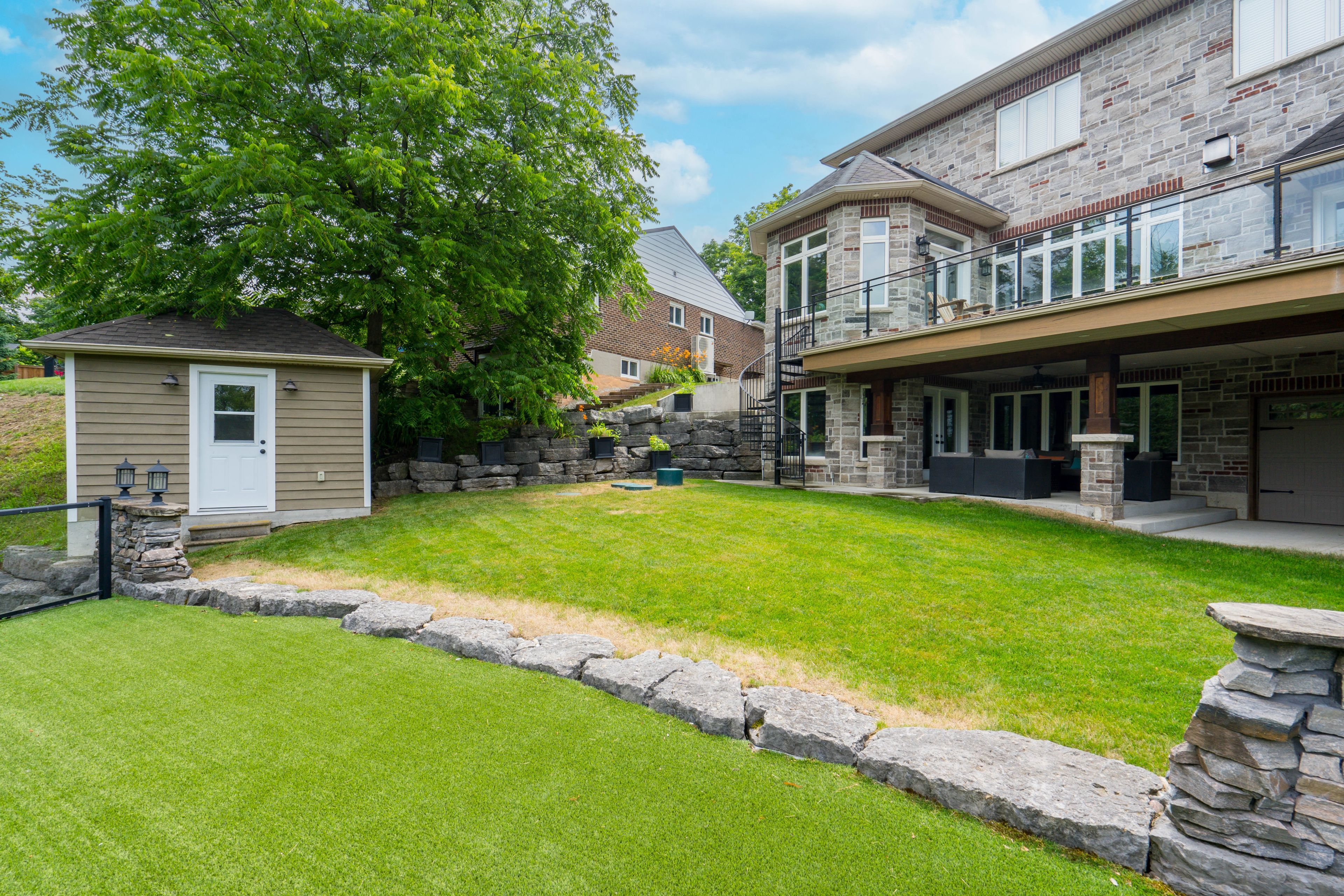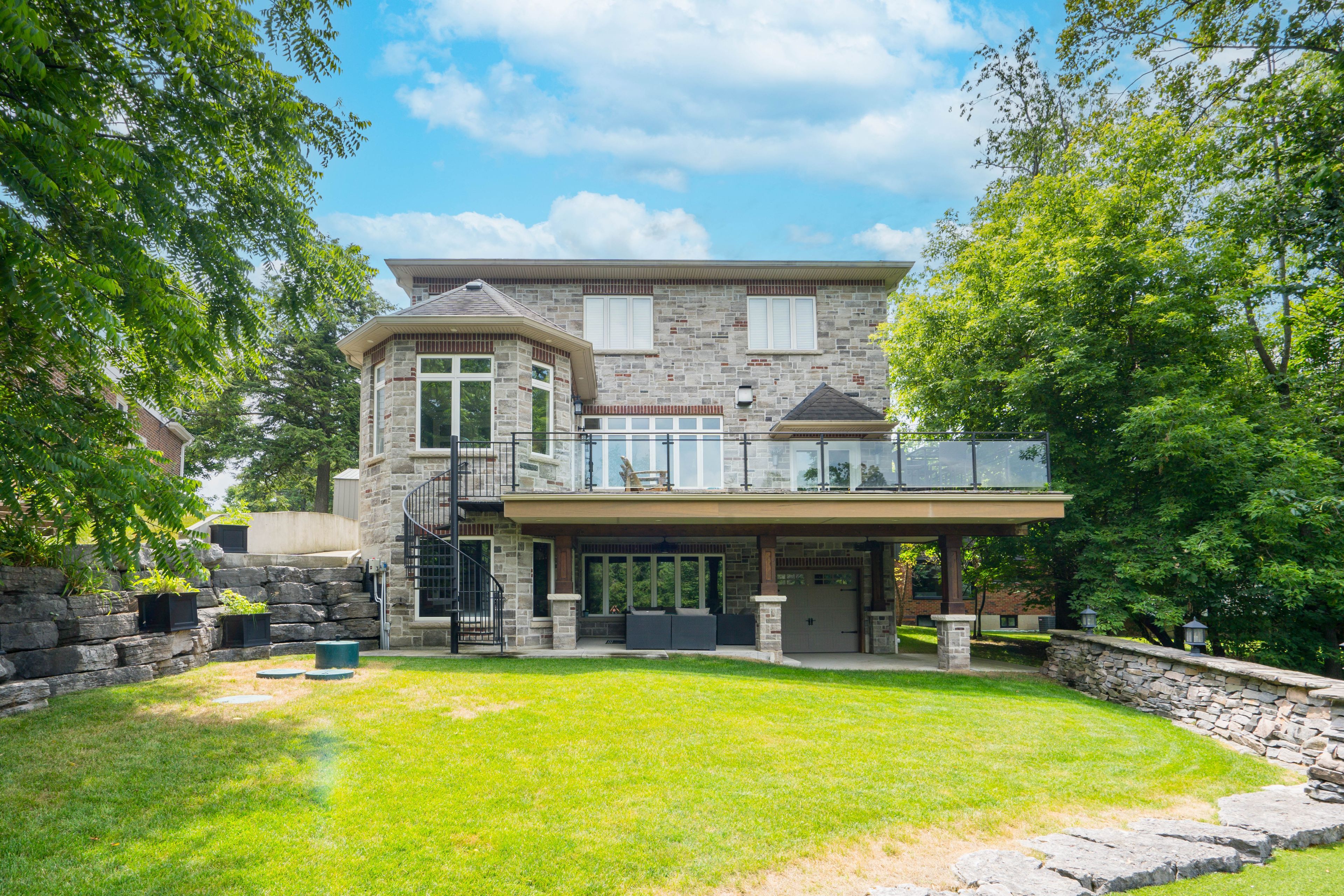 Experience the pinnacle of luxury living in this custom-built stone and brick estate, nestled in one of king townships most exclusive enclaves. Boasting approximately 4,170 sq. Ft. Of refined above-grade living space, plus an additional 1,550 sq. Ft. In the walkout lower level awaiting your personal touch, this home offers a rare combination of elegance, comfort, and privacy. This property features a built-in 400+ square foot workshop/storage room located under the double tandem garage. Set on a spectacular ravine lot surrounded by mature trees, the property provides sweeping views of protected conservation lands from many of its spacious, light-filled rooms. This 4-bedroom, 3-bathroom residence is a true sanctuary, featuring a chef-inspired kitchen with oversized granite countertops, premium stainless steel appliances, and a seamless open-concept designperfect for effortless entertaining and everyday living. A sun-drenched solarium opens to an elevated patio overlooking the tranquil ravine, creating an idyllic backdrop for family gatherings or peaceful evenings at home. Located in a serene community with other custom-built homes, this exceptional property offers the ultimate in total privacy and prestige.