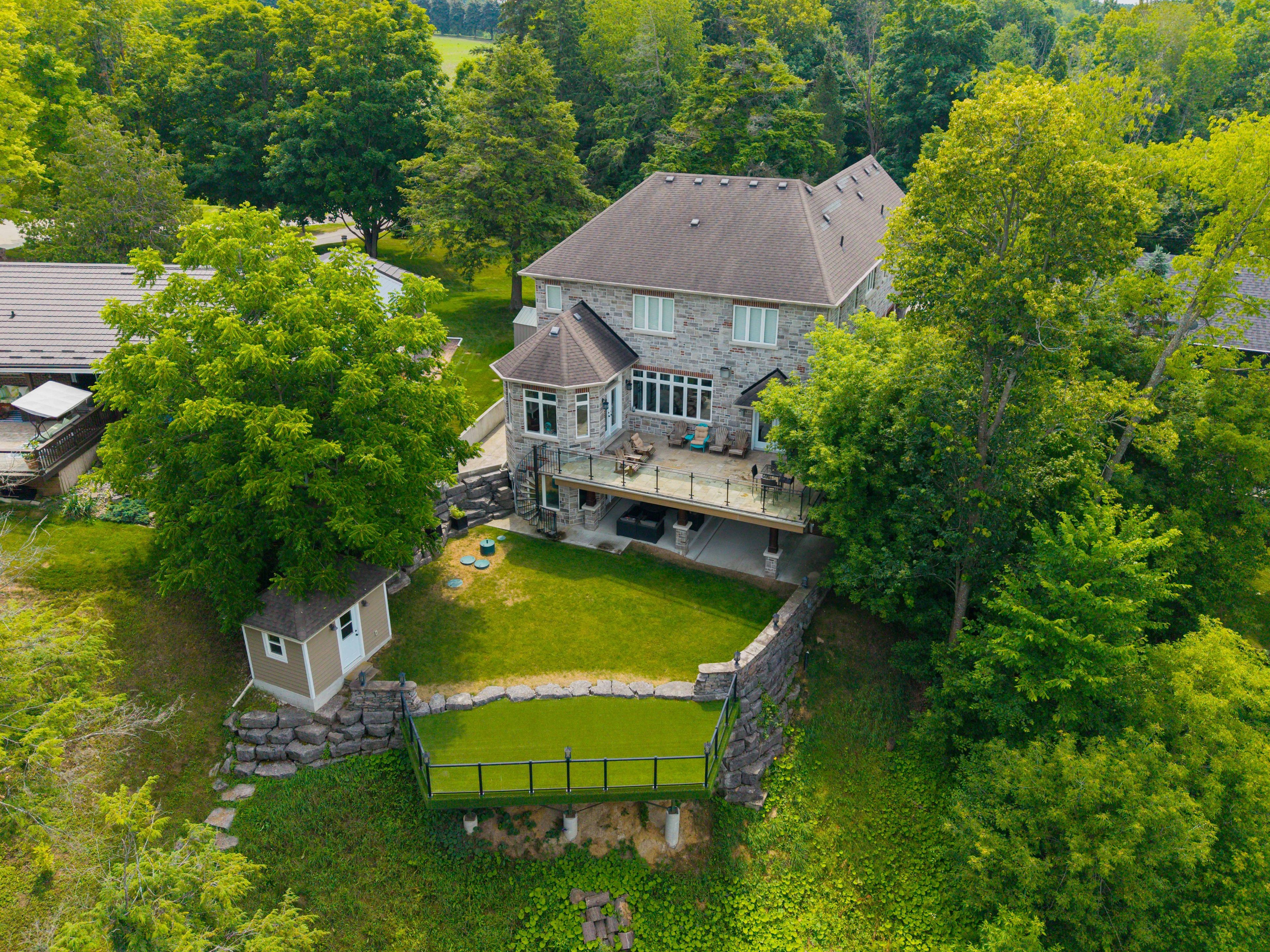 • Custom-built stone and brick estate with over 4,170 sq. ft. of living space.