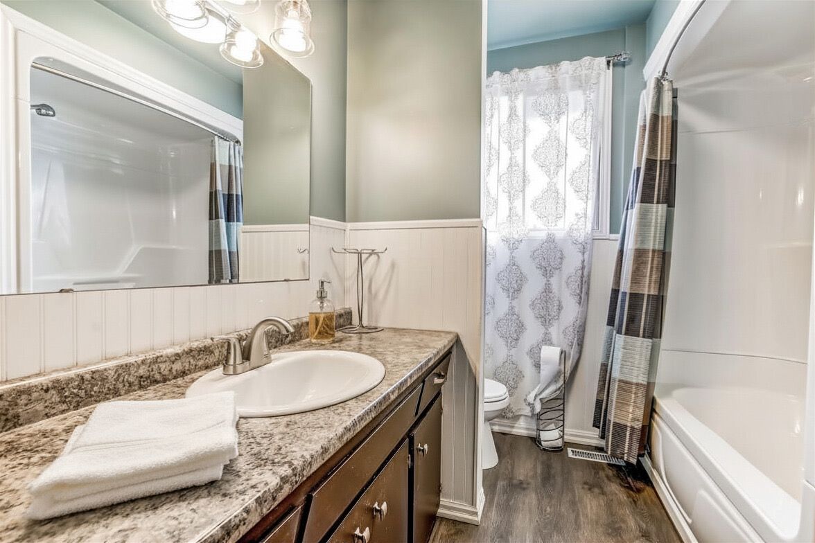 • Bright eat-in kitchen with ample space for family meals and gatherings.