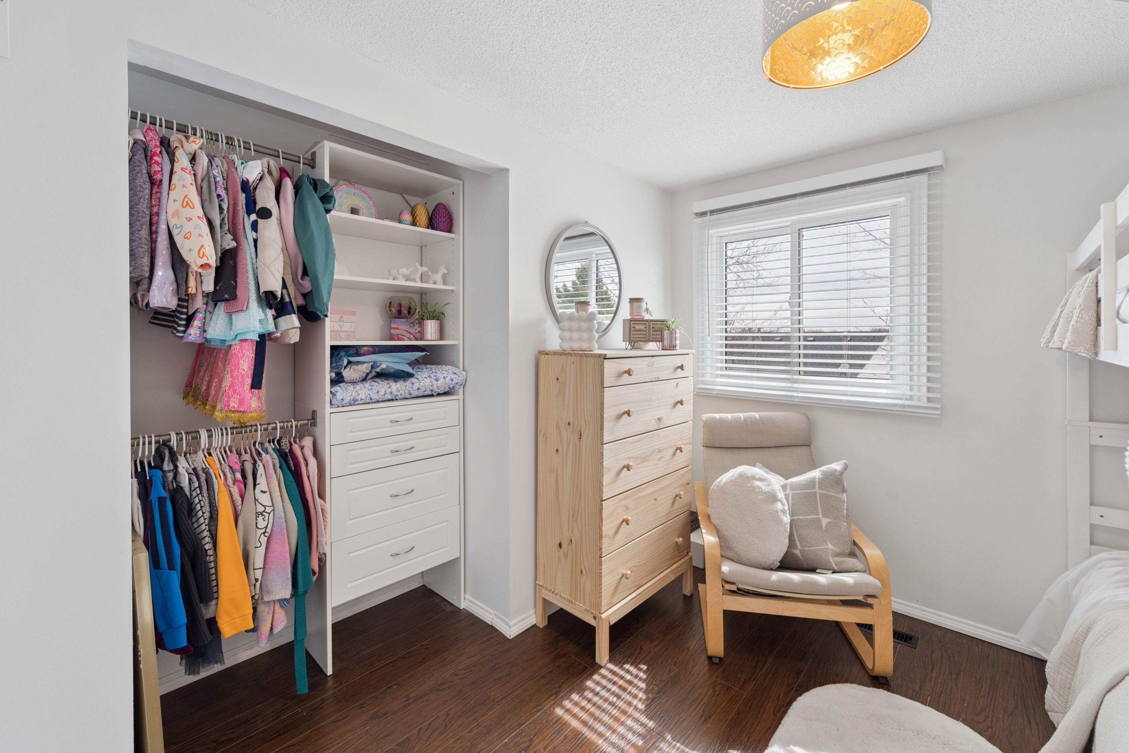 • Generously sized primary retreat with a walk-in closet and semi-ensuite.