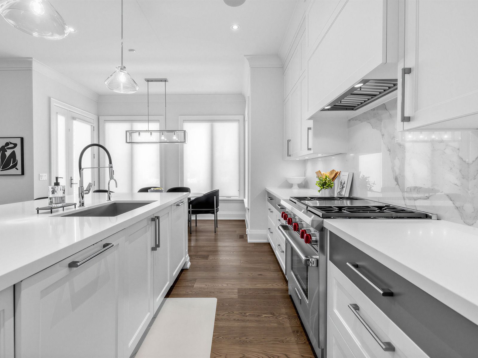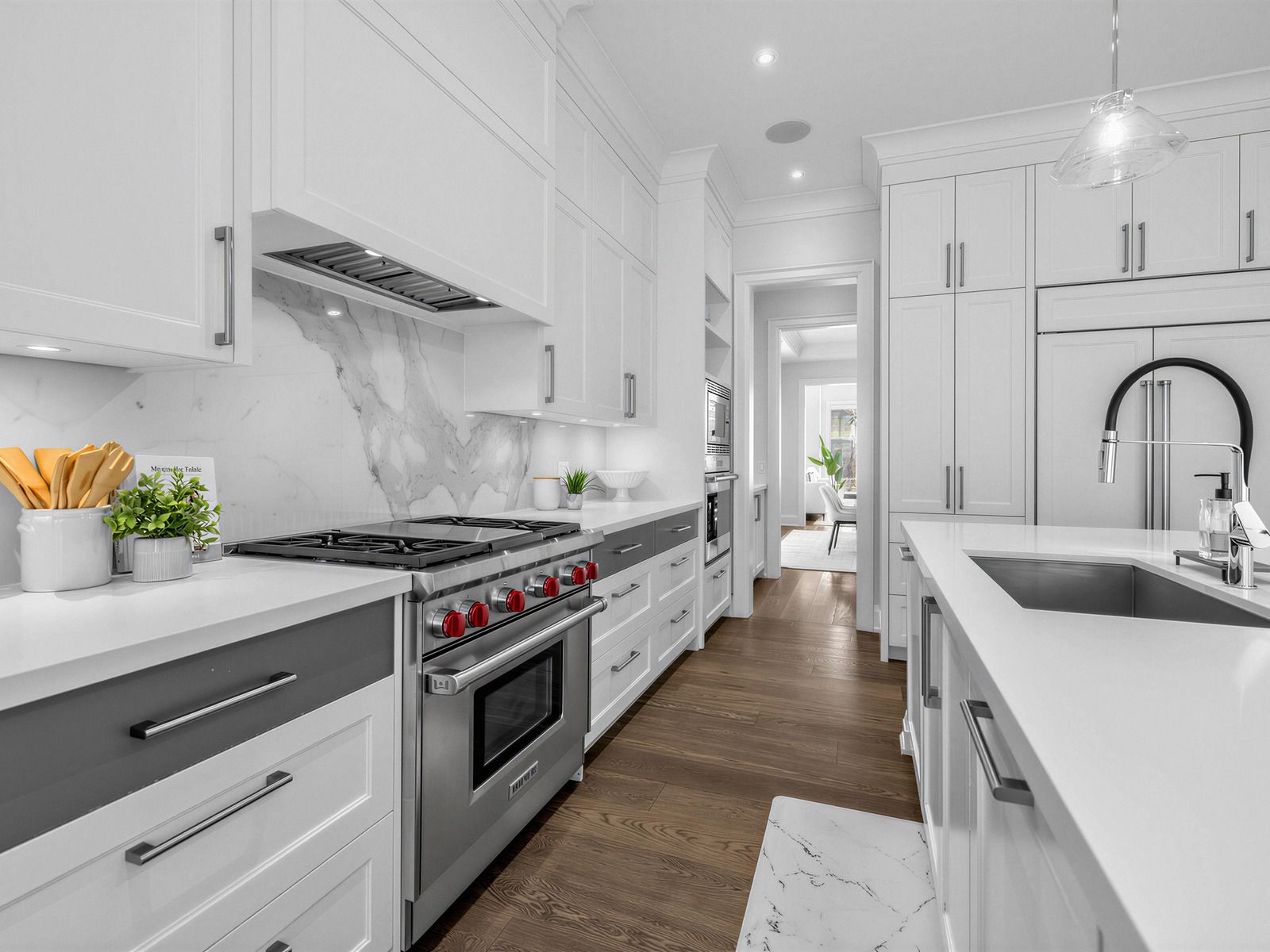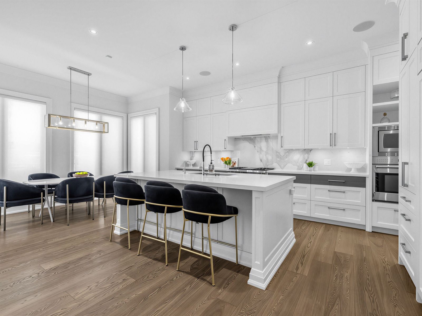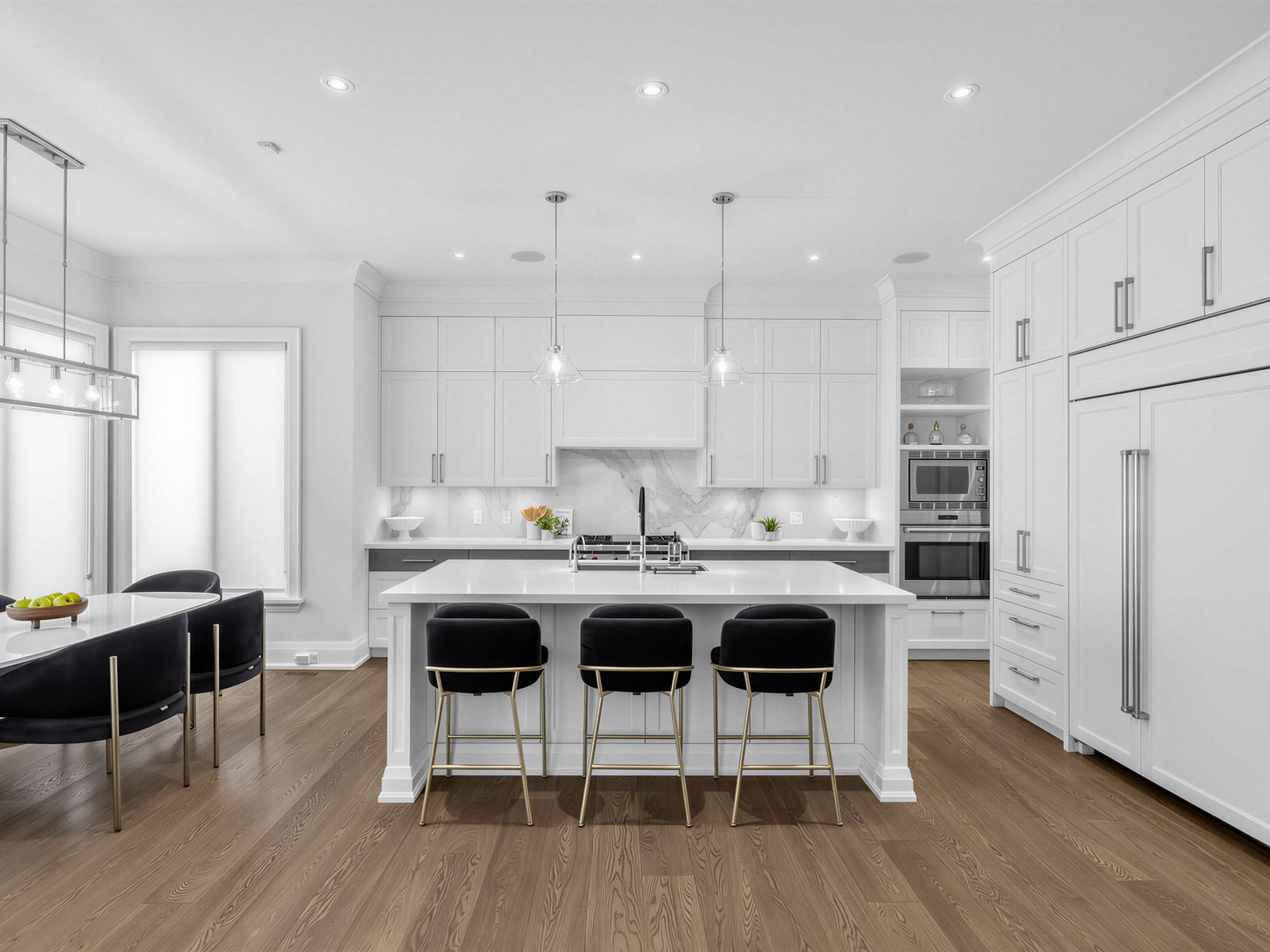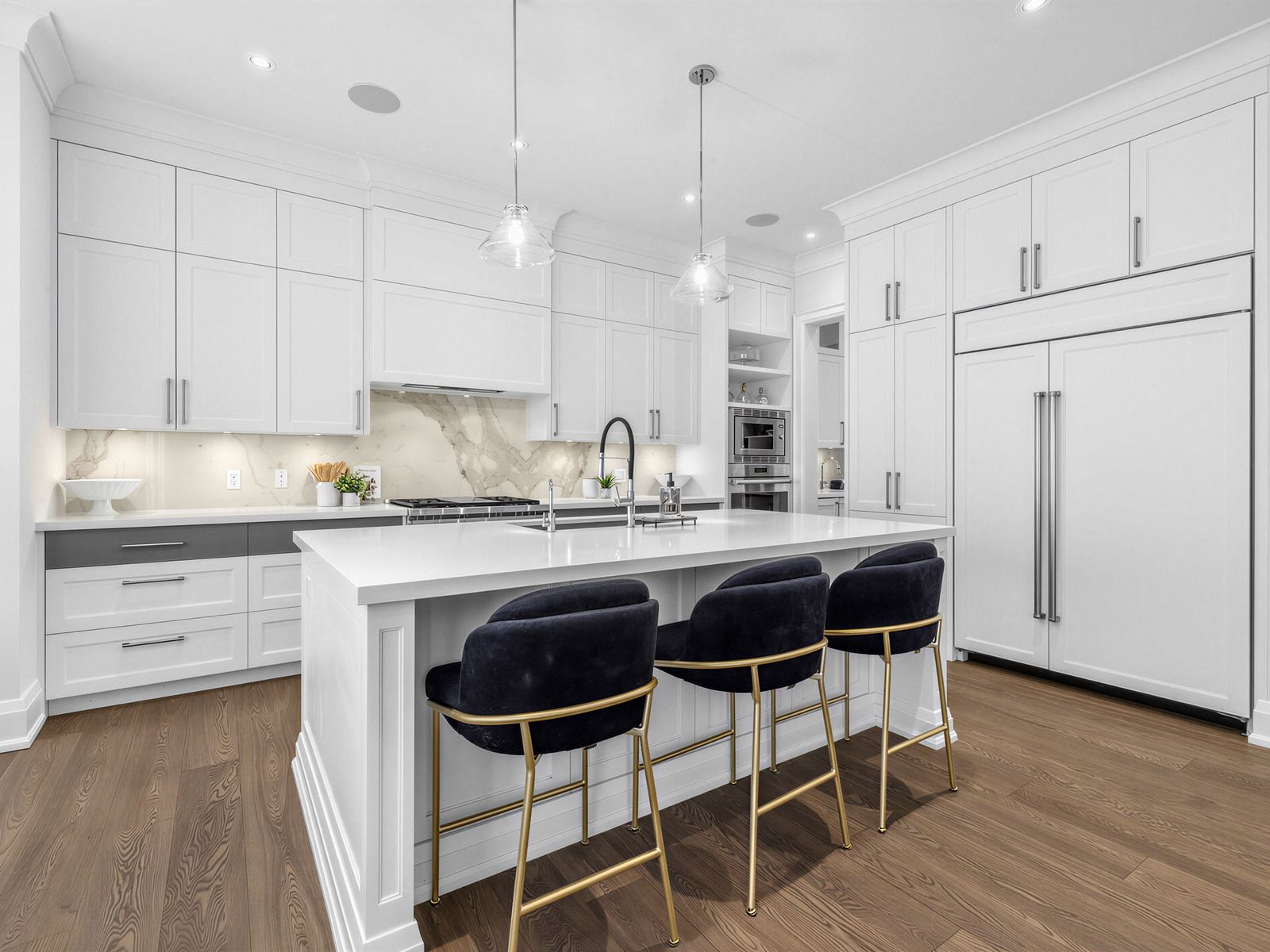 • Chef's kitchen features top appliances, oversized island, and butler's pantry.