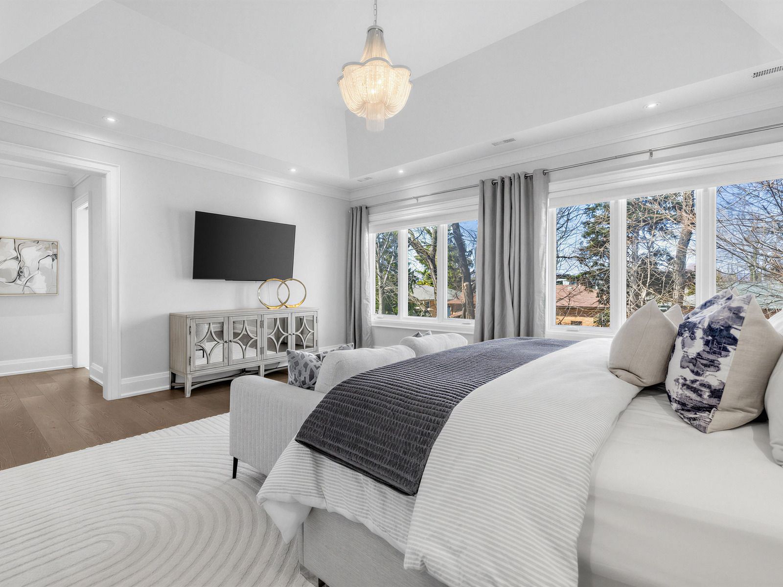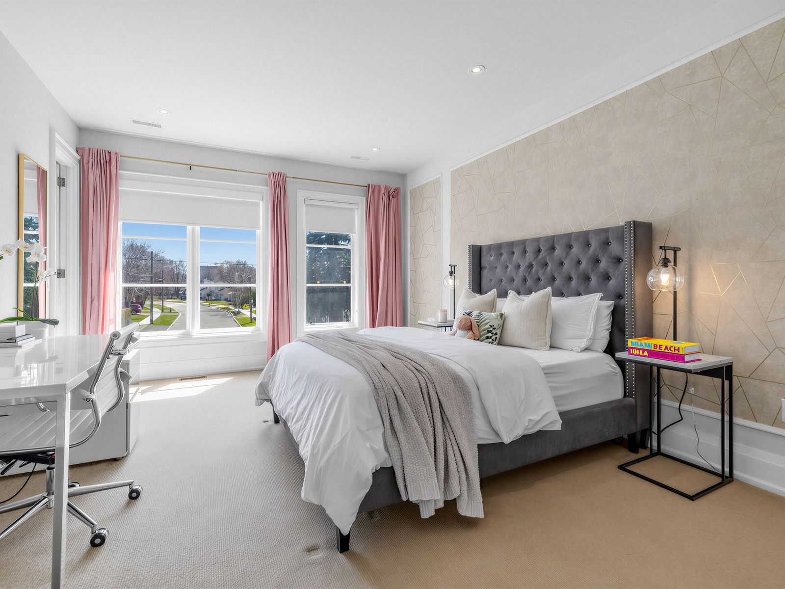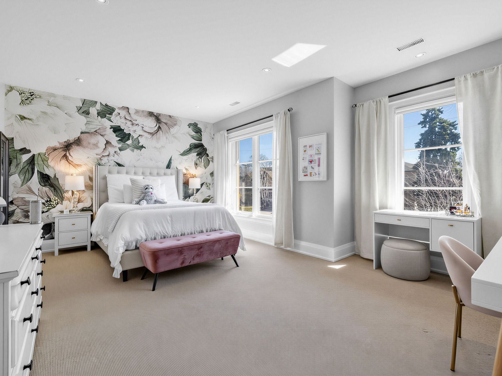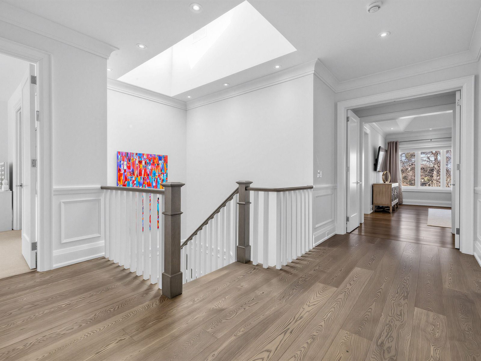 • Upper level includes four large bedrooms with ample storage space.