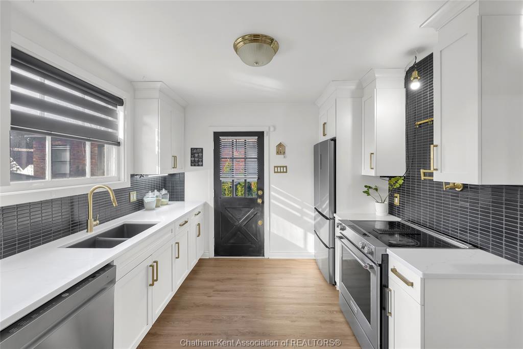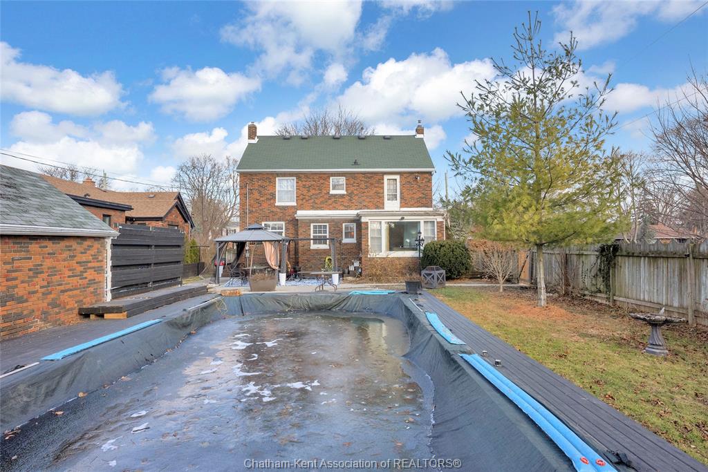 Welcome to 124 lydican ave—a place where you can truly settle in and feel at home. Tucked away in a charming, sought-after neighbourhood just off victoria ave in chatham, this is an opportunity not to be missed. This delightful 4-bedroom residence offers a cozy and inviting atmosphere. Imagine gathering in the spacious living room, enjoying meals in the dedicated dining room, and making memories in the heart of the home, the newer kitchen. Step outside to your corner lot oasis. Summer days are calling with an in-ground pool, perfect for relaxing or entertaining friends and family. A convenient one-car garage, accessible from the alley, completes this wonderful property. Key updates for peace of mind:new flooring: 2021,newer kitchen: 2022,pool liner: 2022,heat pump: 2023,water softener: 2023, water tank: owned