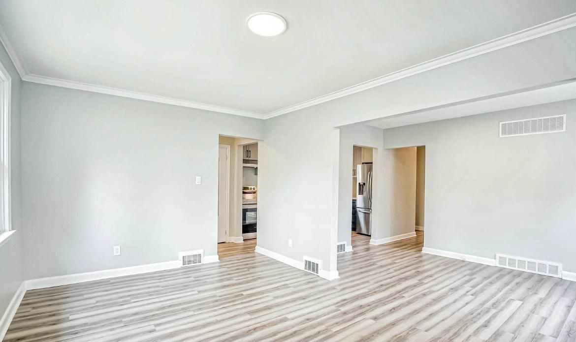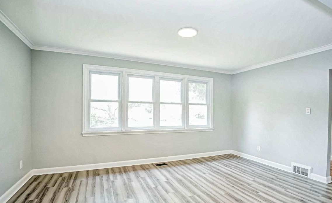 • Bright, spacious open concept living area with large windows.