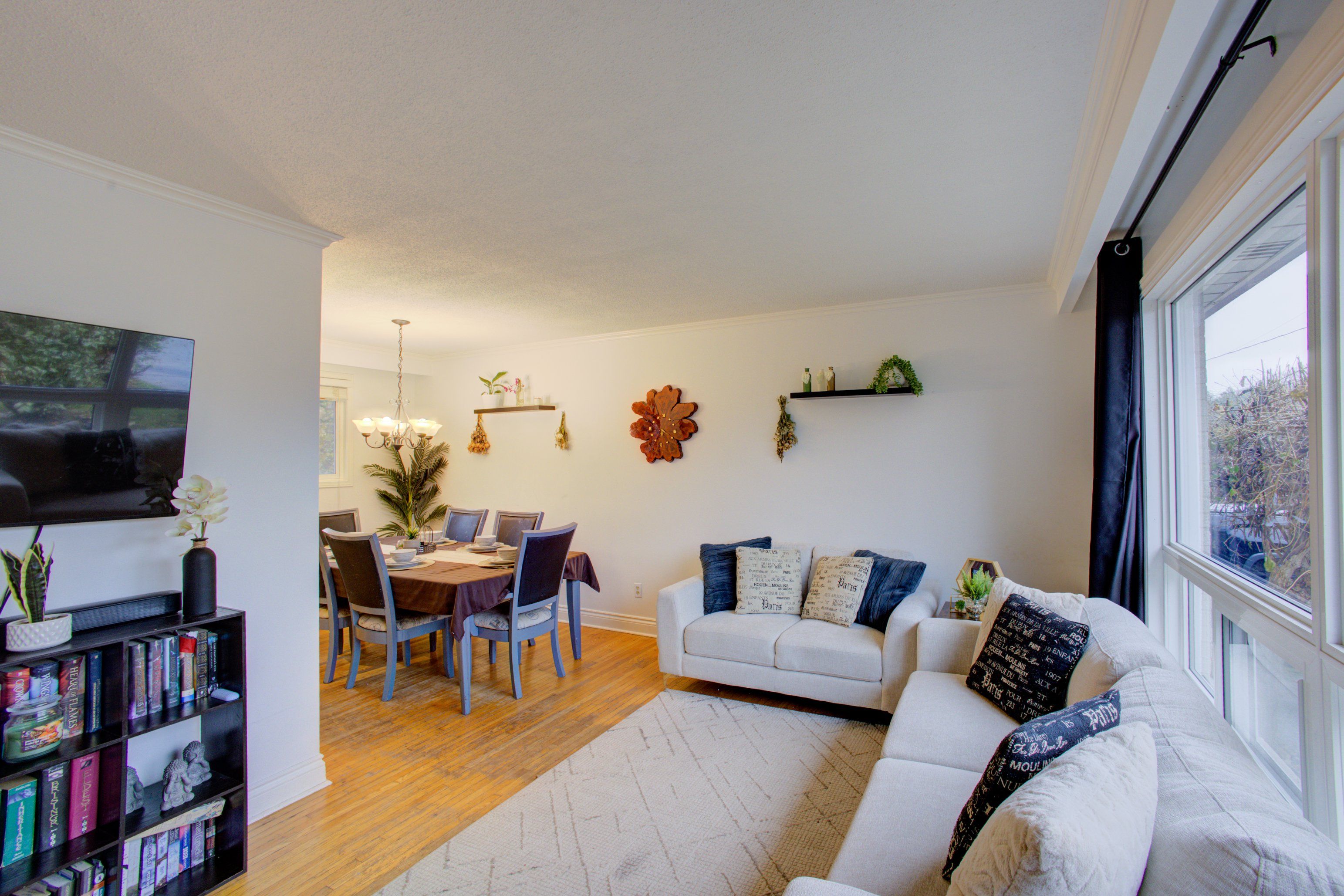 • Open-concept living and dining area filled with natural light.