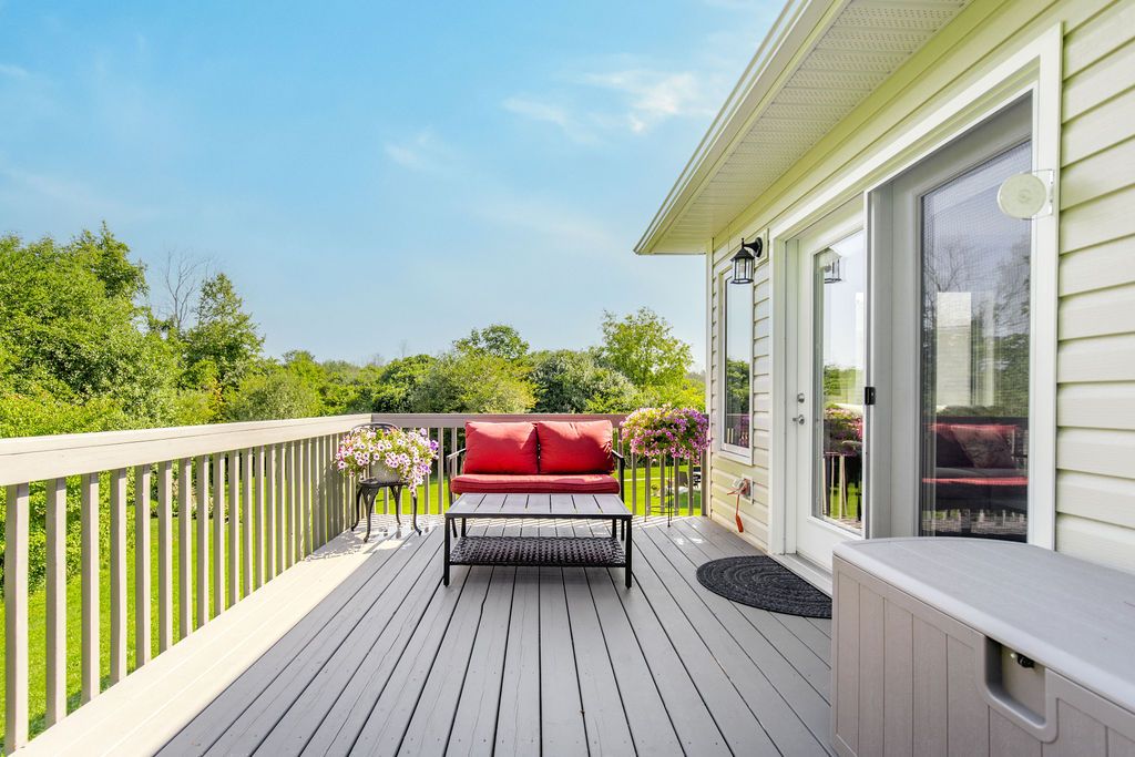 Located in the desirable park place community, this detached 2-bedroom, 2-bath bungalow sits on one of the larger lots and offers over 1,500 sq. Ft. Of thoughtfully designed living space, complete with crown moulding, two living areas, and direct access to the walking trail and greenspace. The bright eat-in kitchen showcases stainless steel appliances, quartz counters with matching backsplash, a center island, large walk-in pantry, and gas stove. A sun-filled front living room is perfect for relaxing, while french doors off the family room open to a deck overlooking a private, tree lined yard with an irrigation system. The primary suite includes a 3-piece ensuite with shower seat and walk-in closet, complemented by a second bedroom with its own walk-in. Recent updates feature hardwood floors in the bedrooms and hallway, fresh paint throughout, quartz counters, new fridge, dishwasher, hood-range microwave, electrical panel, and upgraded window coverings. With a 1. 5-car garage and inside entry, this home offers an ideal combination of comfort, style, and community living.