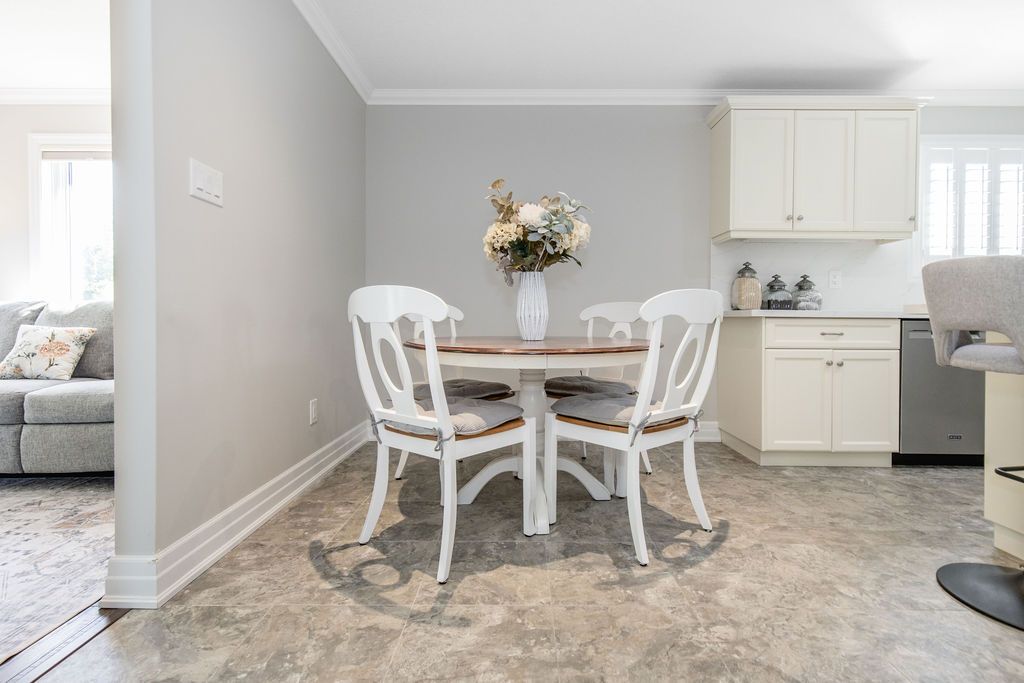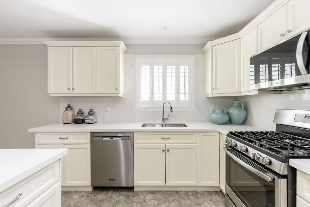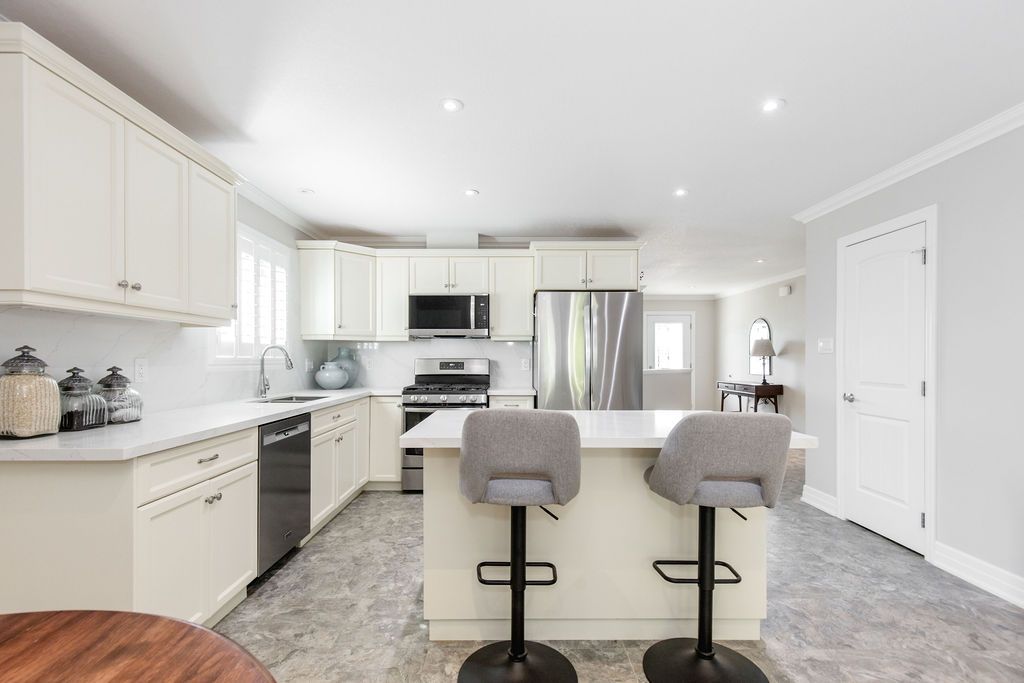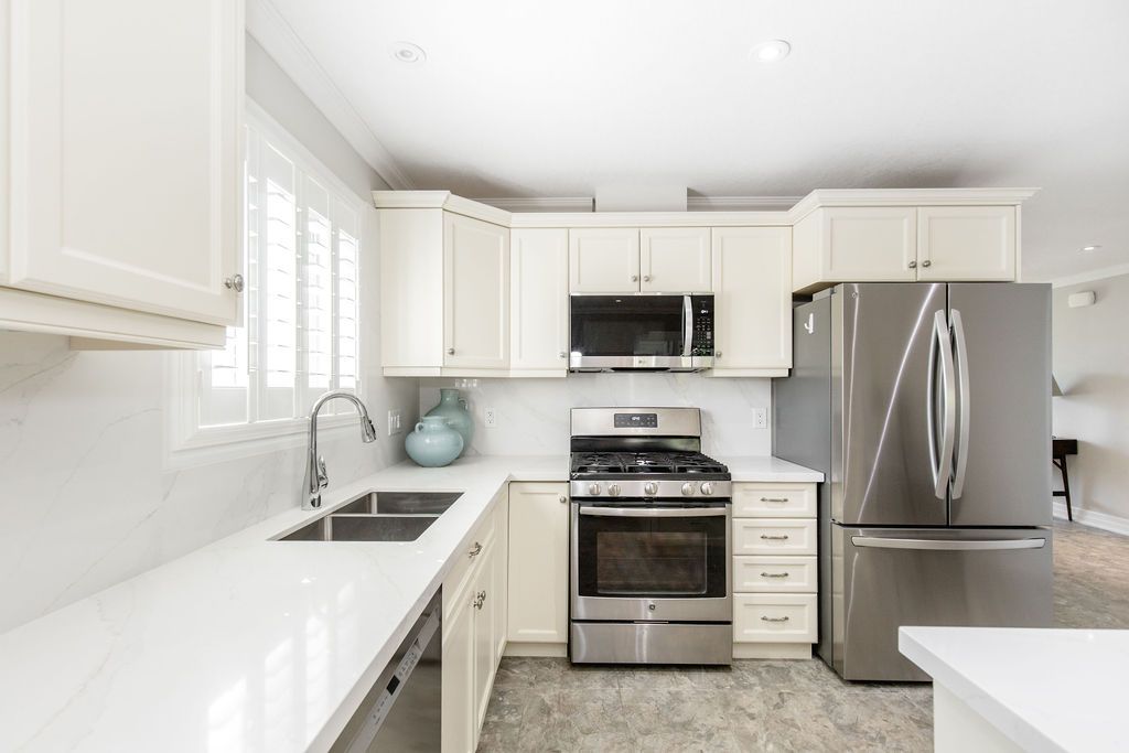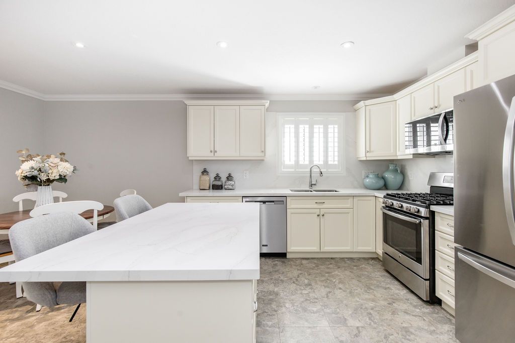 • Bright eat-in kitchen featuring stainless steel appliances and quartz countertops.