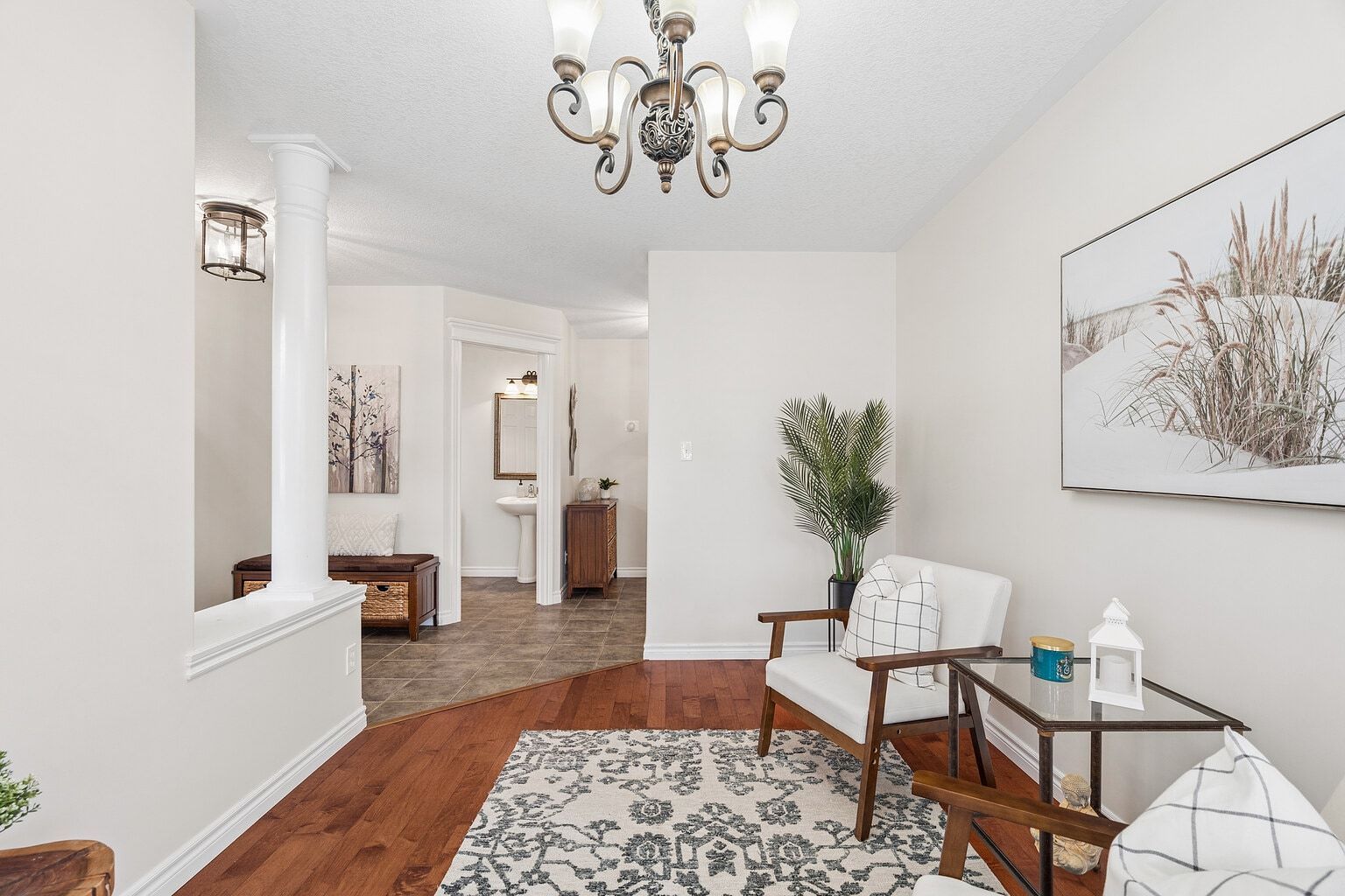 • Bright living room with hardwood floors and large windows for natural light.