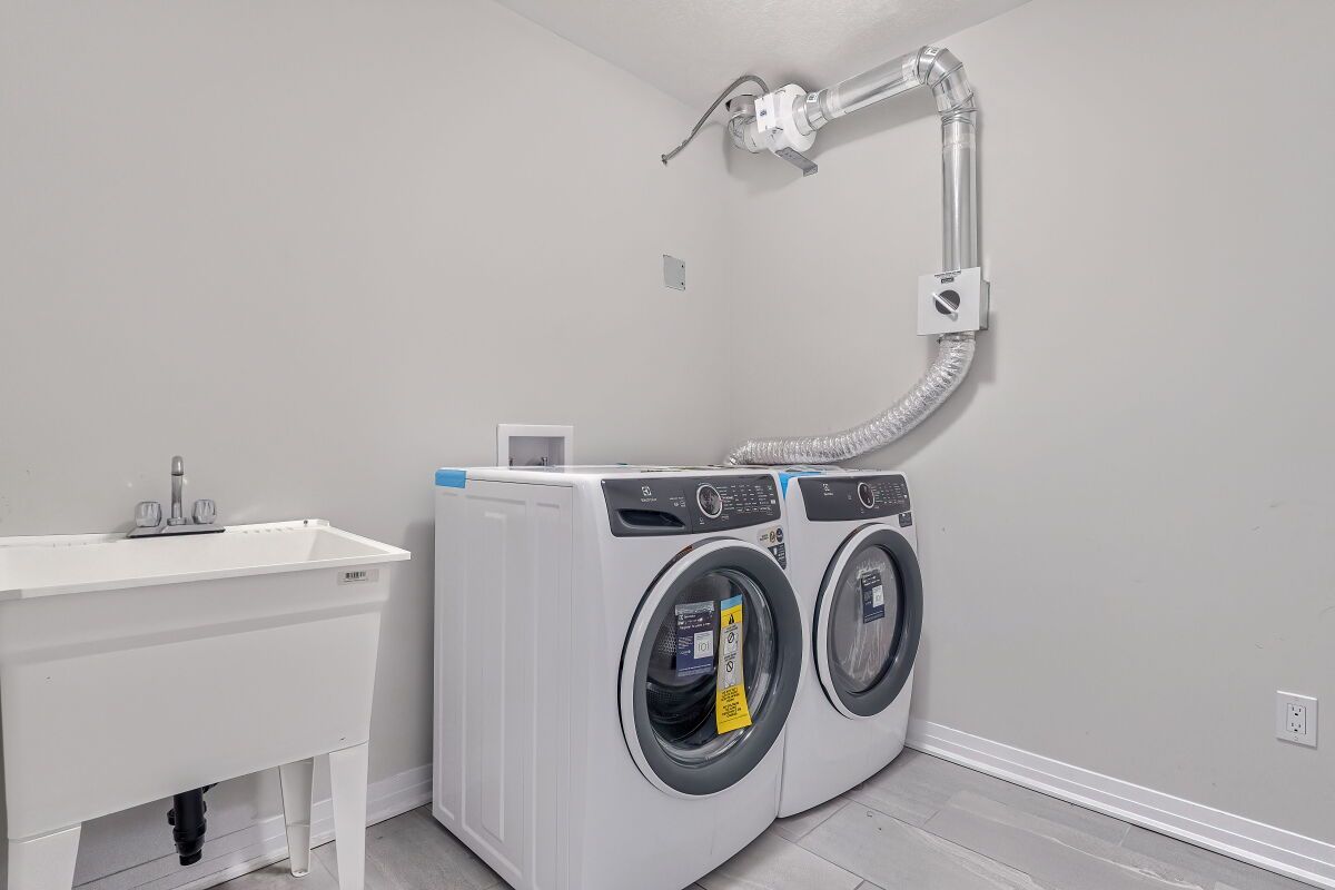 • Attached garage and private drive provide convenient parking for two vehicles.