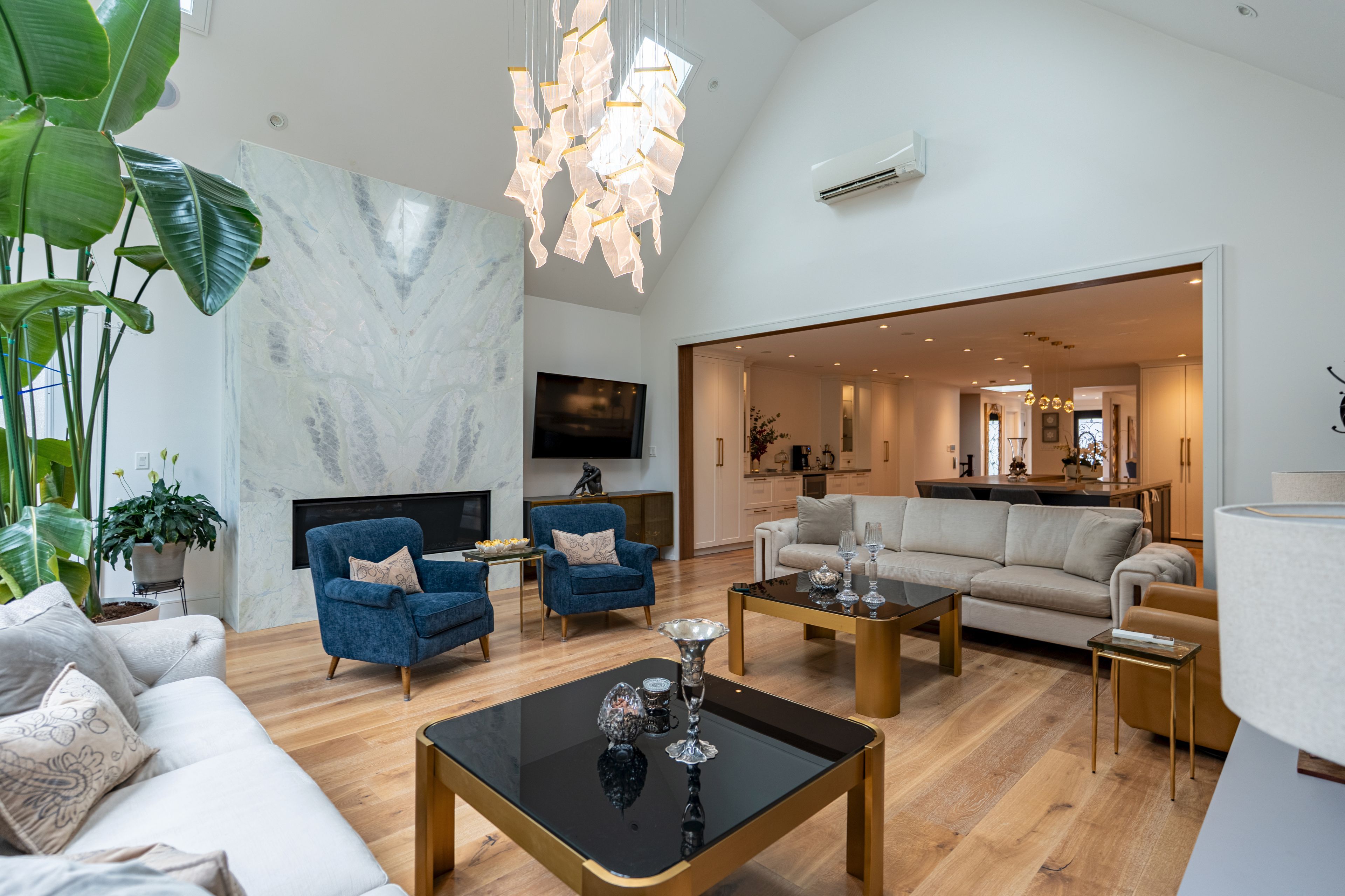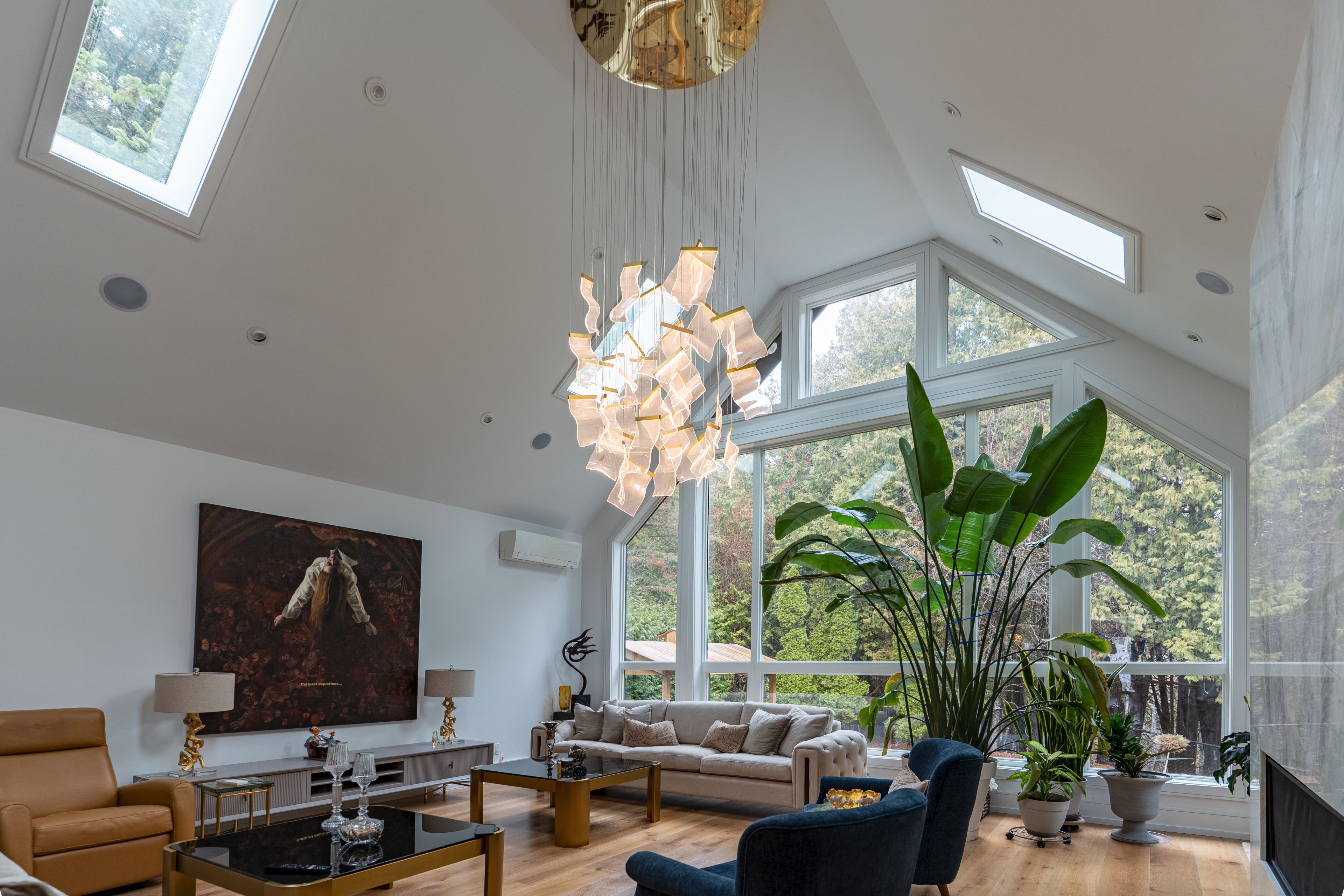 Stunning fully renovated bungalow on a premium ravine lot in one of aurora's most sought-after neighbourhoods! Offering approx. 2,500 sq ft of open-concept living on the main floor, this home combines modern luxury with a peaceful natural setting. Featuring soaring ceilings in the family room with 5 skylights, filling the space with natural light. A recent addition expands both the family room and the primary bedroom, creating a bright, airy layout ideal for everyday living and entertaining. Extensively upgraded with high-quality finishes throughout, including canadian-made engineered flooring. Gourmet kitchen equipped with built-in appliances, featuring 2 built-in fridges and 2 built-in dishwashers on the main floor-perfect for large families or hosting-plus an additional fridge and dishwasher in the finished basement. Major system upgrades include brand new electrical wiring, plumbing, spray foam insulation, drains, roof, flashing, doors, windows, stairs, and railings, offering peace of mind and true turnkey living. Home is equipped with a built-in sound system and multiple heat pump units (2 in family room, 1 in primary bedroom) for efficient climate control. Over $30k invested in solar panel system, providing energy efficiency and long-term savings. Enjoy ultimate privacy with a beautiful ravine backyard-wake up to the soothing sounds of nature every morning. Ideally located close to top-rated schools, parks, trails, and all amenities. A rare turnkey opportunity offering space, quality upgrades, and an unbeatable location!