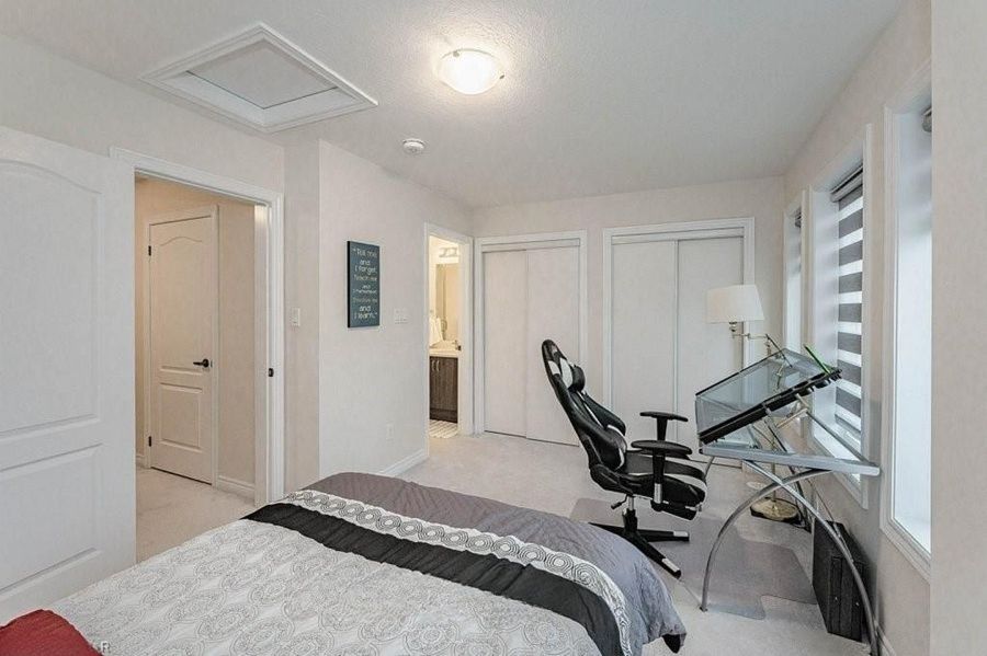 Modern townhouse offering stylish, functional living in a convenient guelph location. The open-concept main floor features a beautifully finished kitchen with quartz countertops and stainless steel appliances, flowing into the dining and living areas with access to a spacious balcony, while a 2-piece powder room completes the main level. This well-designed 2-bedroom layout offers generously sized bedrooms, each with its own ensuite bathroom, and the primary bedroom also features a private balcony. The attached garage with direct entry includes a recently added ev charging port, plus driveway parking for two additional vehicles. Ideally located with easy access to watson parkway, major routes, parks, sports facilities, walking trails, and transit, including the #17 bus to the university of guelph.