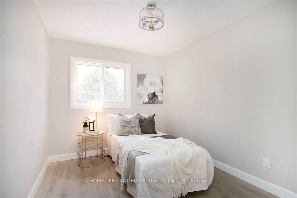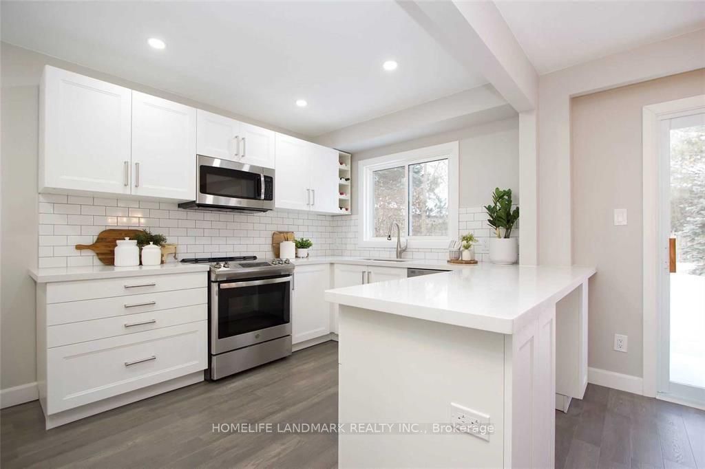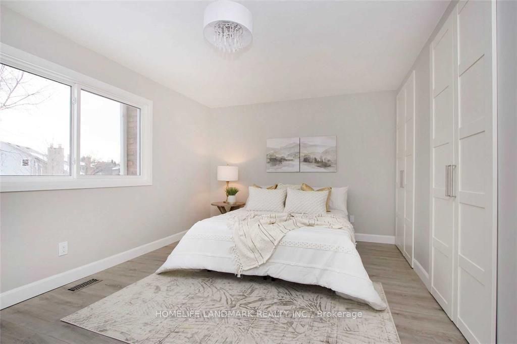 Beautifully updated home that feels like a detached, connected only by the garage. Located on a quiet court beside a park and playground, this property offers a rare combination of privacy and convenience. The large pie-shaped lot features a private backyard, perfect for families or entertaining. Fully renovated from top to bottom, the main floor showcases engineered hardwood, a modern kitchen with brand-new stainless-steel appliances, quartz countertops, a breakfast bar, and an open view to the formal dining area with a walk-out to the deck. Upstairs, you'll find four generous bedrooms, including two with access to a balcony. One bedroom can easily function as a family room or home office. This home sits at the quiet end of the court, right beside green space, offering a peaceful and family-friendly setting.