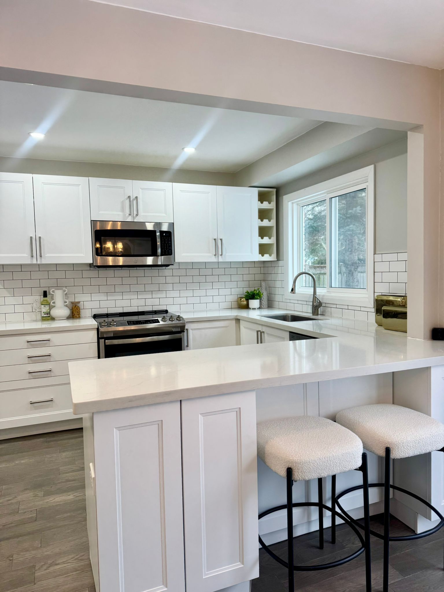 • Modern kitchen features brand-new stainless steel appliances and quartz countertops.