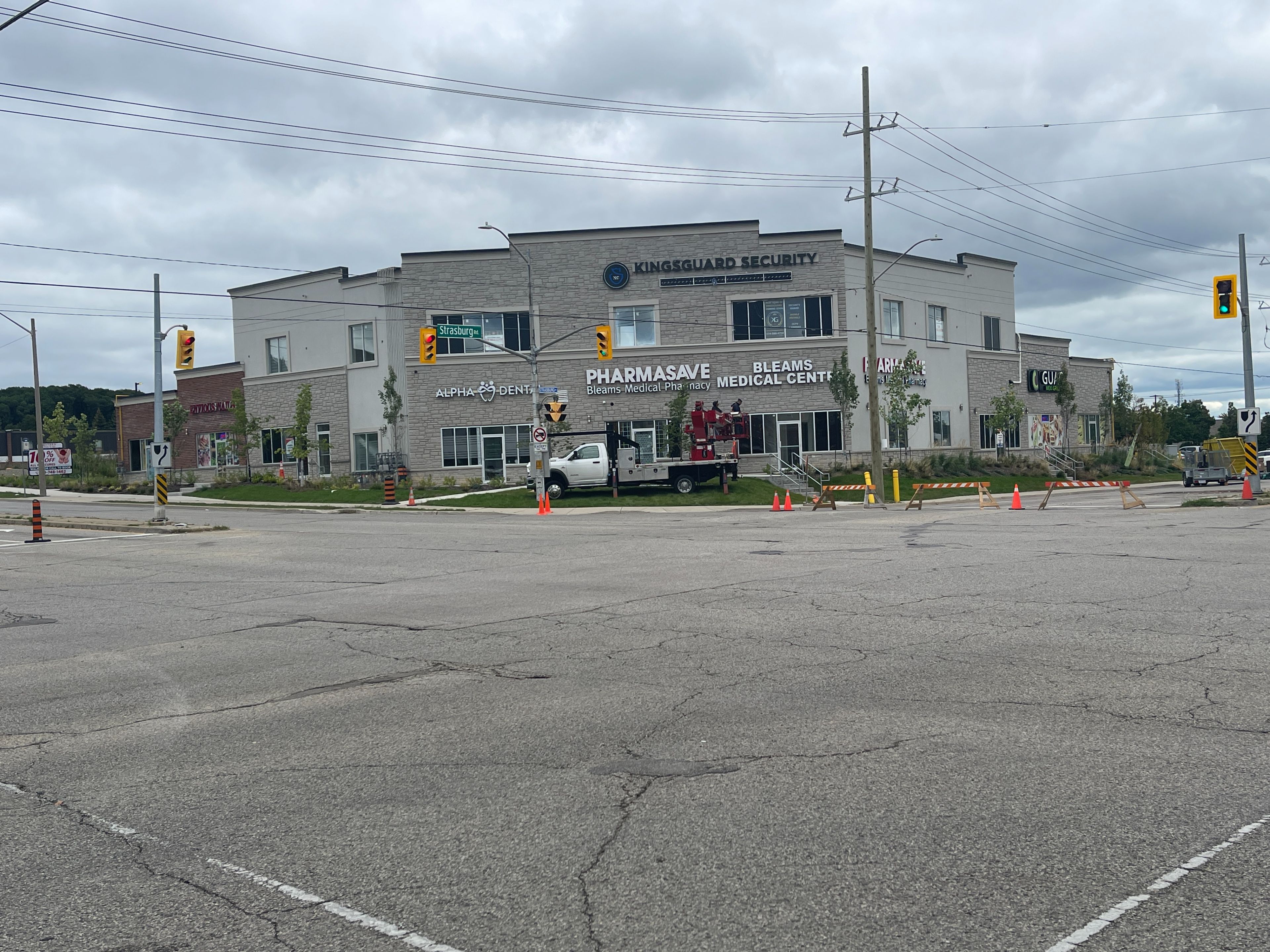 Exceptional opportunity to lease a professionally finished 1,787 sq. Ft. End unit located on the 2nd floor of a brand-new retail plaza at the high-traffic southeast corner of bleams road and strasburg road. This corner unit offers outstanding visibility and convenient access via both elevator and stairs. The space is thoughtfully designed and move-in ready, featuring: three private offices, a spacious conference room, a welcoming reception area, kitchenette and washroom, dedicated printing and storage areas ideal for a wide range of professional, medical, and service-based uses including but not limited to: robotics & automation, business, professional & administrative office, tutoring centre, travel agency, advertising/marketing agency, law, paralegal, accounting, immigration & employment offices, real estate or mortgage brokerage, driving school, medical clinic or diagnostic lab, it services, gym/fitness/yoga studio, dance school, traffic ticket services and many more uses.
