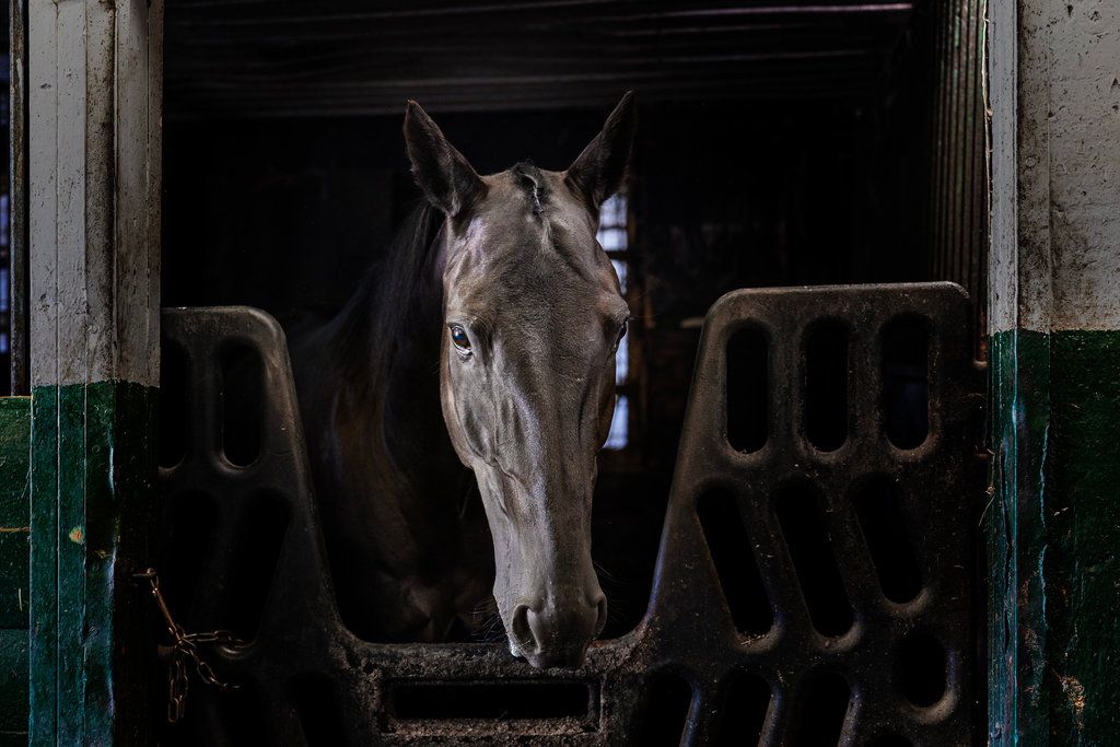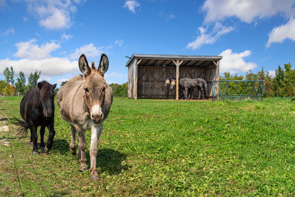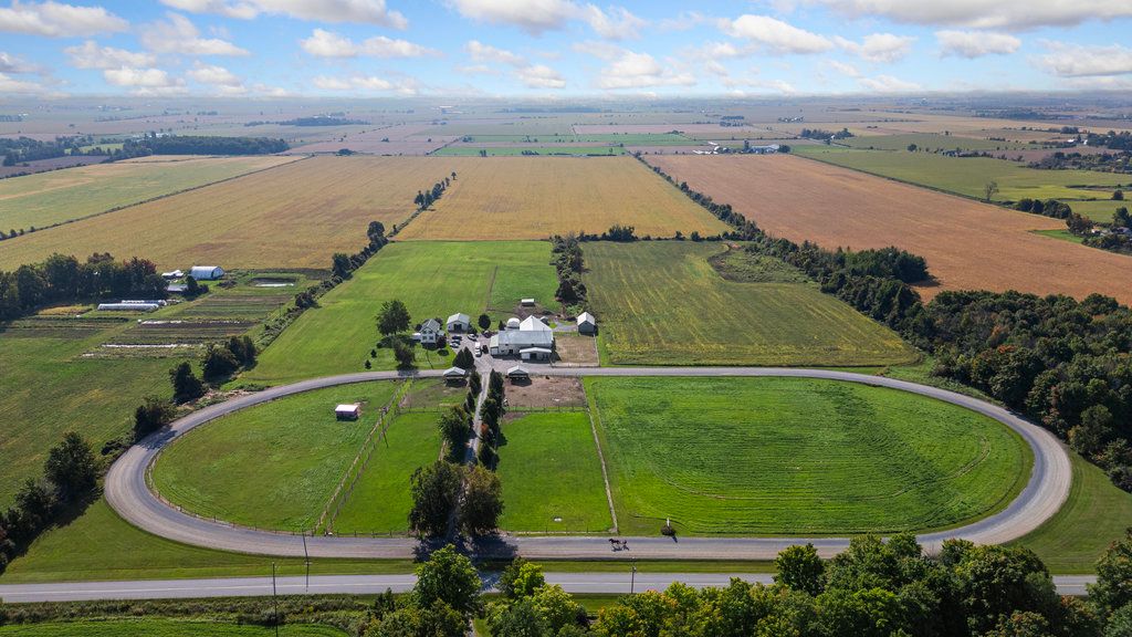 • Equestrian features include a barn, paddocks, riding ring, and training track.